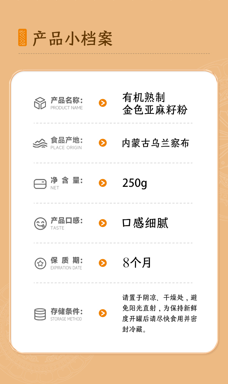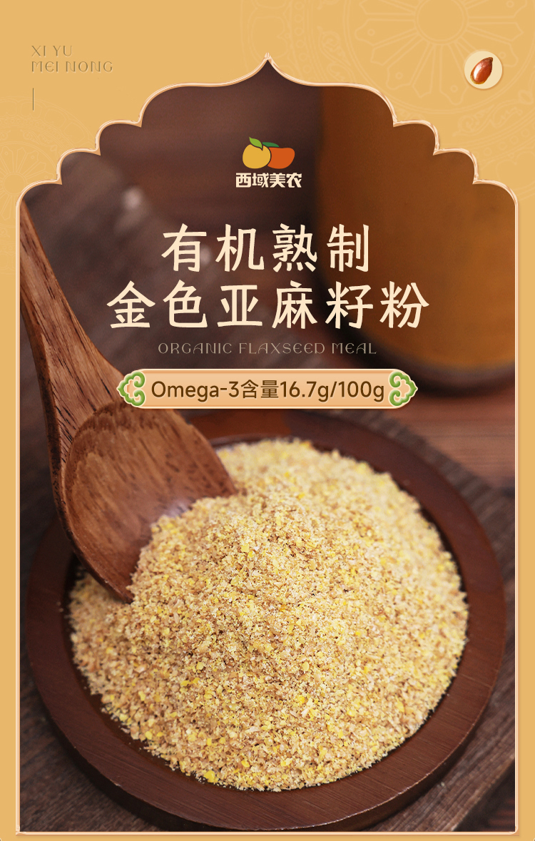 西域美农有机亚麻籽粉250g/罐 熟制金色亚麻籽粉 即食代餐 膳食纤维