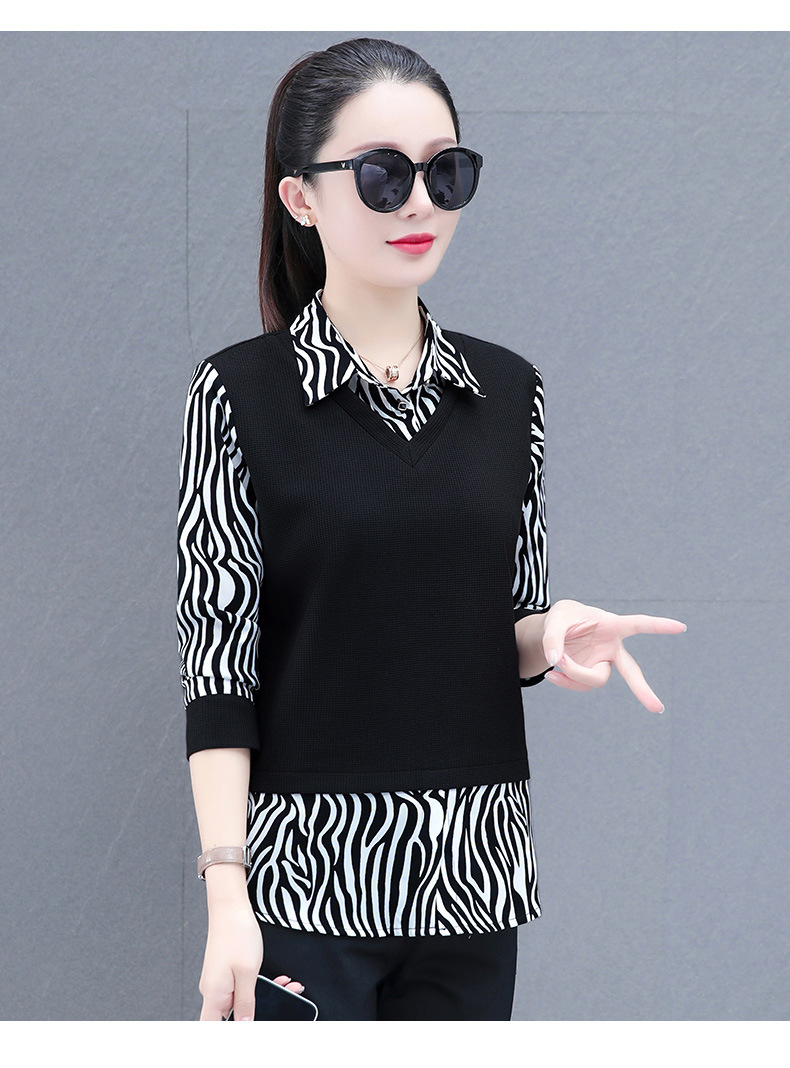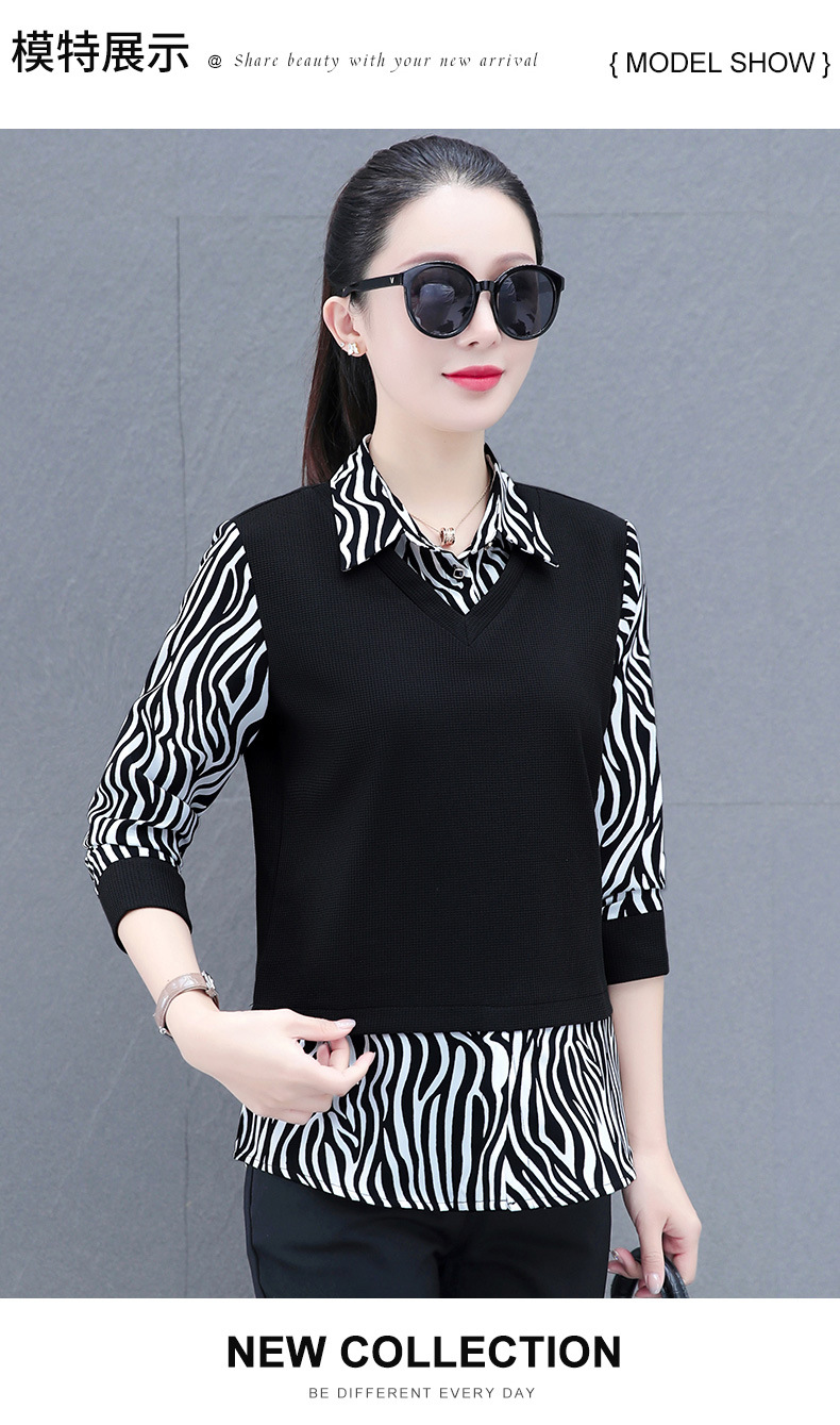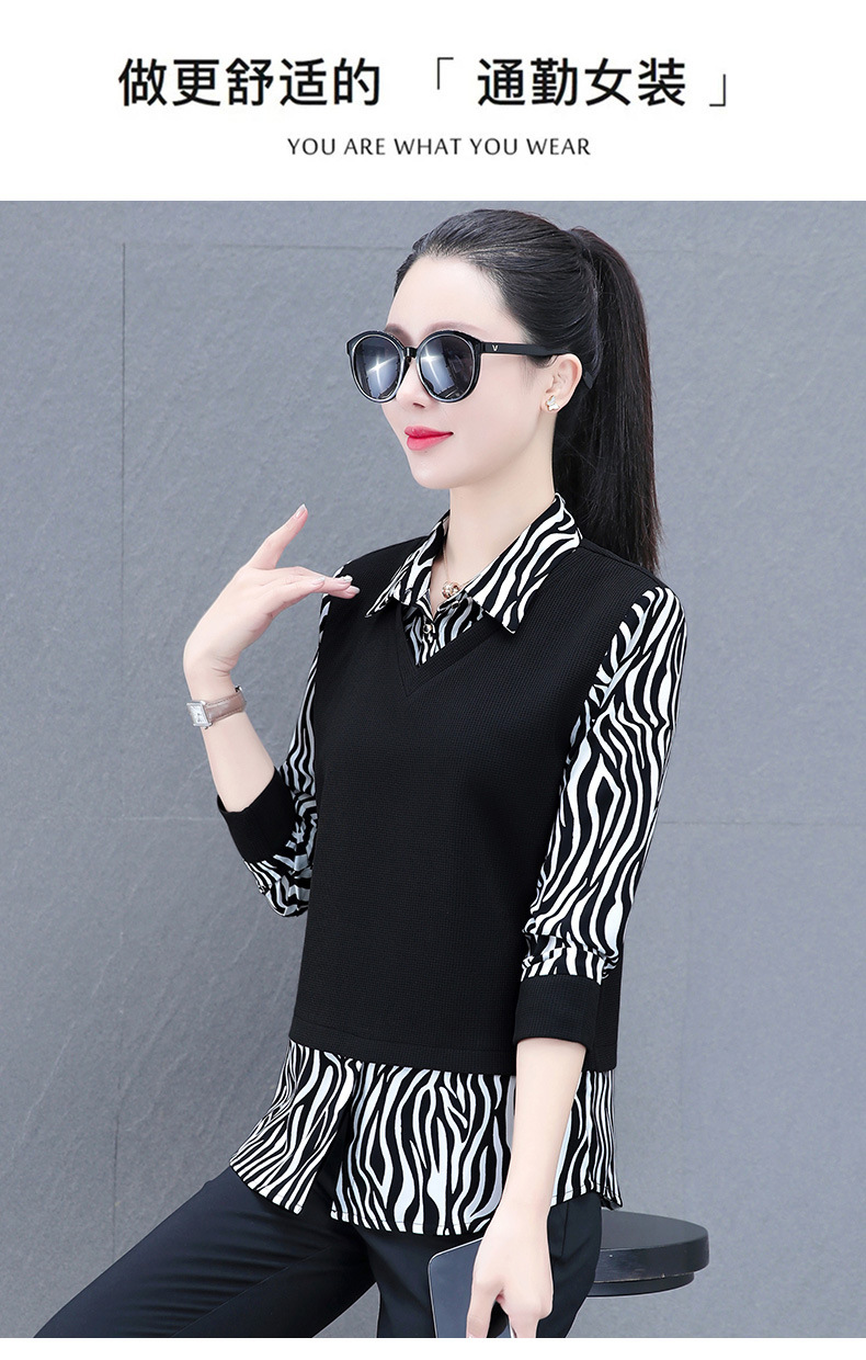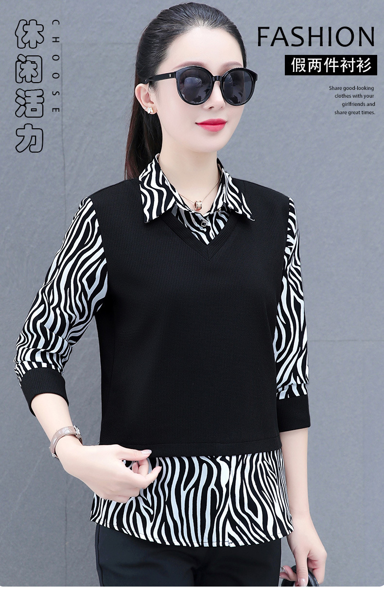 时尚减龄洋气时髦女装假两件上衣QB5003