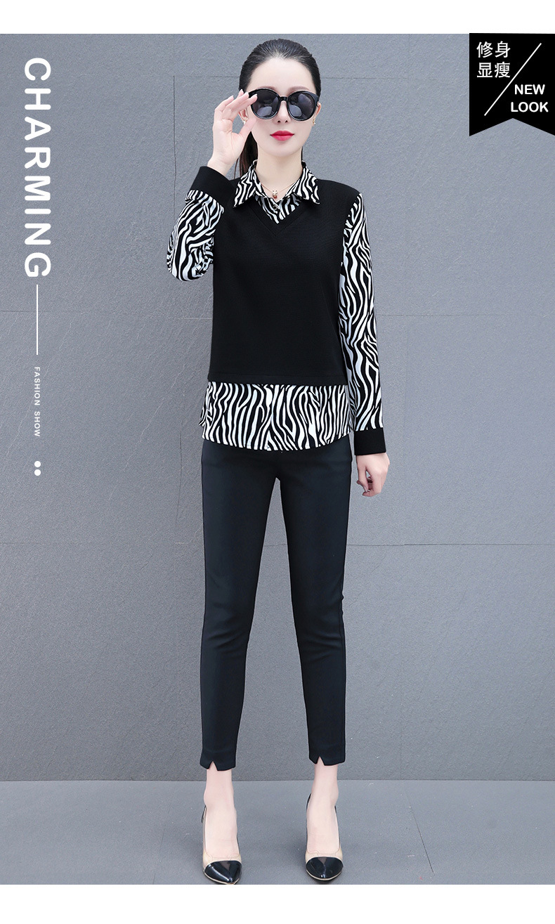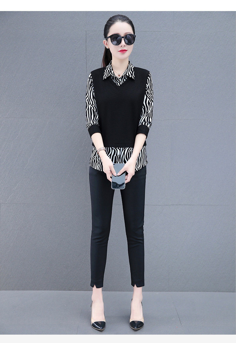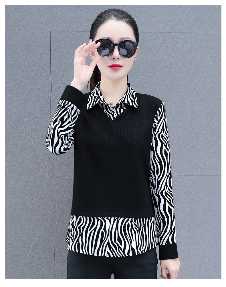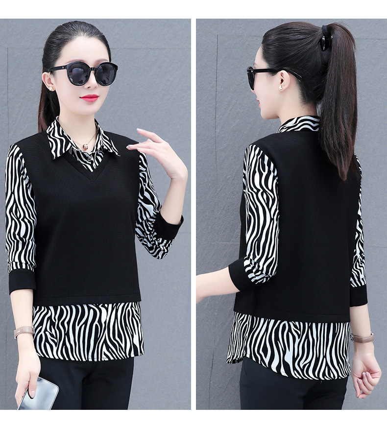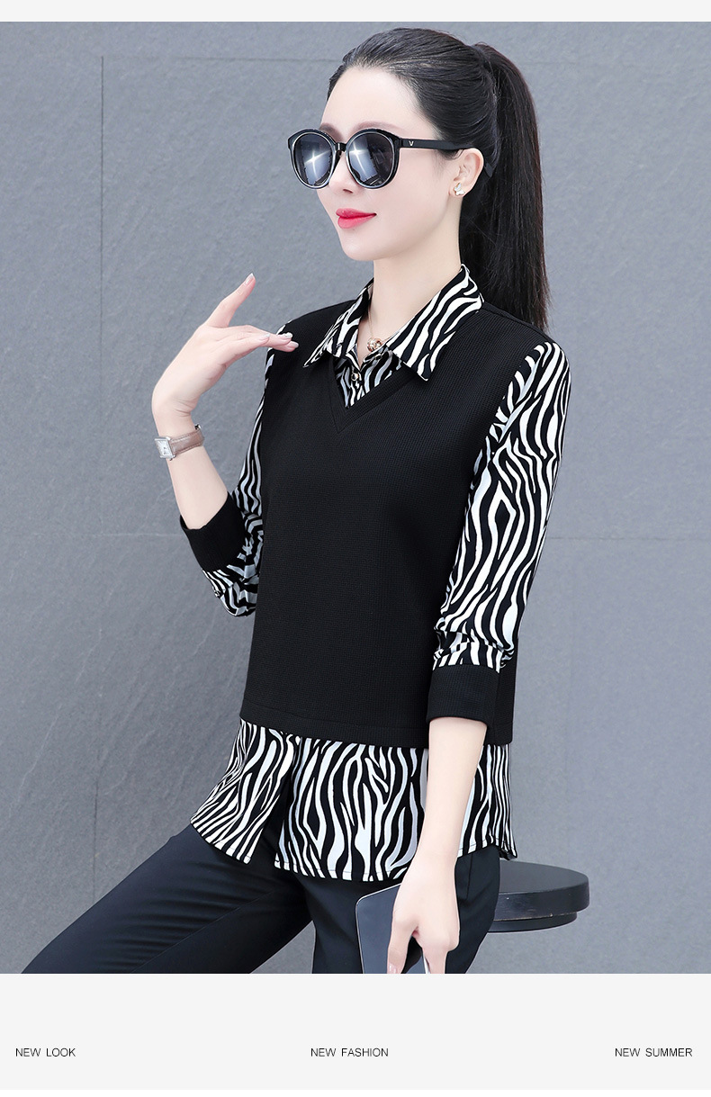 时尚减龄洋气时髦女装假两件上衣QB5003