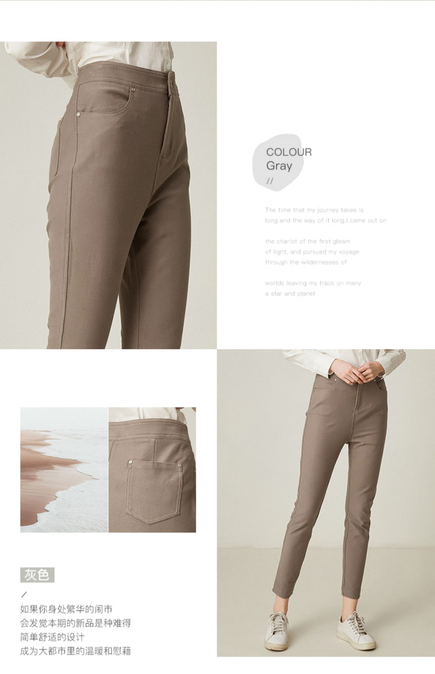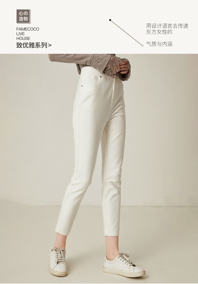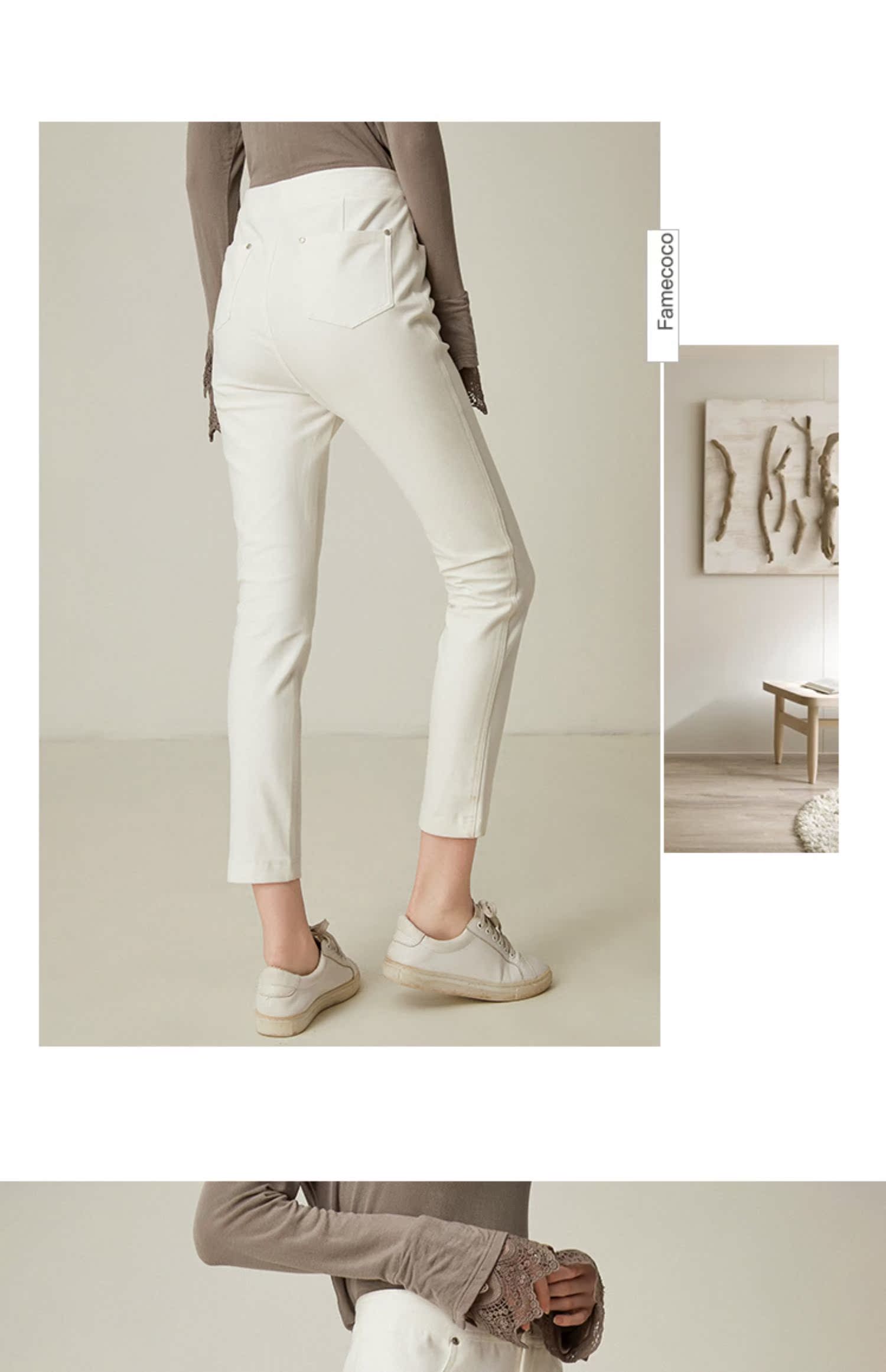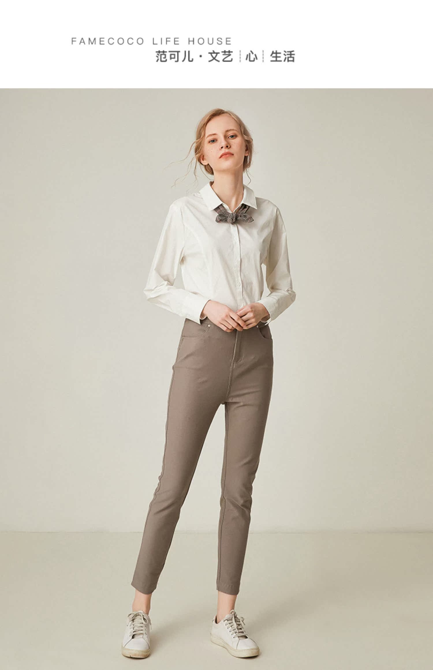 Famecoco范可儿纯棉休闲裤女修身显瘦九分裤百搭裤子F185GA028