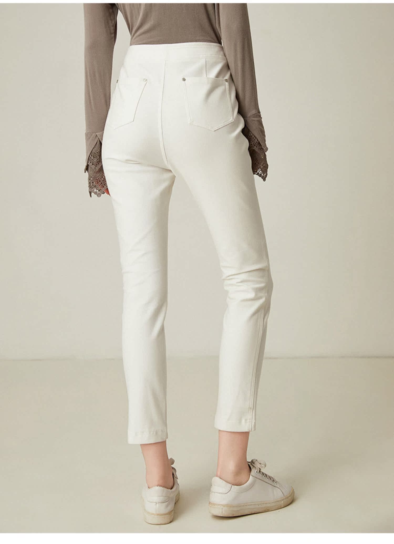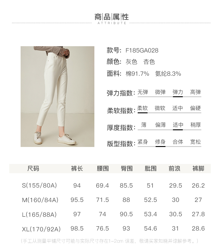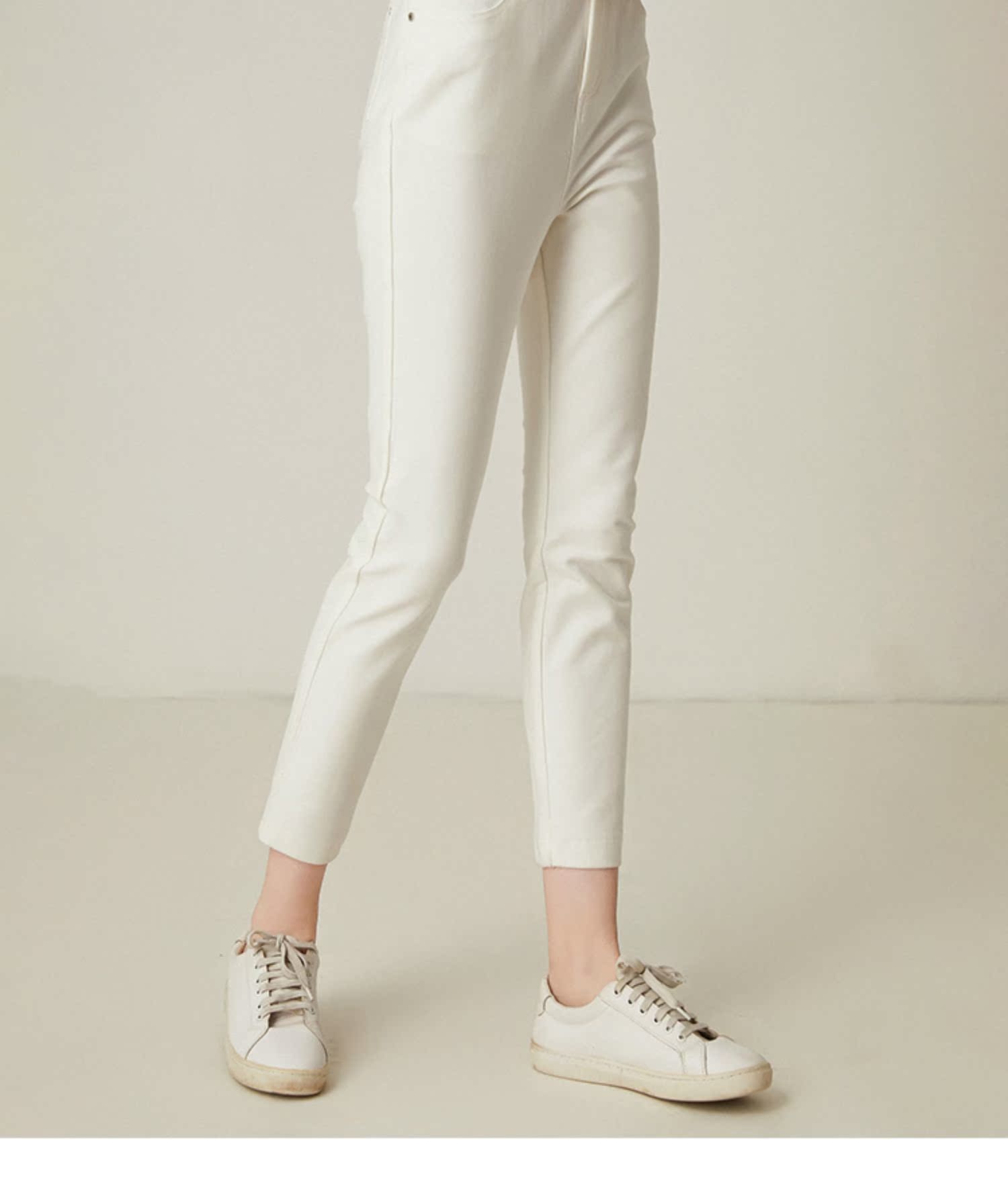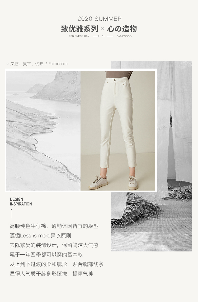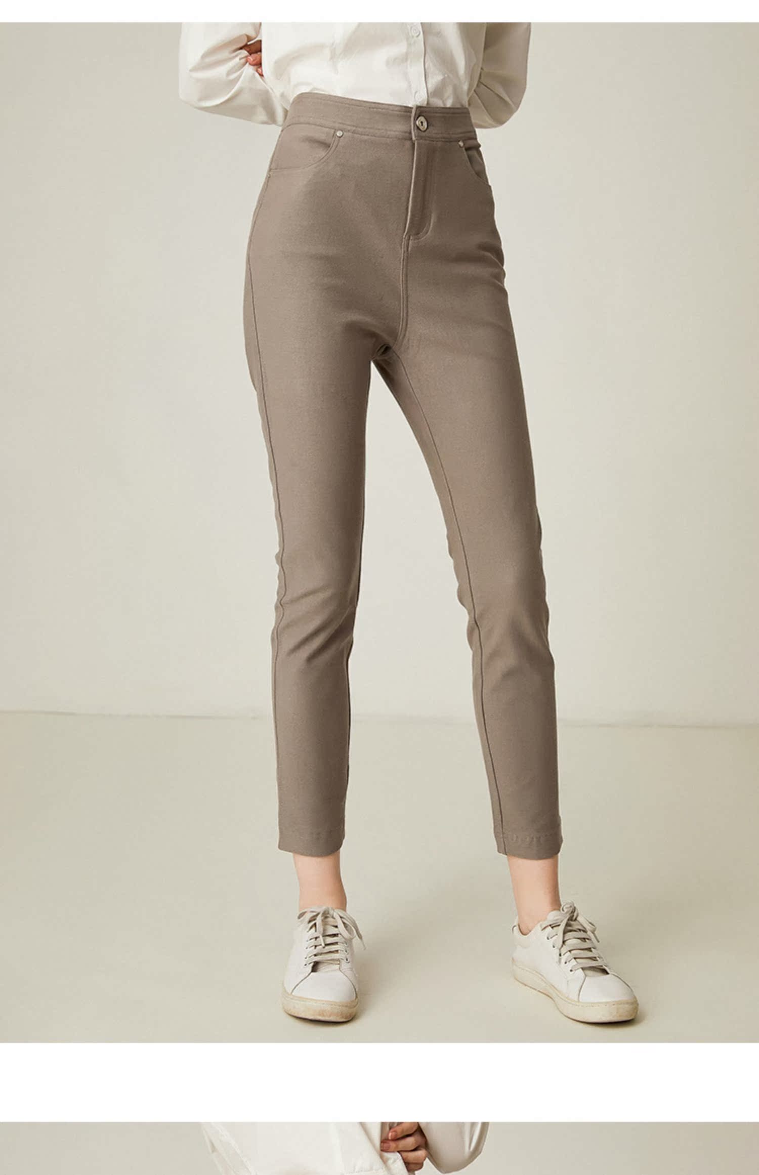 Famecoco范可儿纯棉休闲裤女修身显瘦九分裤百搭裤子F185GA028