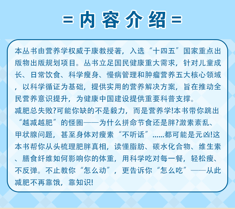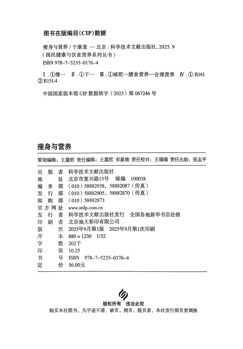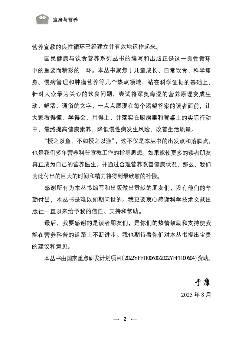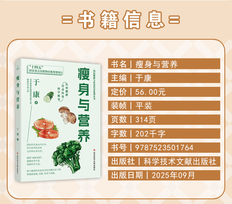 瘦身与营养 国民健康与饮食营养系列丛书 于康 著 认识肥胖 营养饮食 科学瘦身 跟随营养专家 掌握科学方法 科学技术文献出版社
