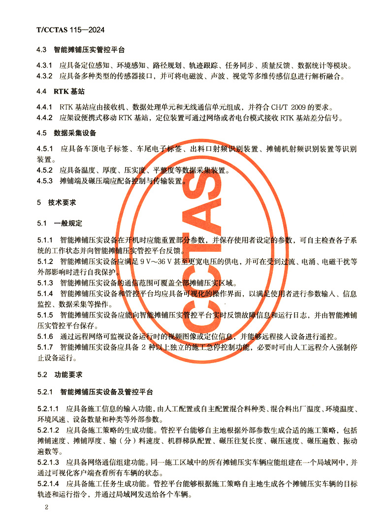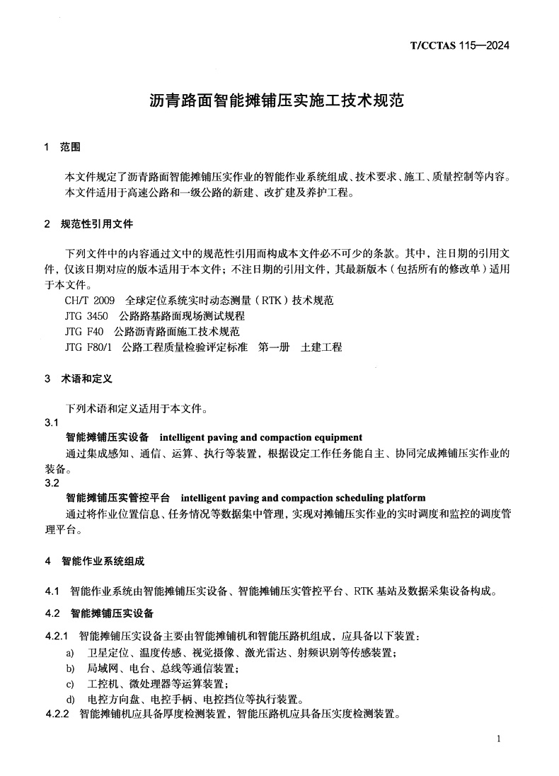 书名:沥青路面智能摊铺压实施工技术规范T/CCTAS 115—2024