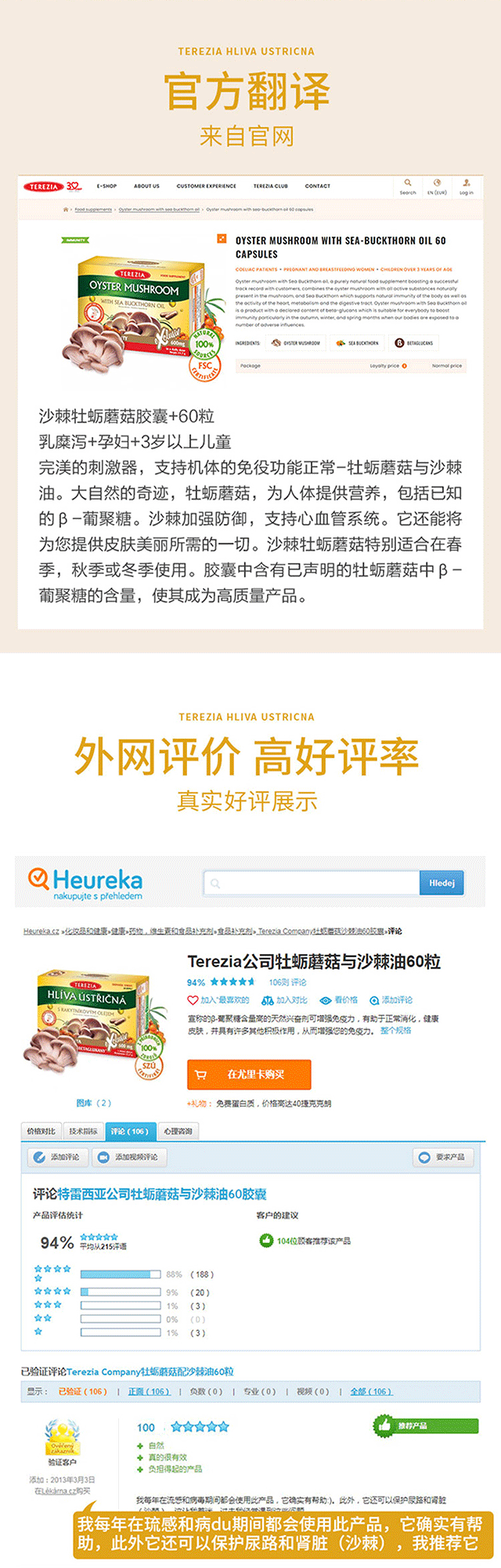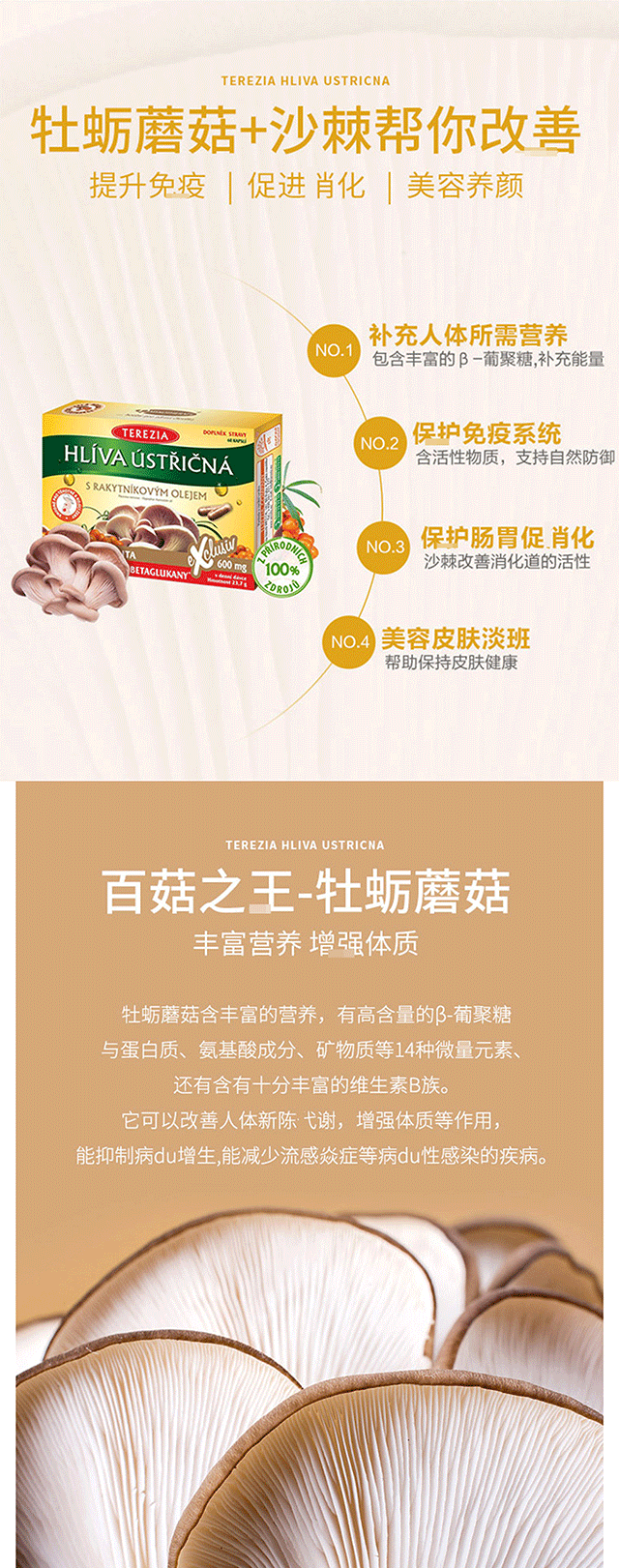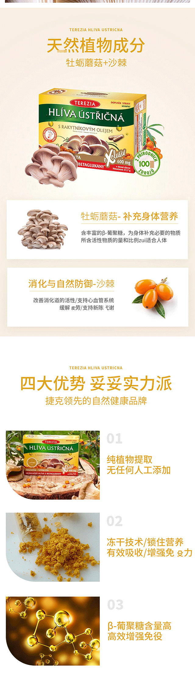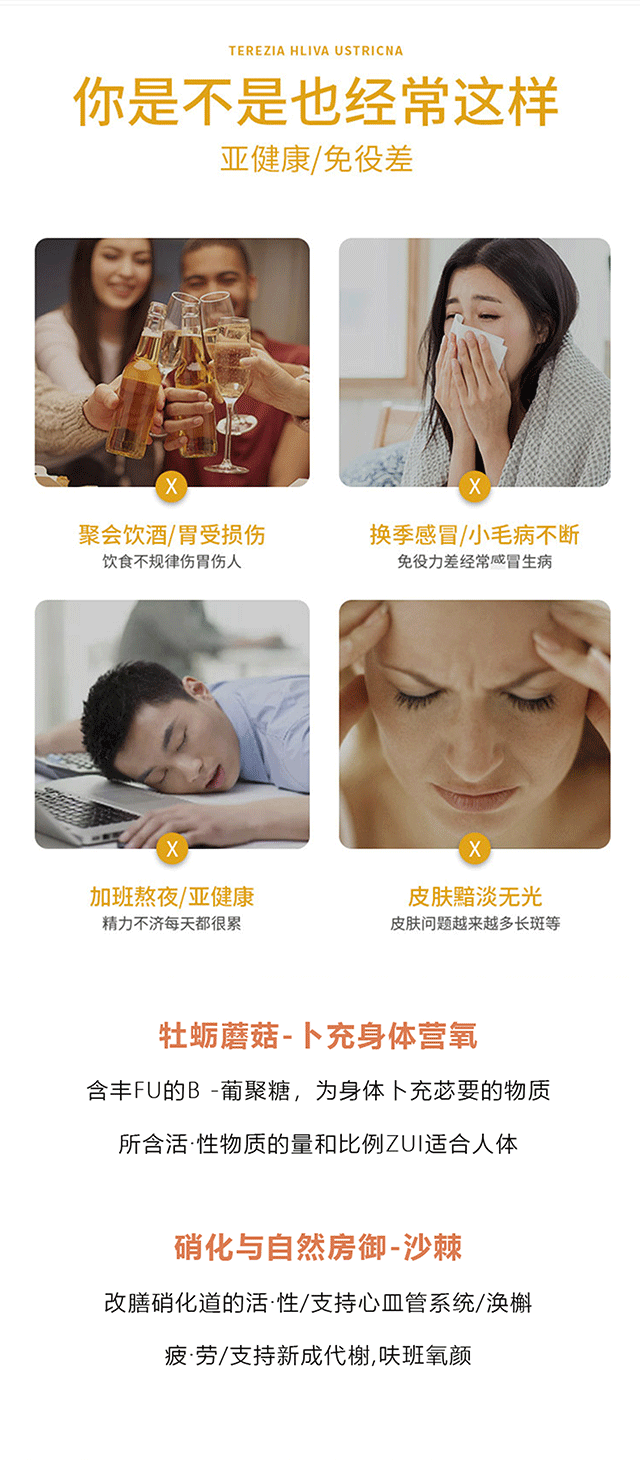 提高免疫力!强力抵御病毒细菌!捷克特蕾西亚牡蛎蘑菇沙棘胶囊 60粒 日期26年11月