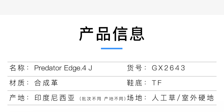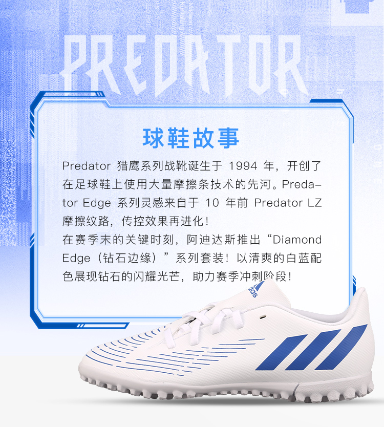 ADIDAS/阿迪达斯PREDATOR EDGE.4 TF碎钉儿童款猎鹰入门级足球鞋男GX2643