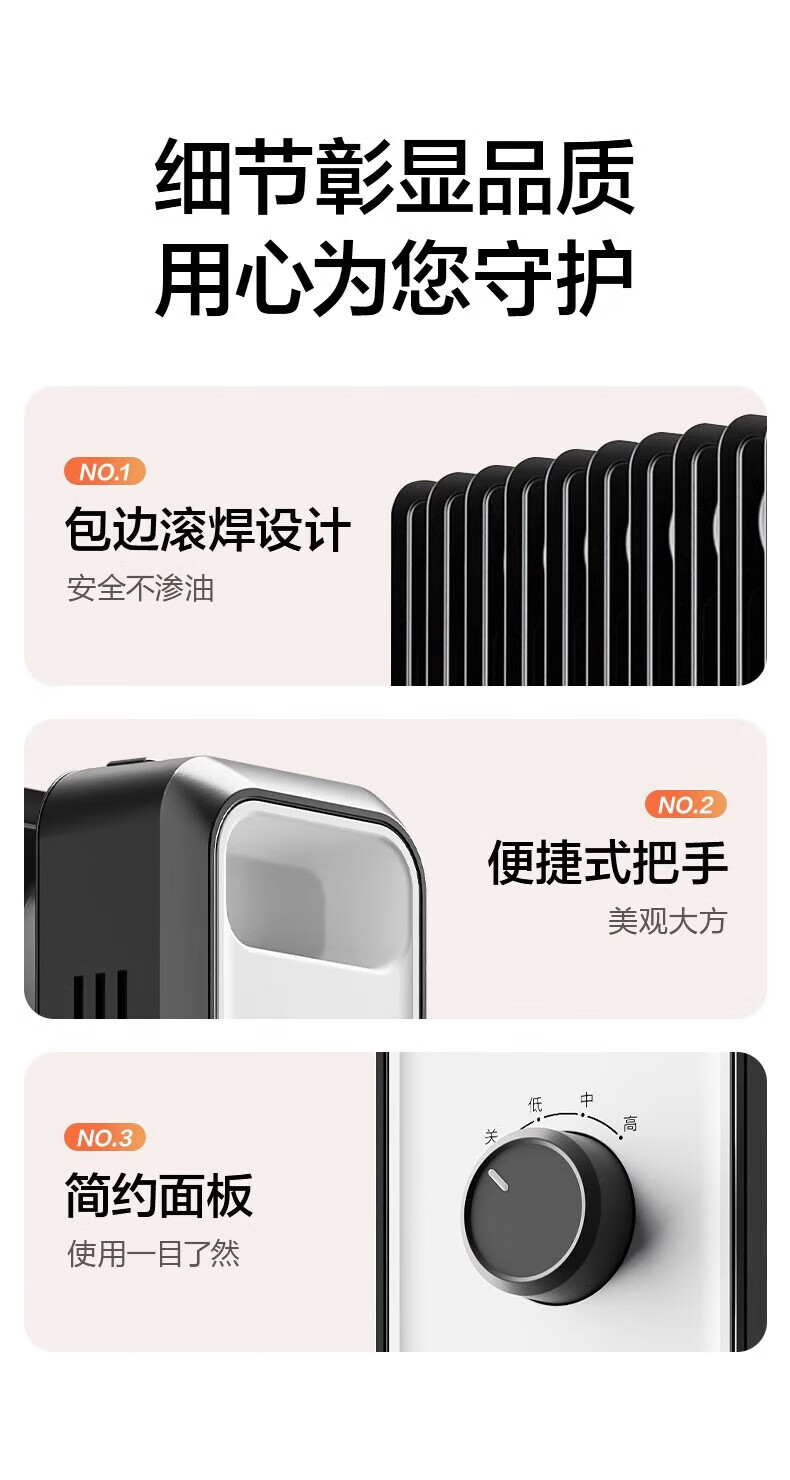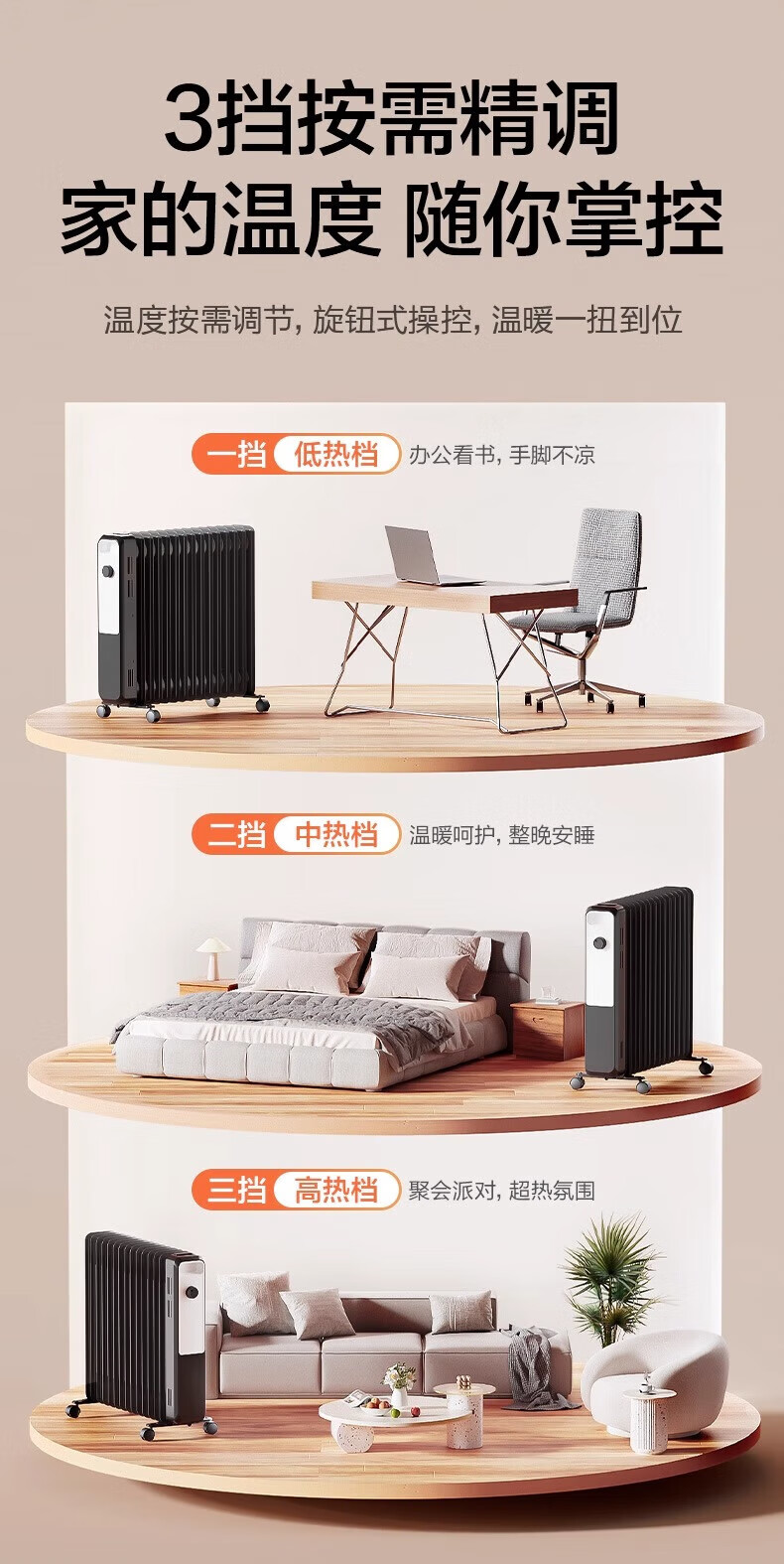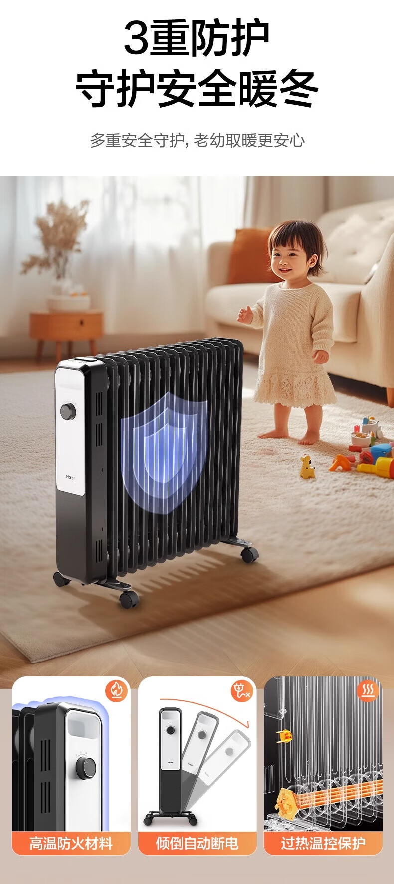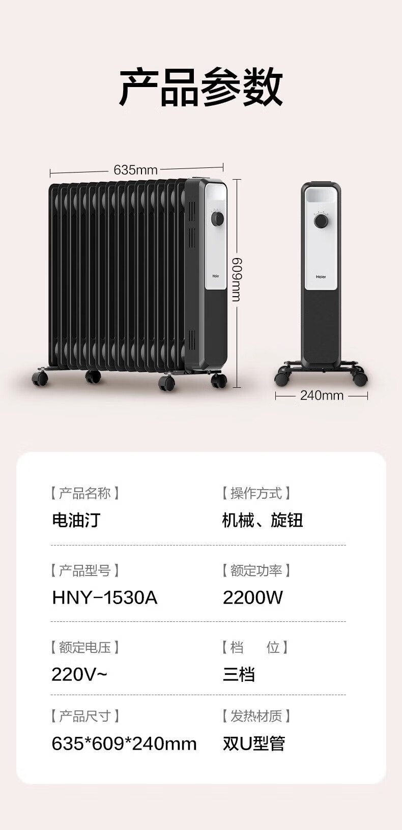 海尔(Haier)电热油汀取暖器电暖器加热暖气片电油汀全屋大面积取暖神器 HNY-1530A 15片HNY-1330A 13片