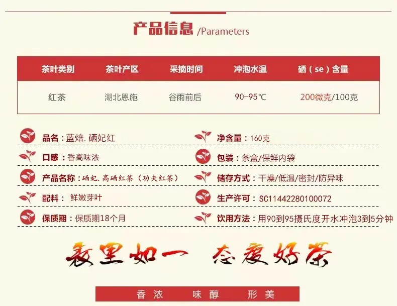 蓝焙湖北恩施高硒红茶鲜嫩芽叶特级高香味浓功夫红茶160克硒茶 高硒红茶(特级) 160克 1盒 160克