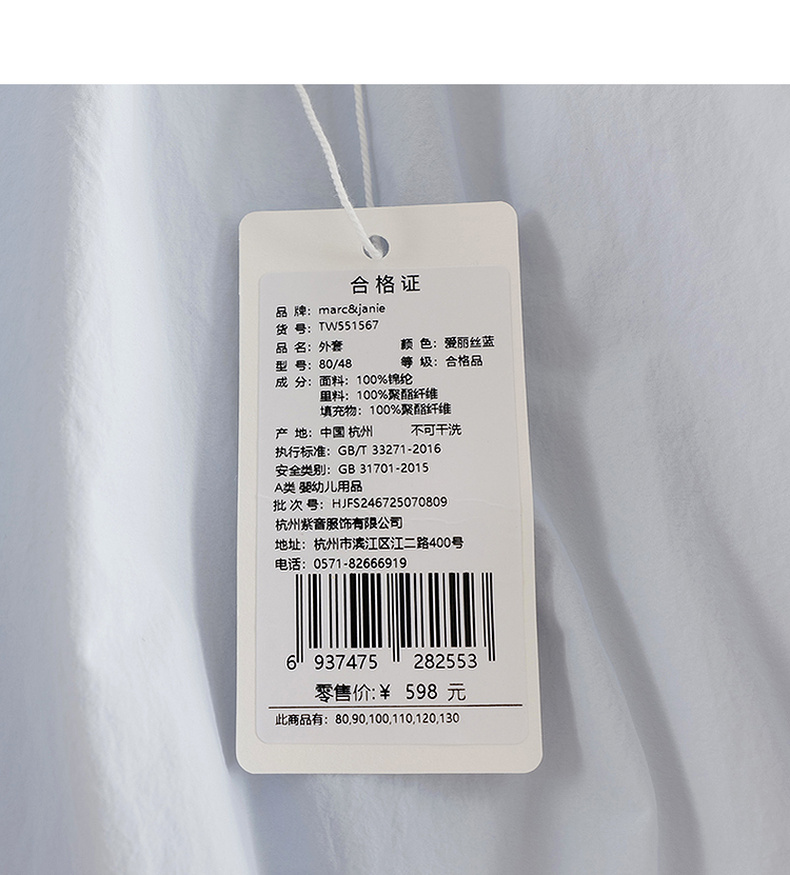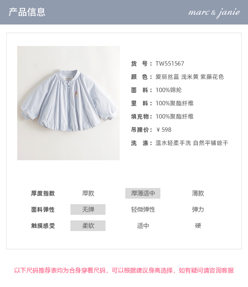 马克珍妮女童轻软防护夹棉花苞外套2025年秋装新款551567