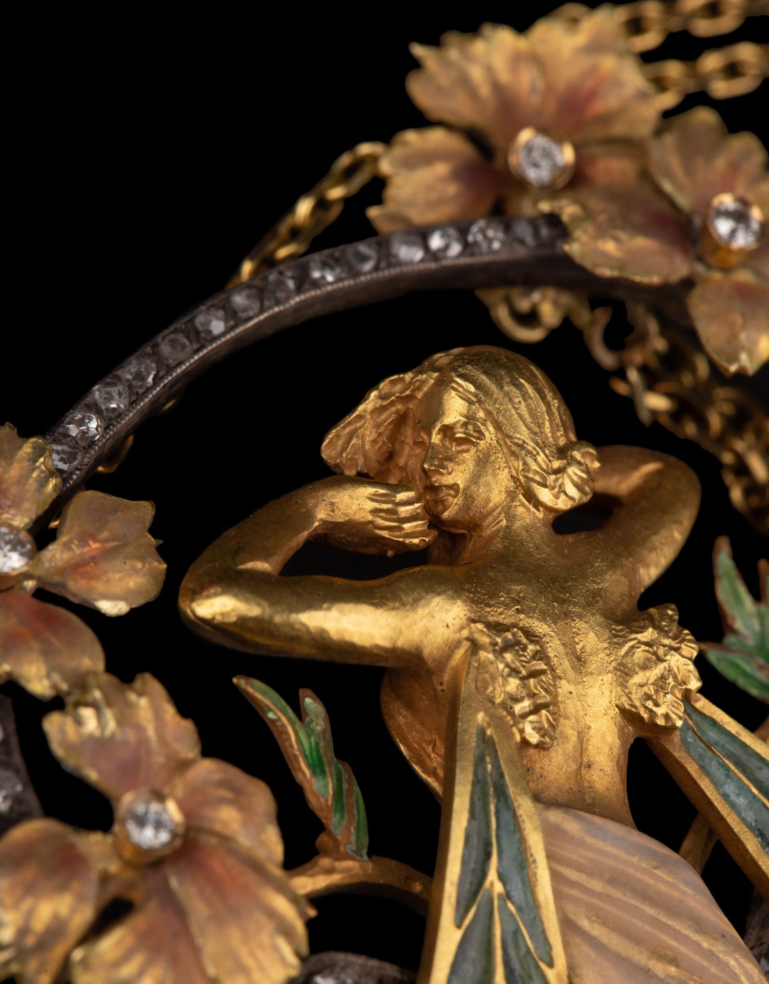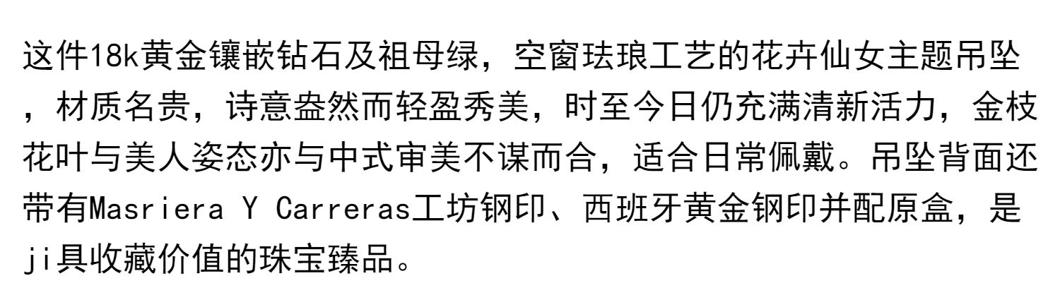 独角鹿西洋古董珠宝名坊18K黄金钻石祖母绿空窗珐琅花卉仙女吊坠