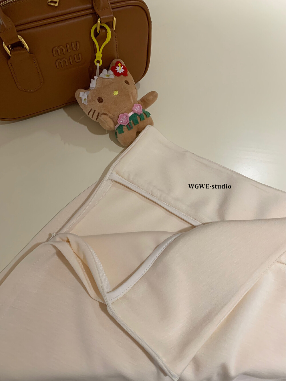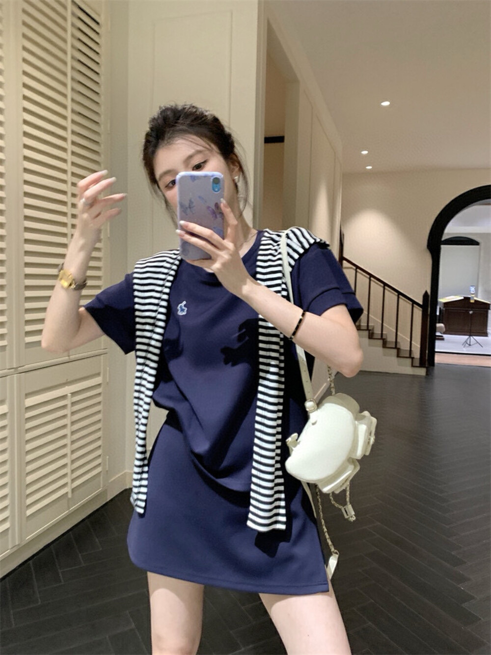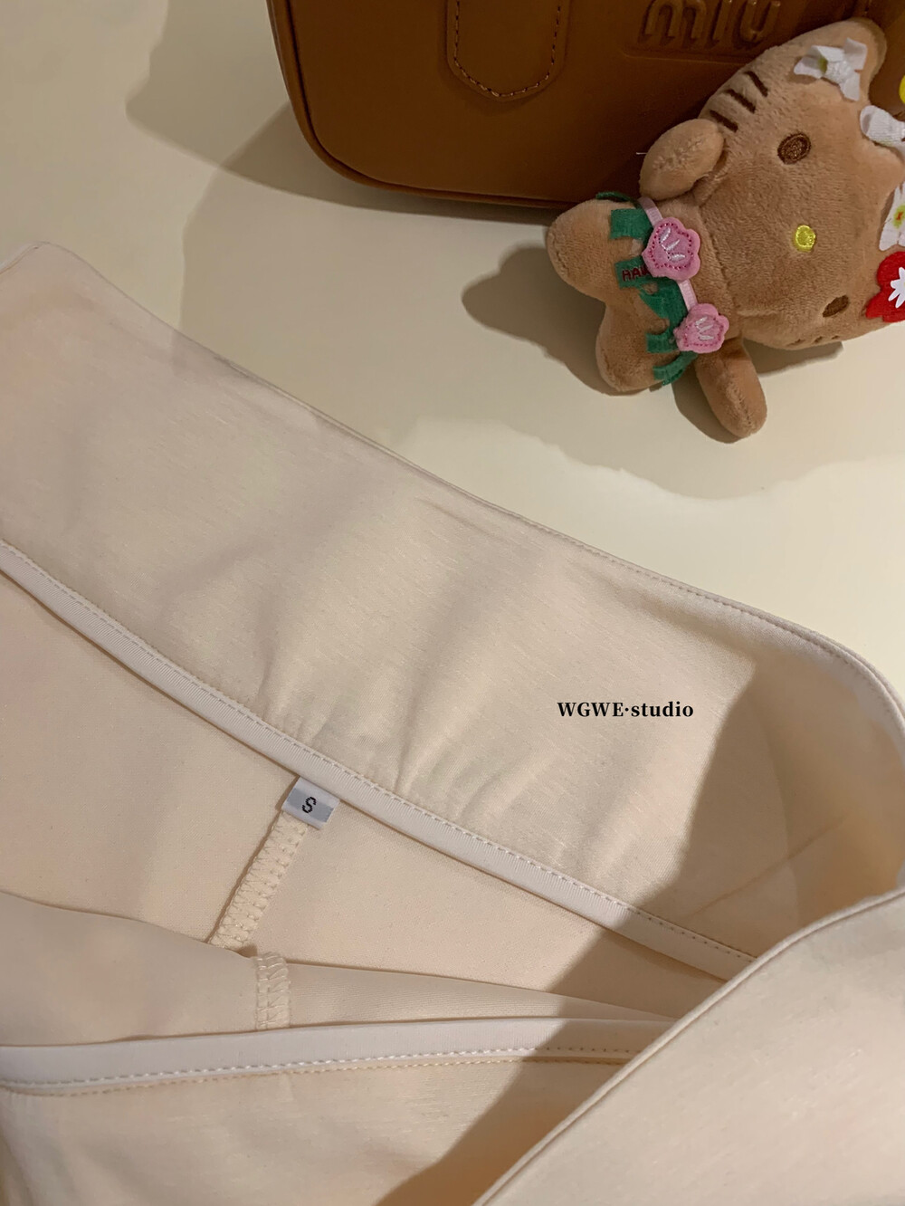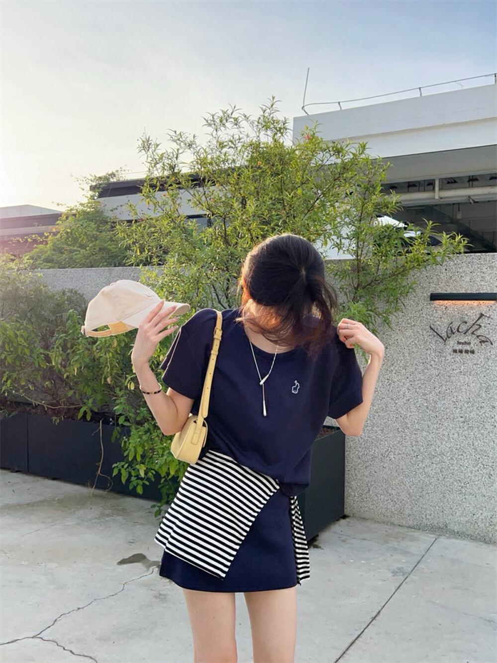 【GZ】无忧购韩系慵懒风盐系休闲圆领短袖T恤+高腰短裙半身裙套装(配披肩)W5218#(截单后7天发货)