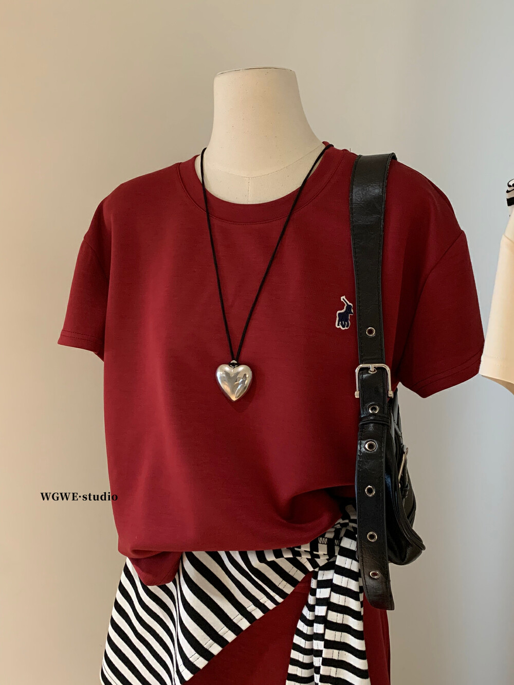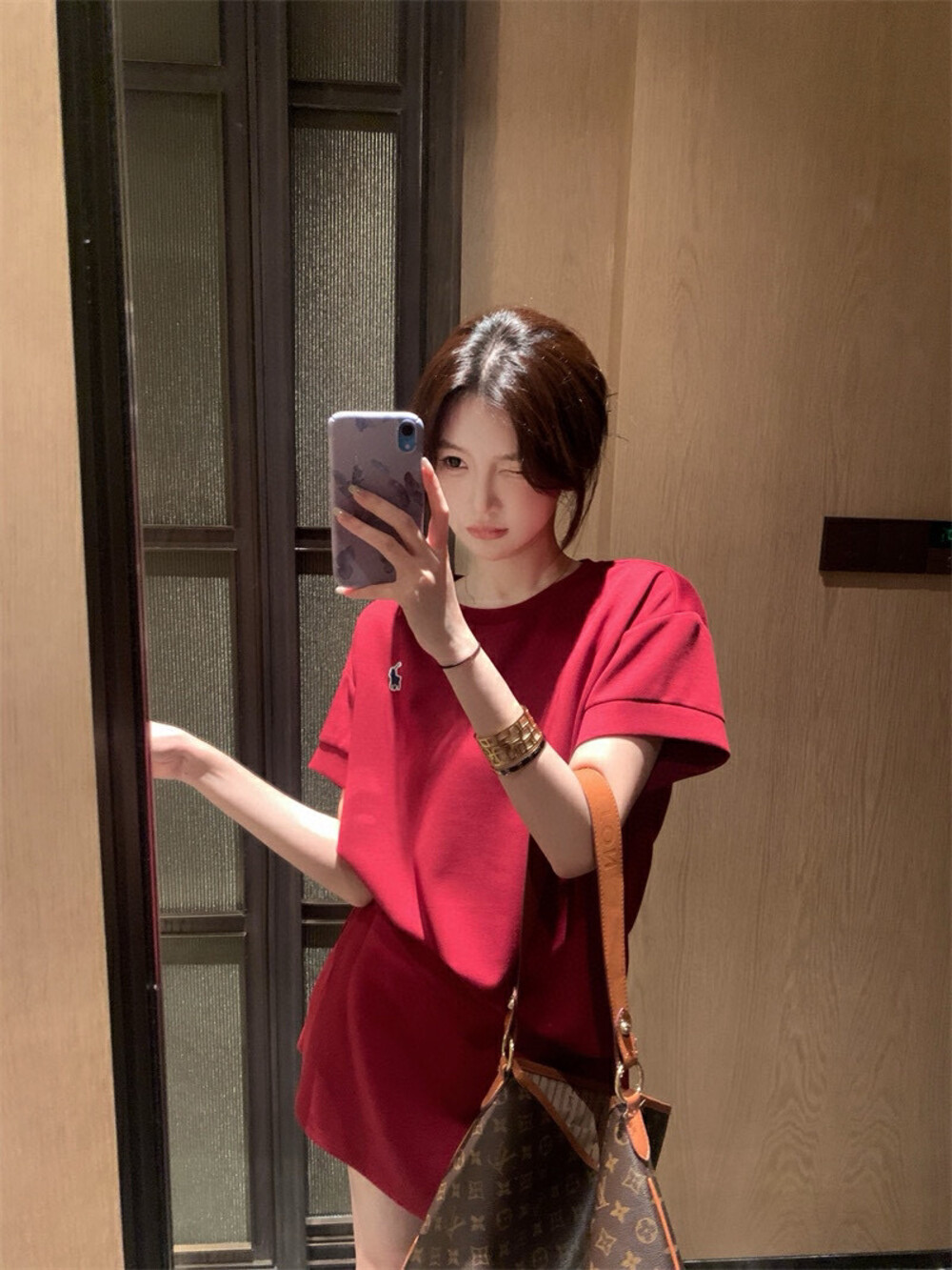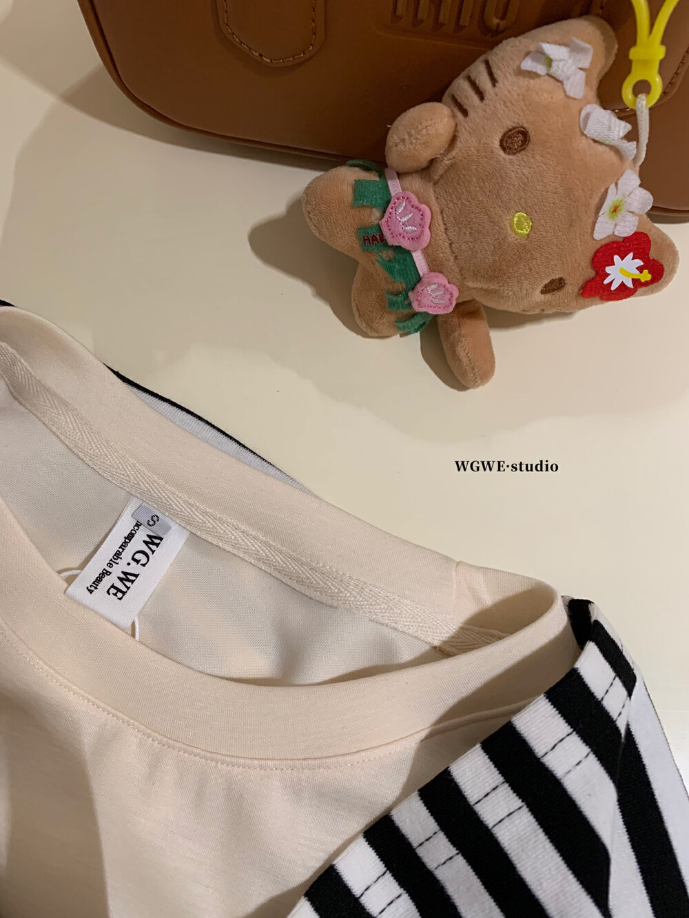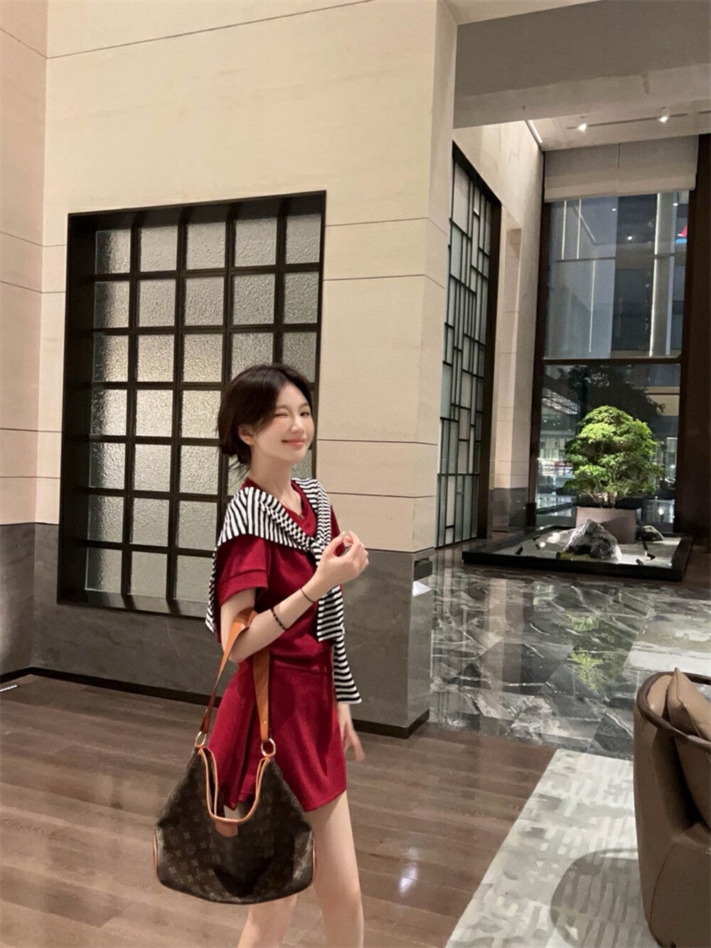 【GZ】无忧购韩系慵懒风盐系休闲圆领短袖T恤+高腰短裙半身裙套装(配披肩)W5218#(截单后7天发货)