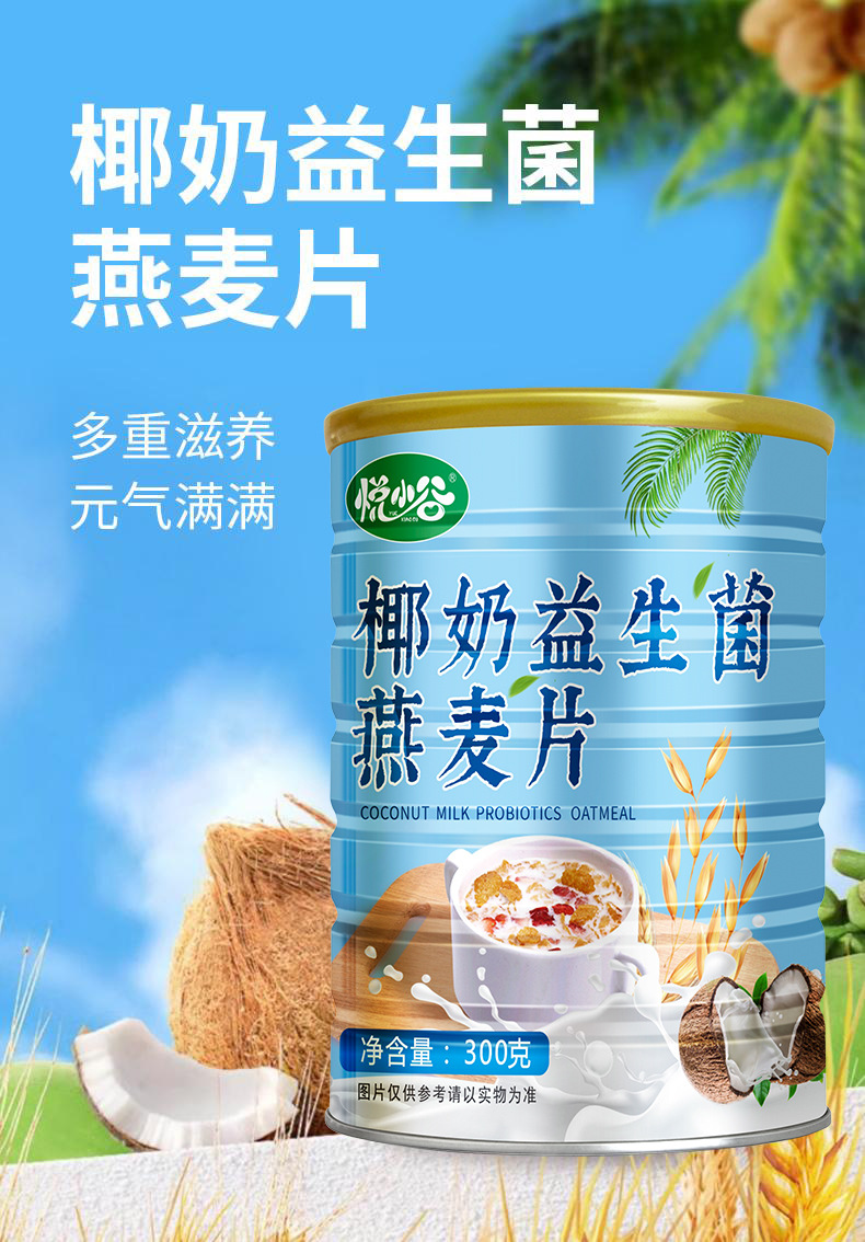 【29.9抢2罐❗椰奶益生菌燕麦片】抗饿界的扛把子,30s快速冲泡科学营养配比,浓郁奶香口感软糯,300克罐装早餐代餐饱腹麦片牛奶学生QQ