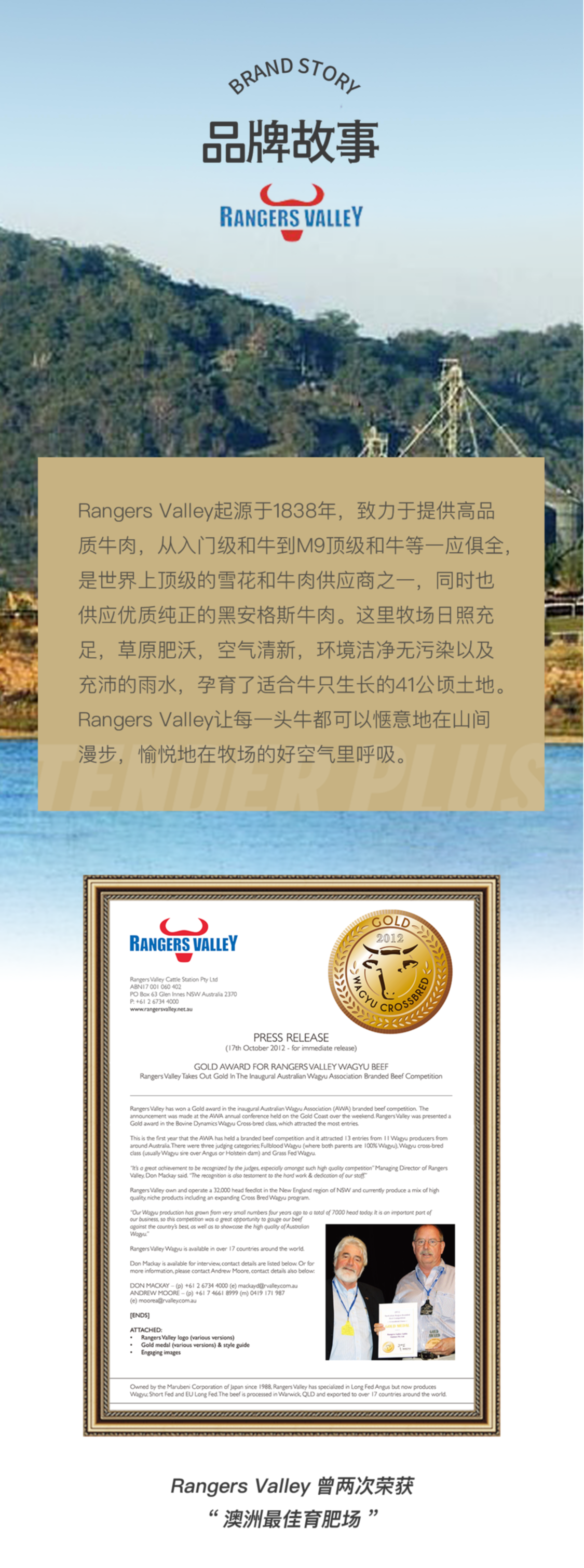 澳洲 Rangers Valley M7 和牛雪花肉块250g*3