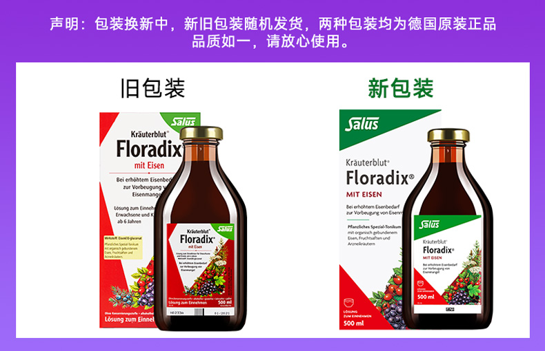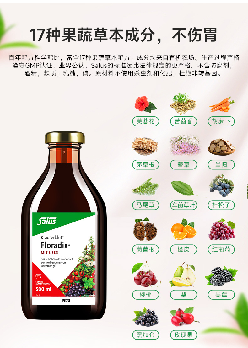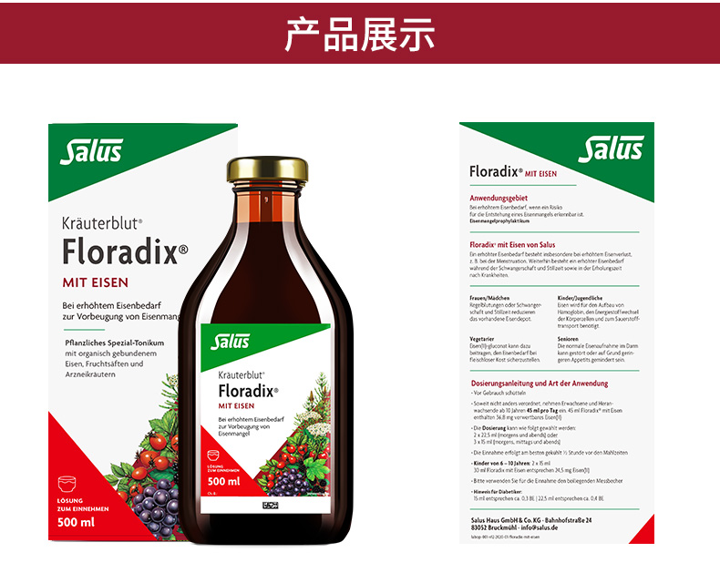 【跨境】德国Salus莎露斯Floradix红色版铁元草本滋补液500ml(新版)