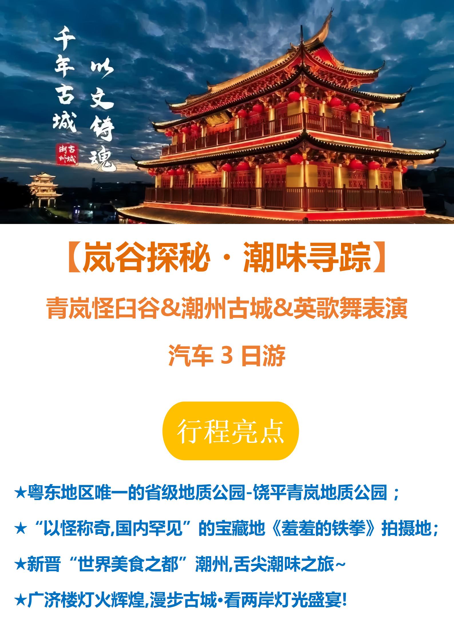 【岚谷探秘・潮味寻踪】 青岚怪臼谷&潮州古城&英歌舞表演 汽车3日游