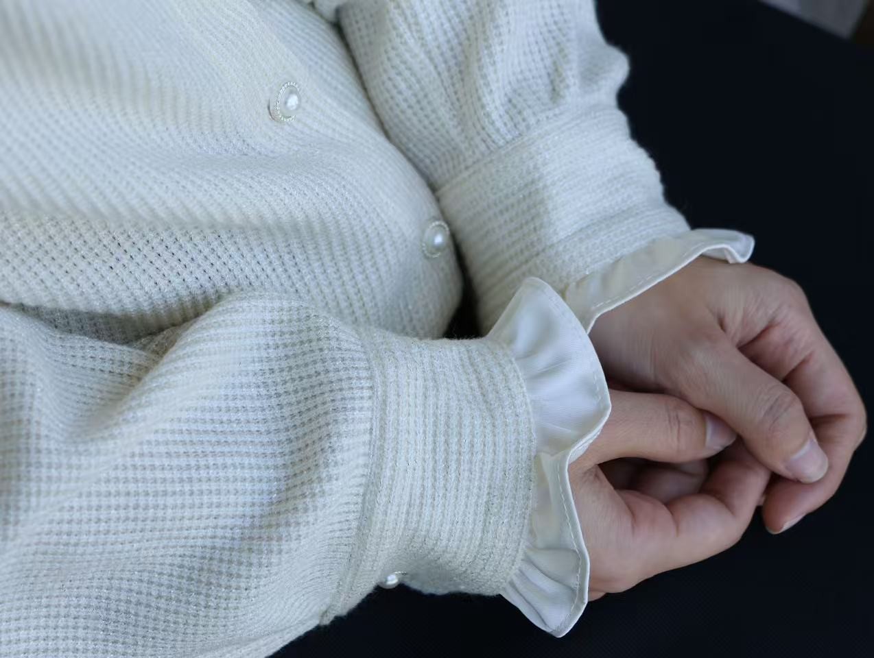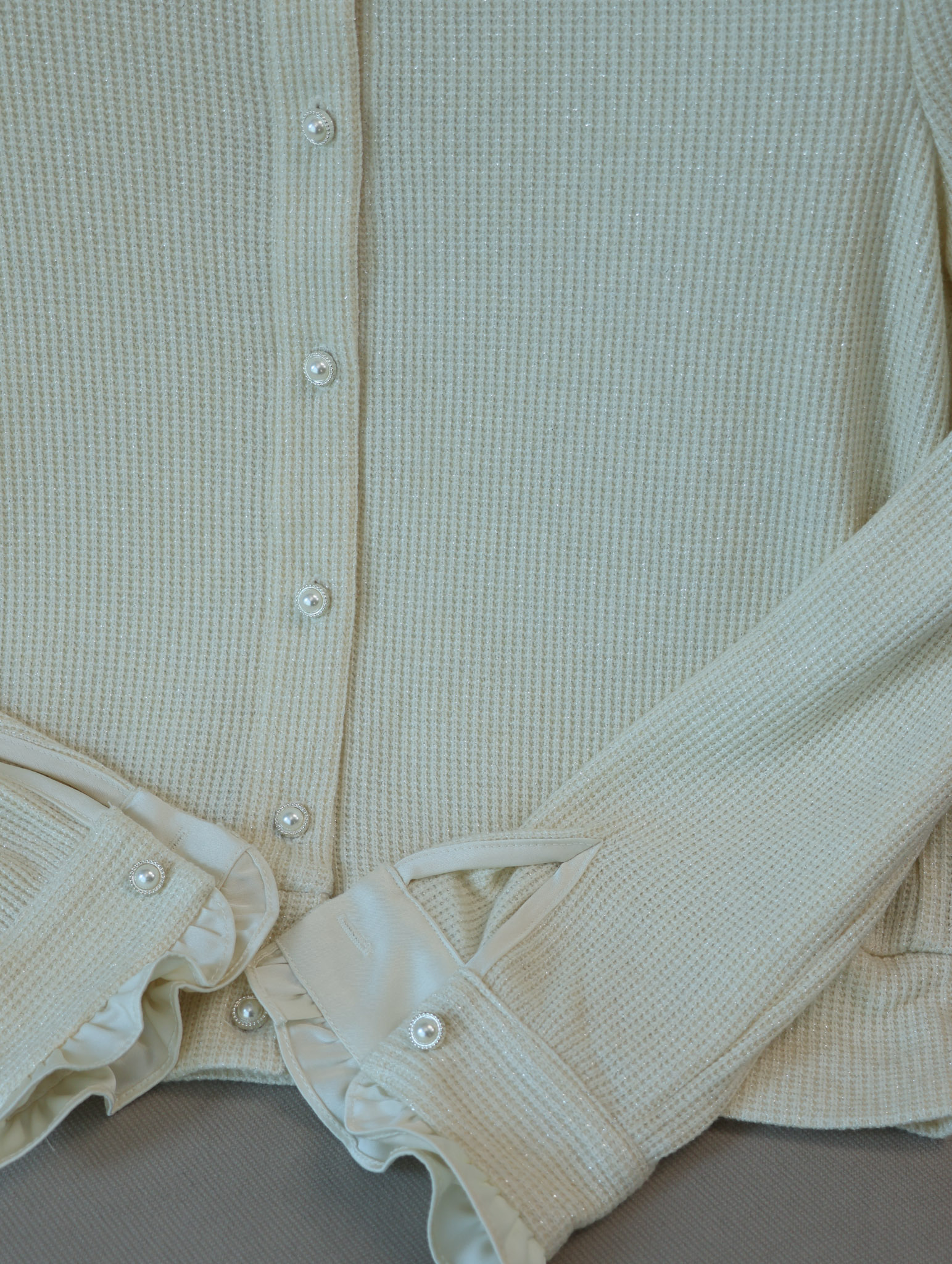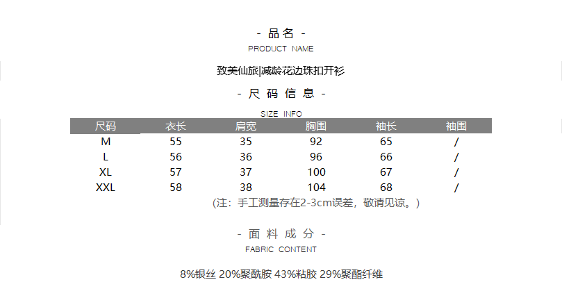 致美仙旅|减龄花边珠扣开衫