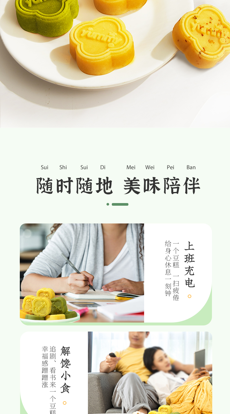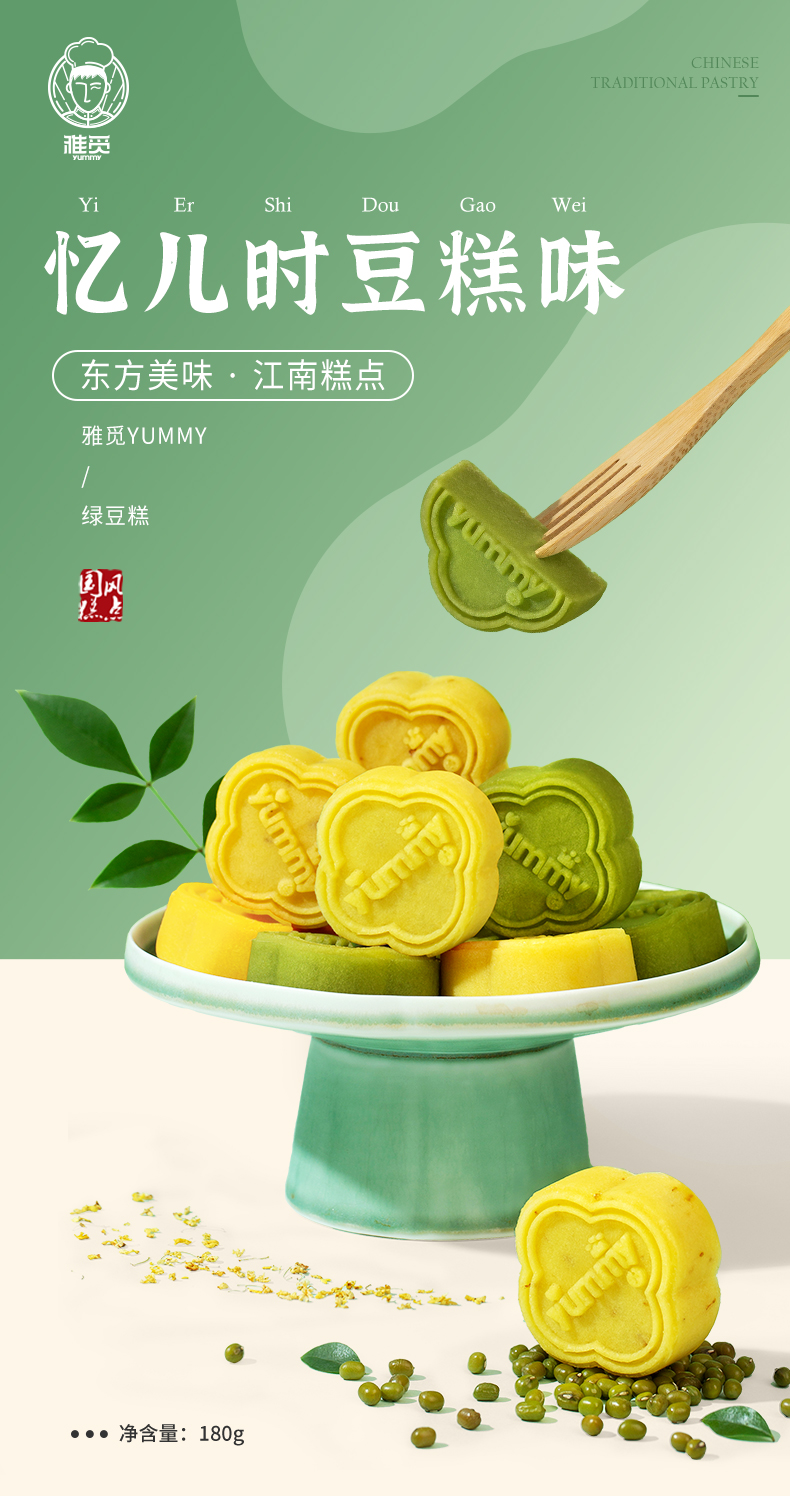 雅觅 多口味绿豆糕系列180g*3盒 原味/绿茶/桂花三种口味选择;甄选原料,清香不腻,沙润绵软