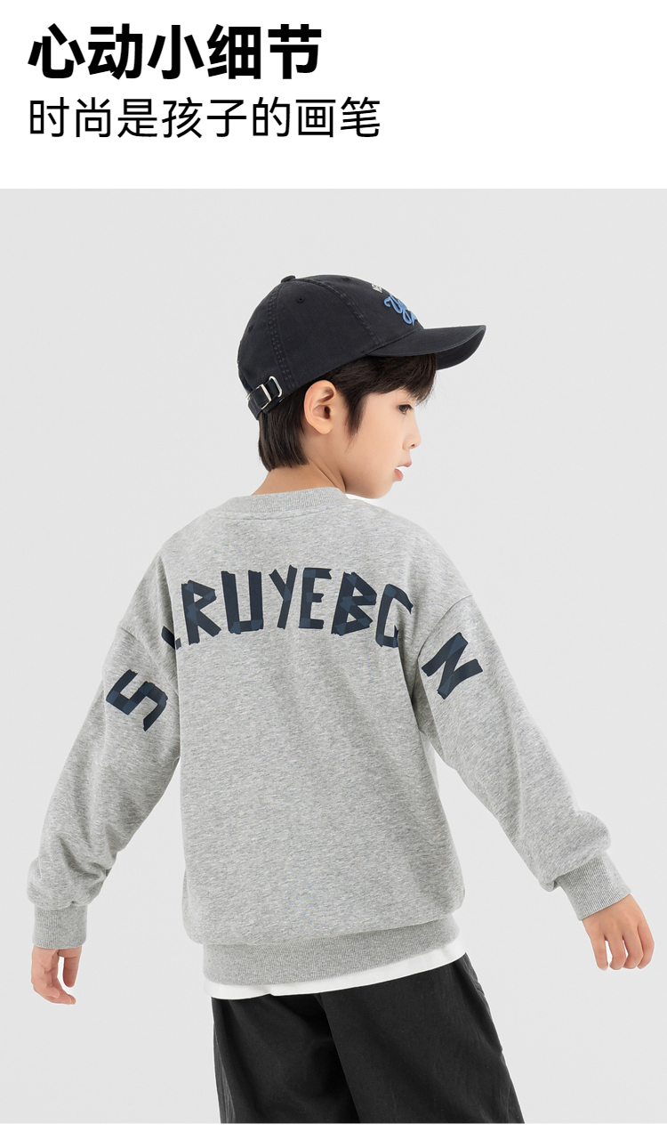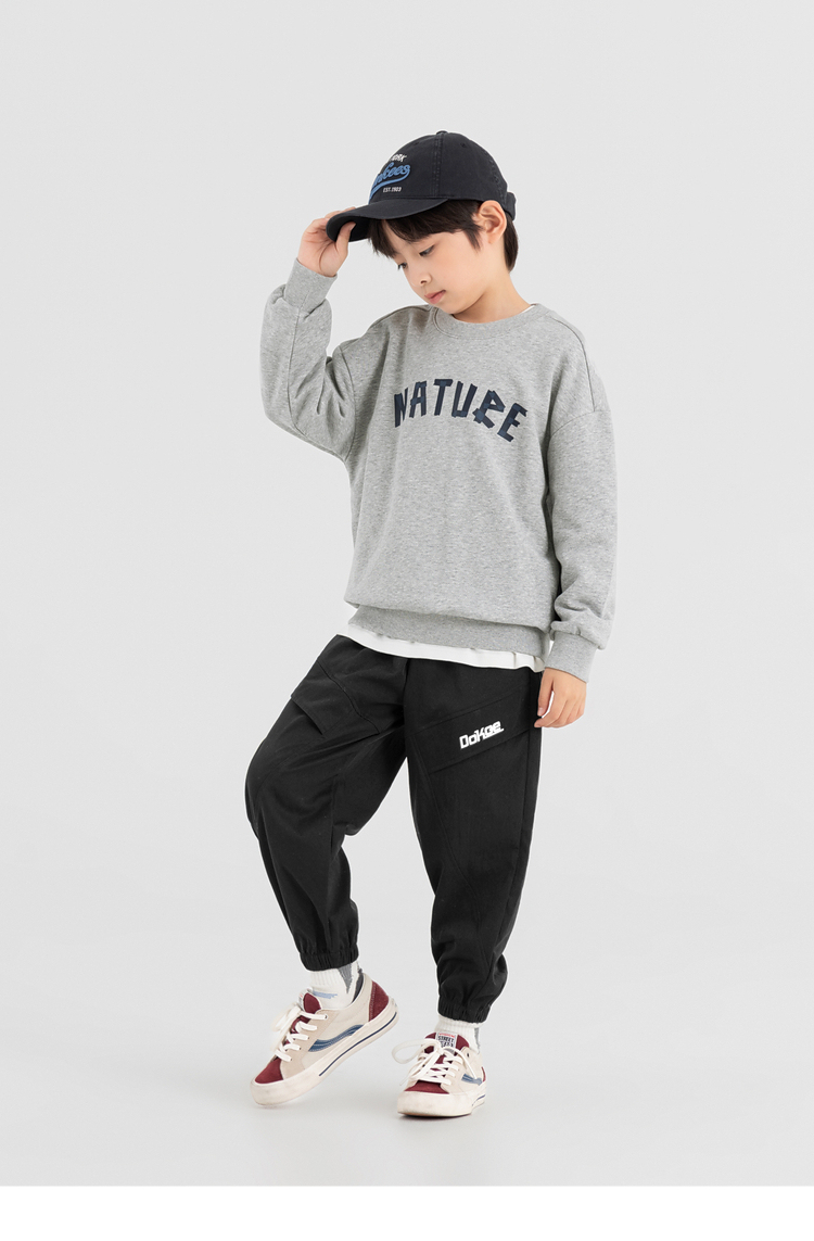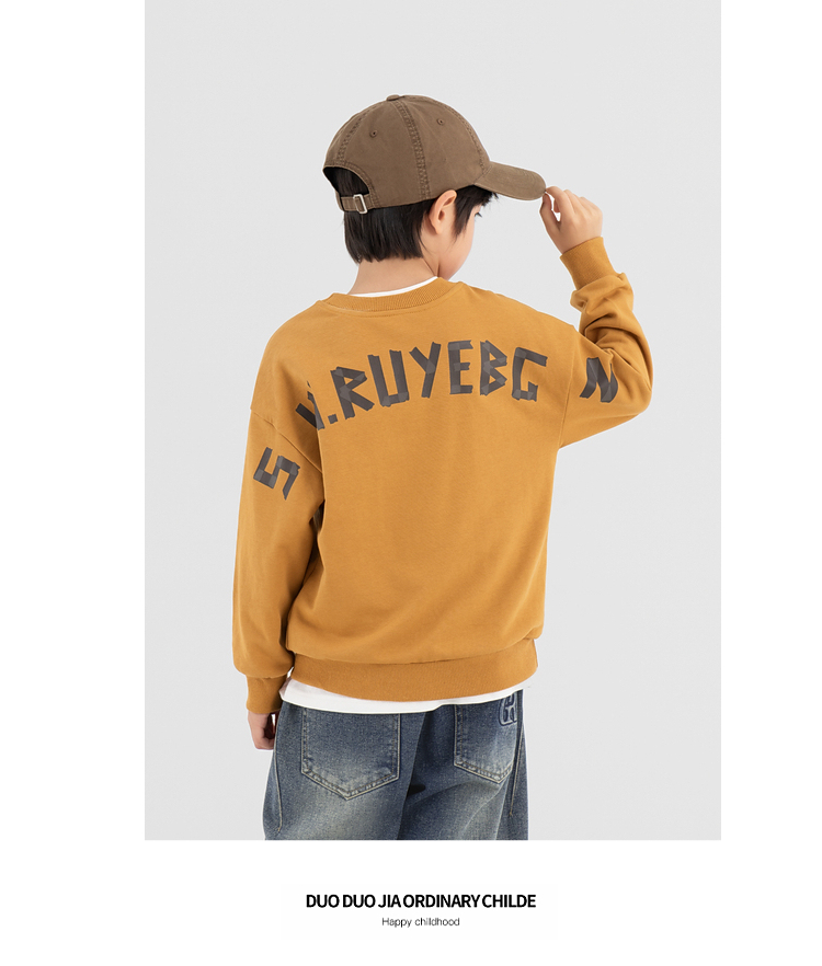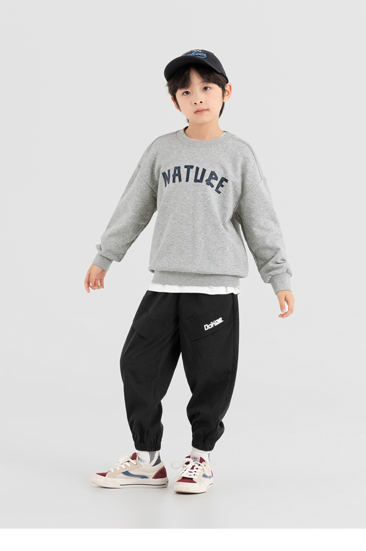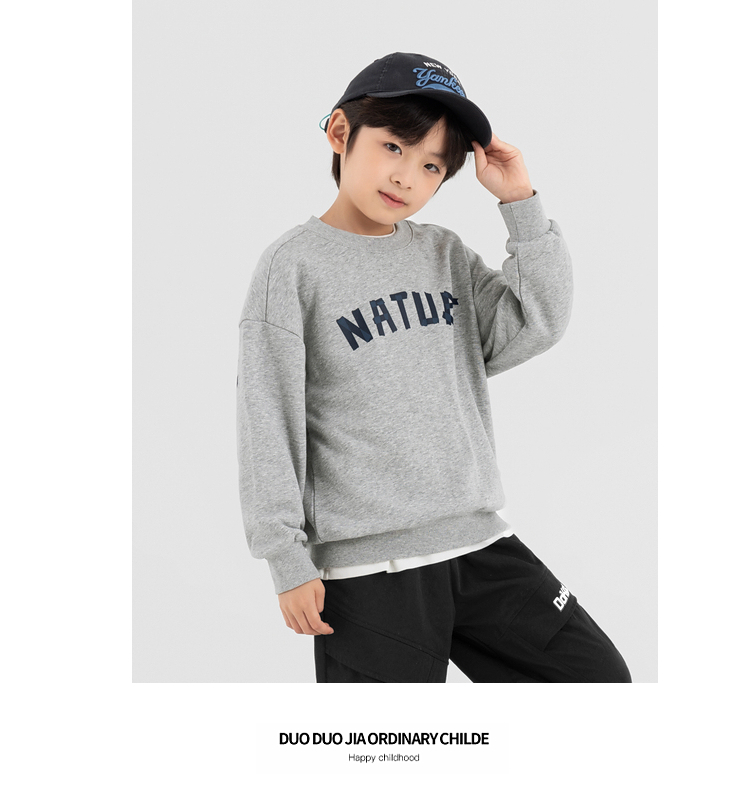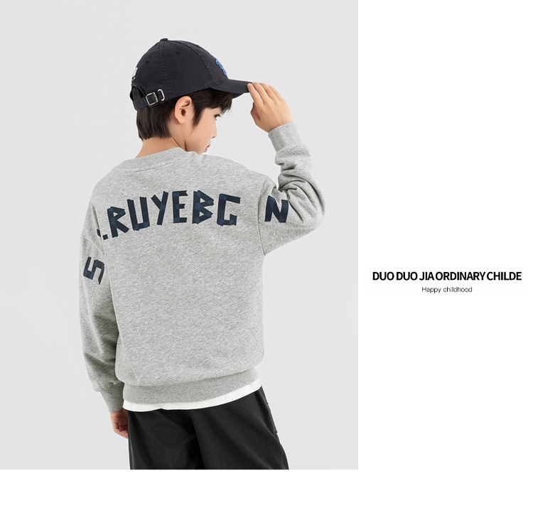 【件件底价,童装双倍积分】多多家男童卫衣春秋款2025新款儿童中大童大字母印花圆领上衣秋装10916