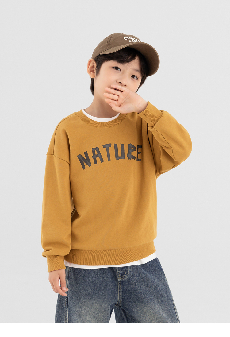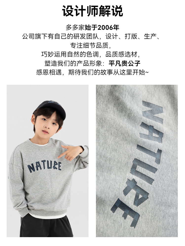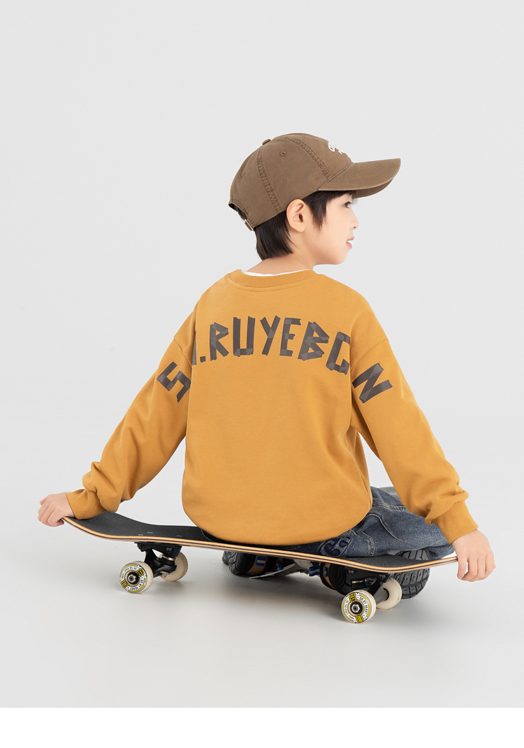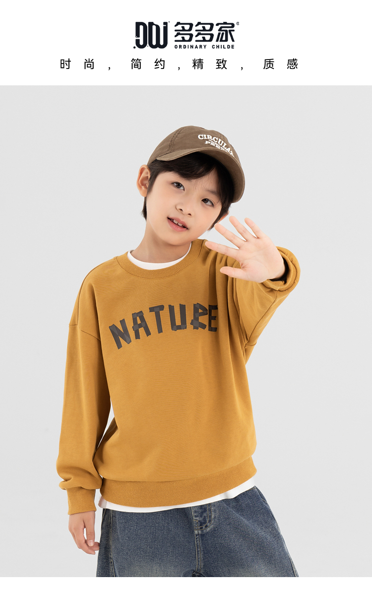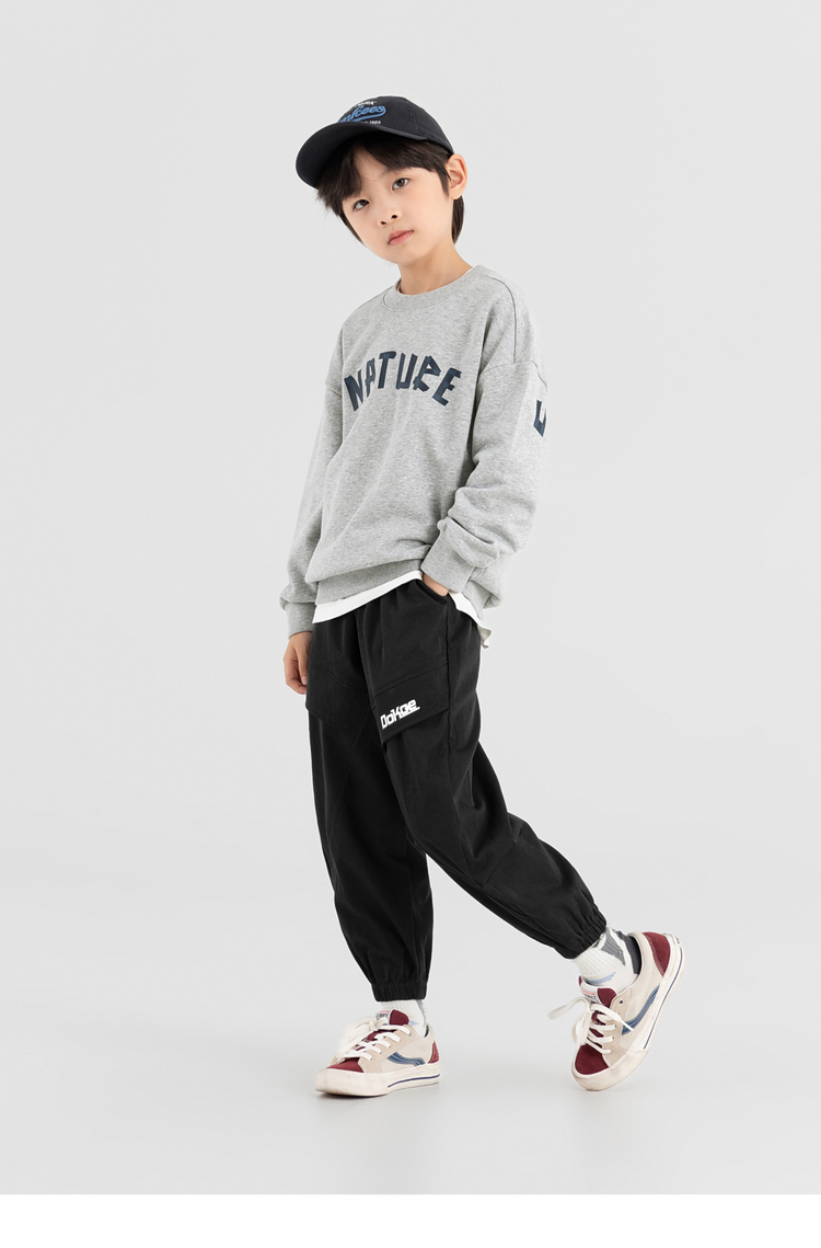 【件件底价,童装双倍积分】多多家男童卫衣春秋款2025新款儿童中大童大字母印花圆领上衣秋装10916