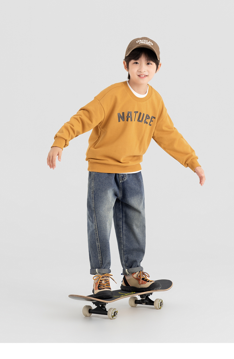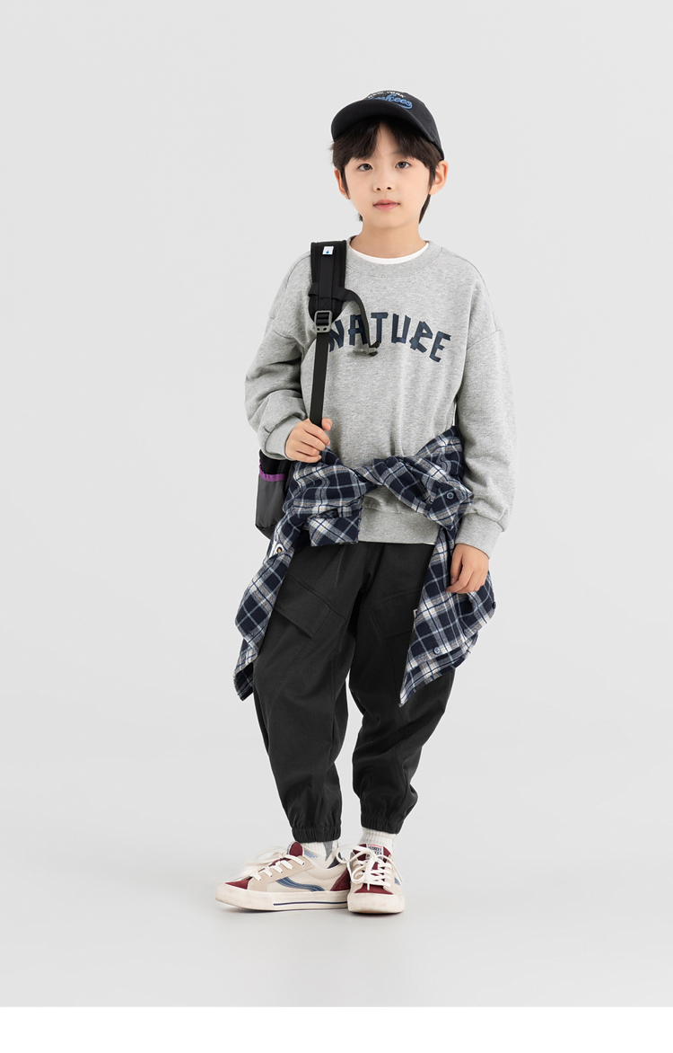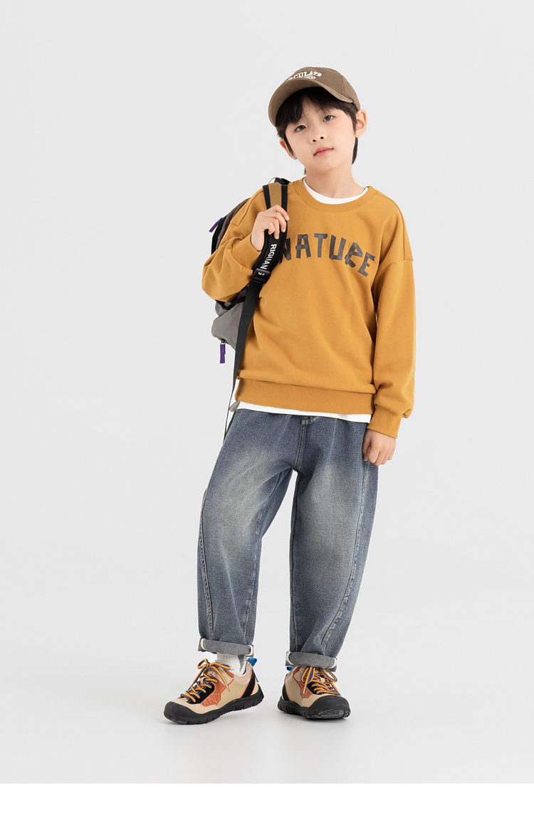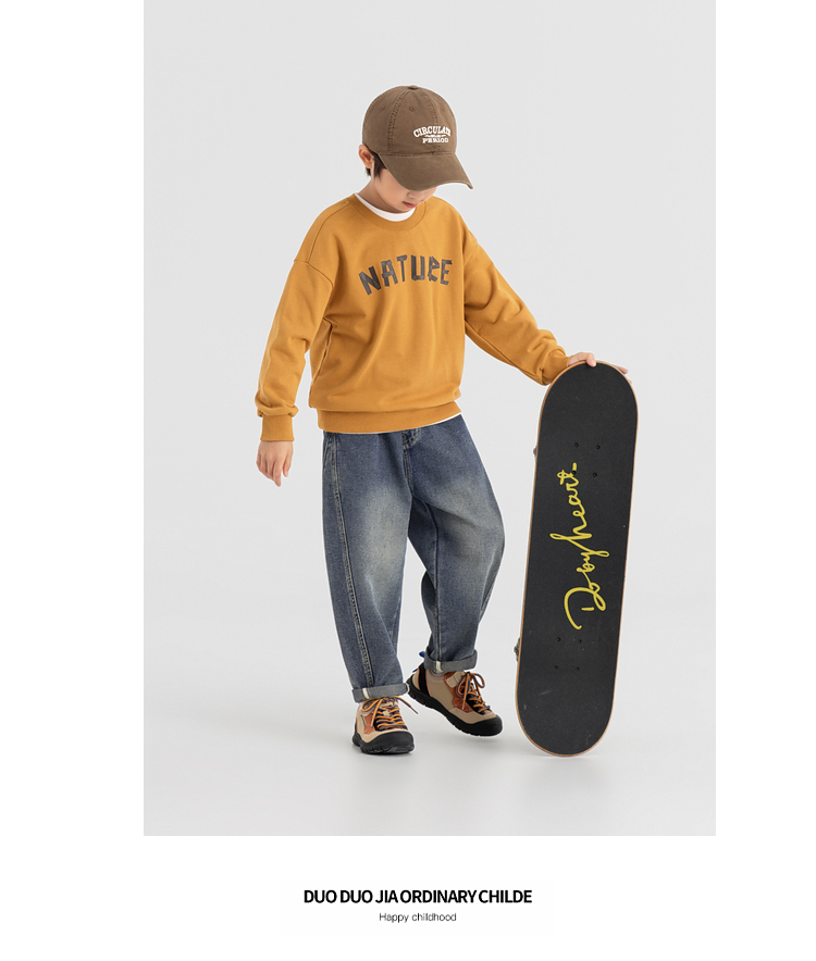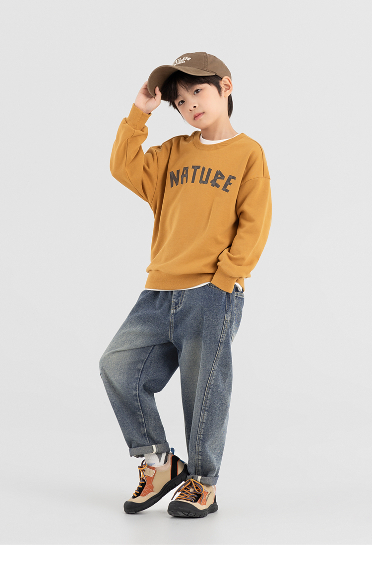 【件件底价,童装双倍积分】多多家男童卫衣春秋款2025新款儿童中大童大字母印花圆领上衣秋装10916