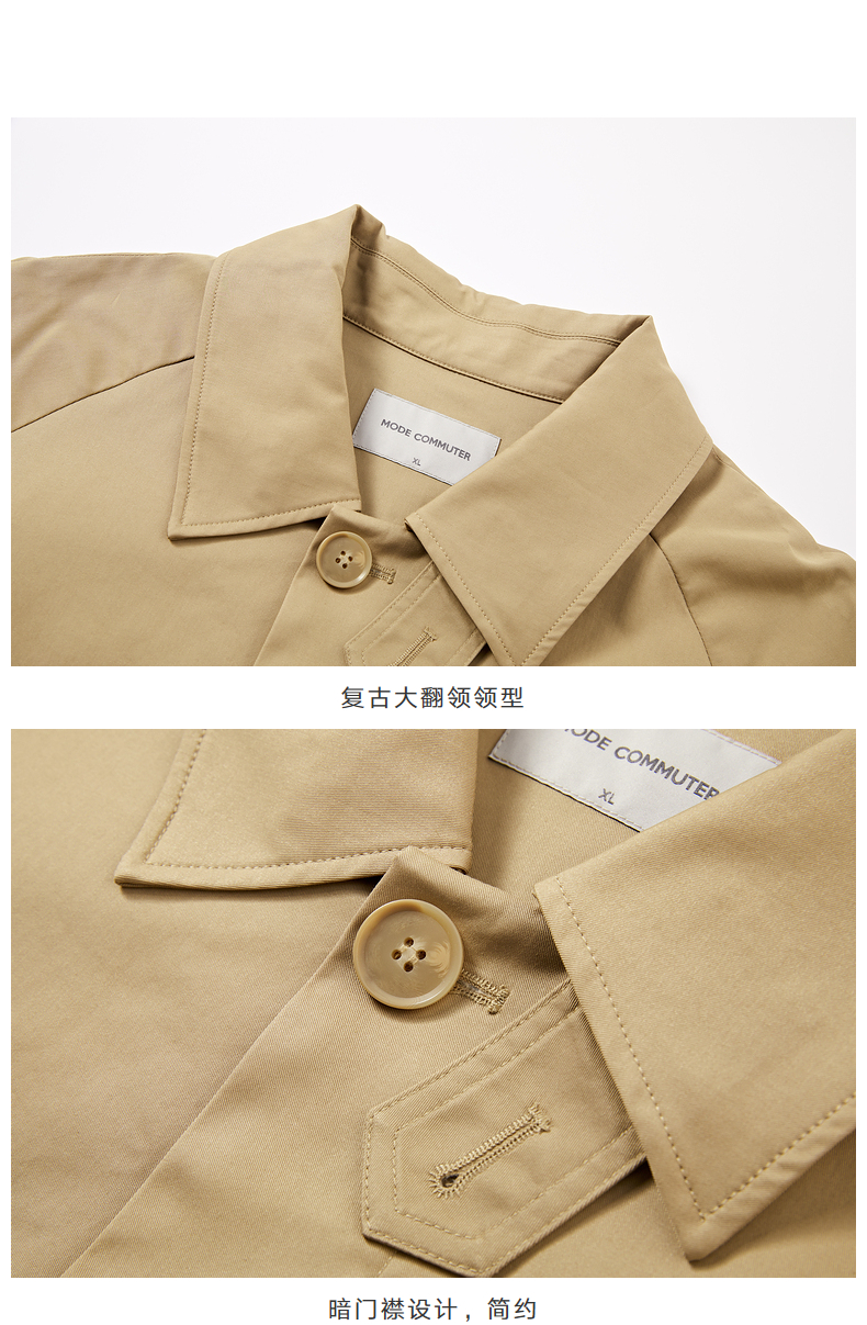 MC |MODE COMMUTER春季复古大方领侧边口袋男士风衣MCD108064A