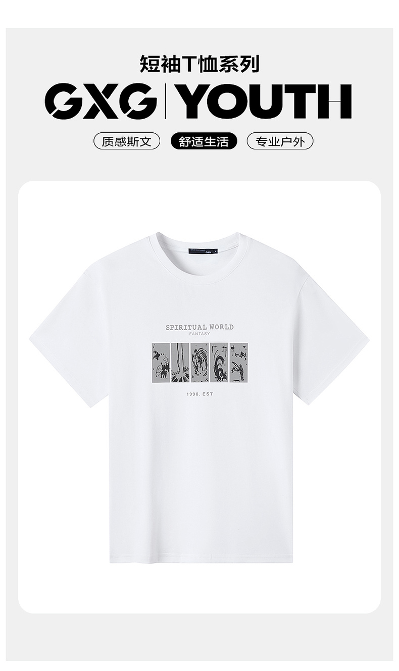 GXG男装【100%棉】夏季潮流简约休闲短袖t恤男款圆领打底上衣K&C