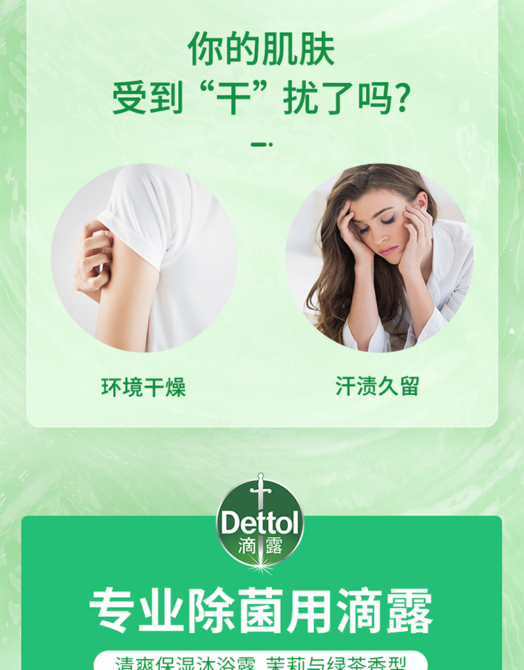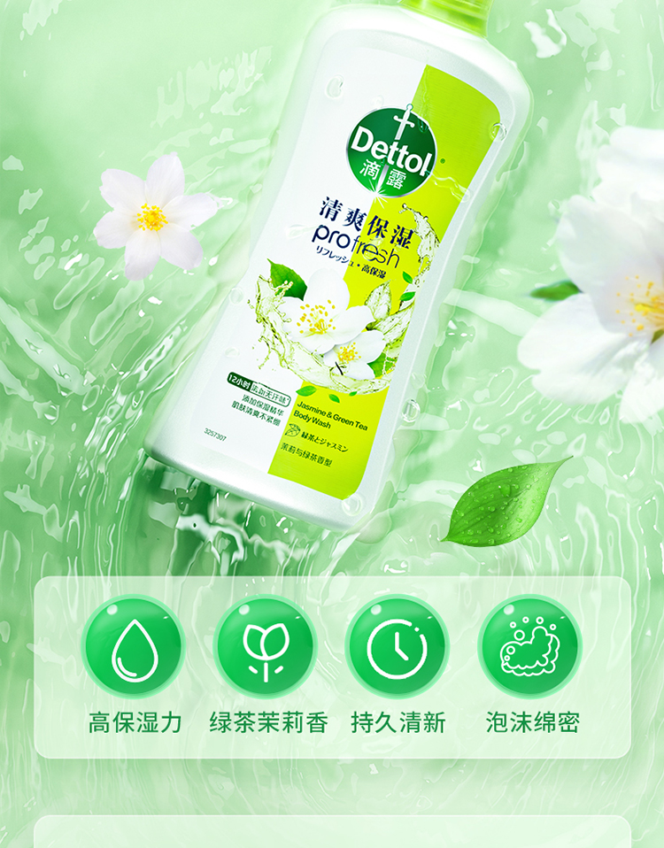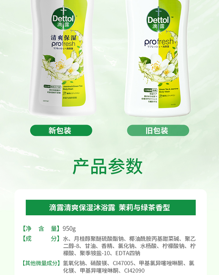 滴露清爽保湿沐浴露茉莉与绿茶香型950g