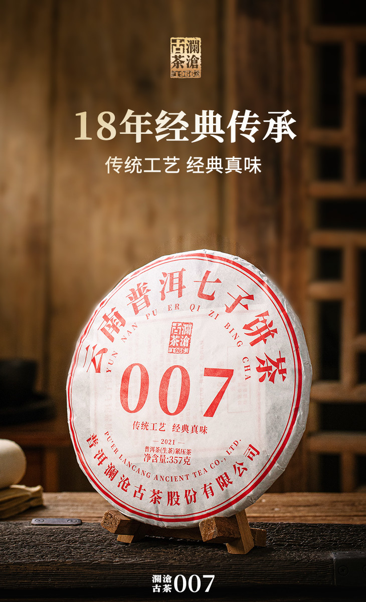 澜沧古茶2021年007普洱茶生茶生普古树老树云南七子饼茶357g礼盒装(中秋送礼优选)