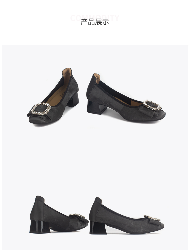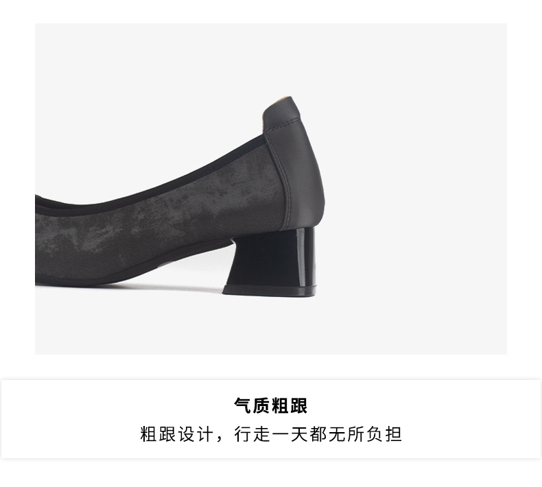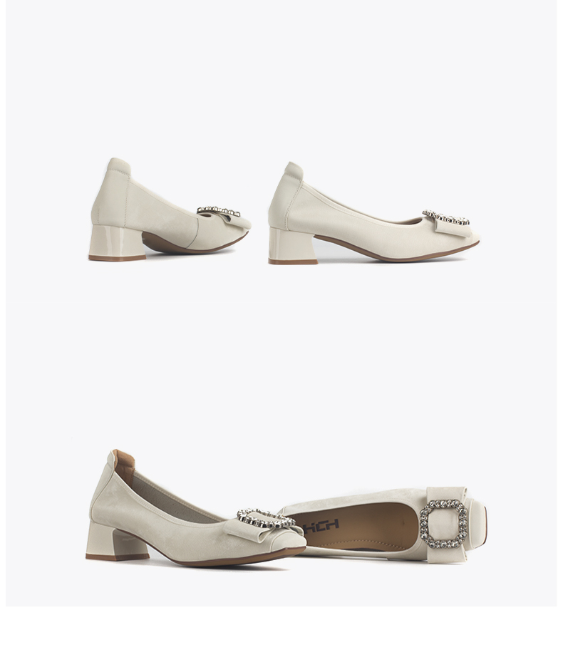 和诚行 2024秋冬新款真皮水钻粗跟方头女时尚休闲浅口单鞋2020009