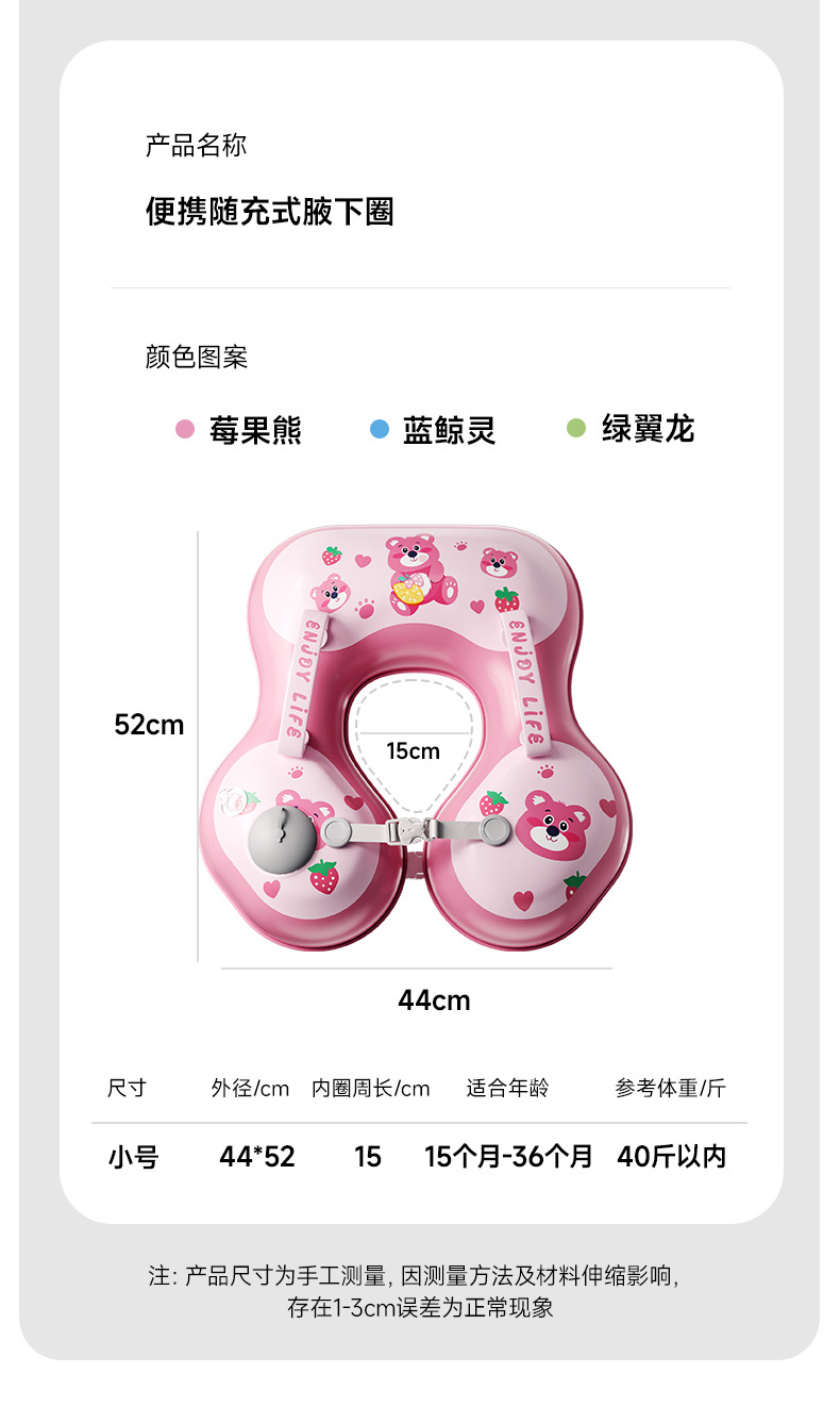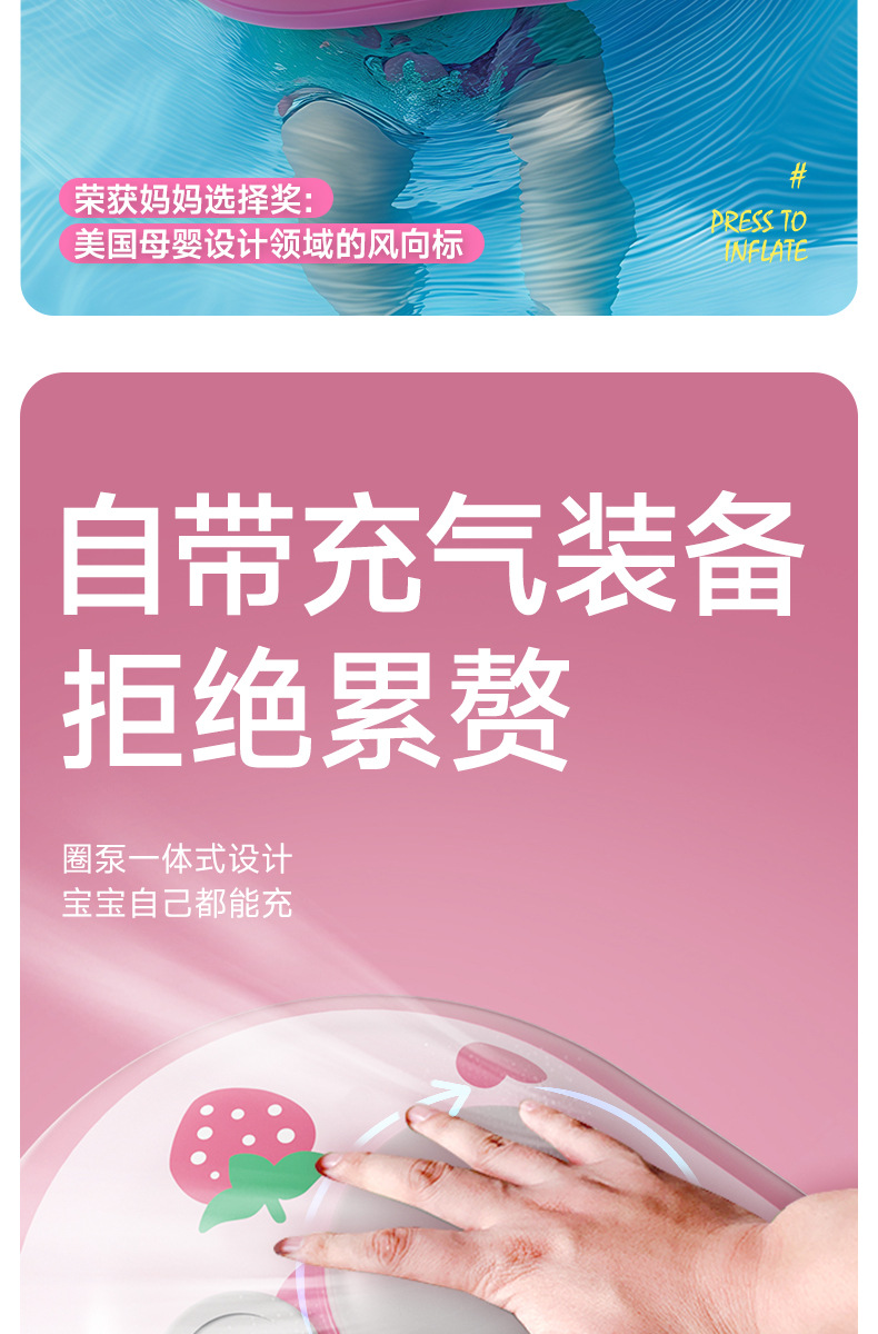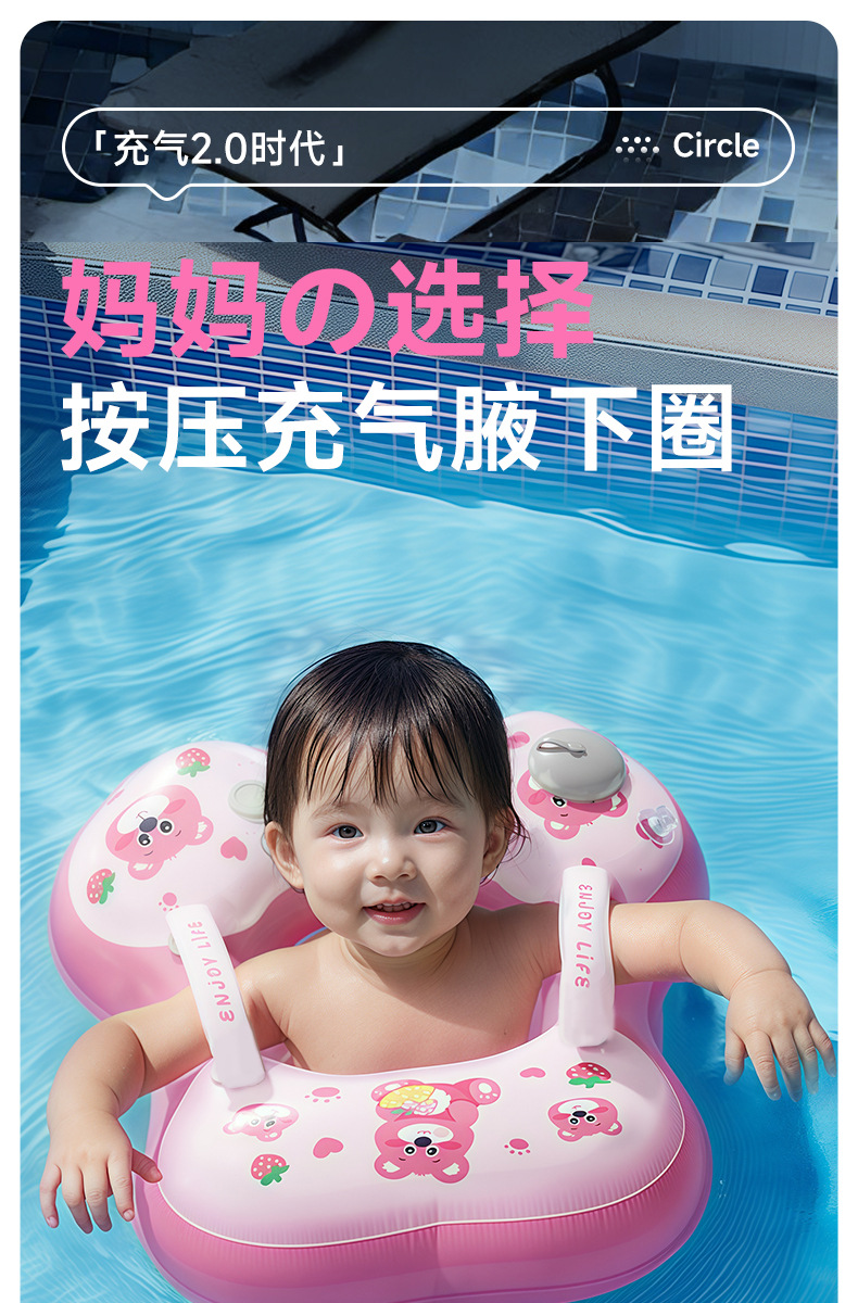 【自带充气装备,拒绝累赘!】儿童游泳圈 儿童腋下圈 卡通宝宝按压充气泳圈 浮力游泳装备-QQ