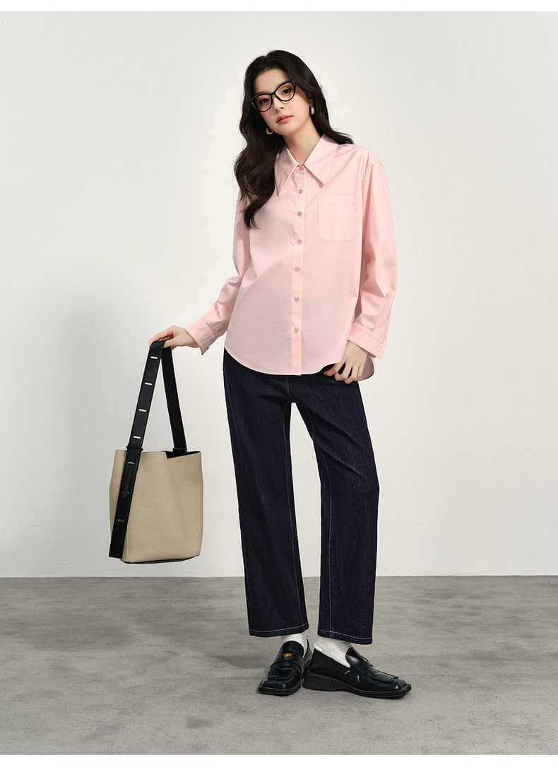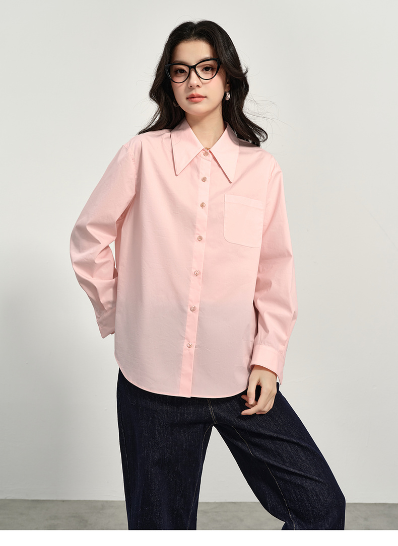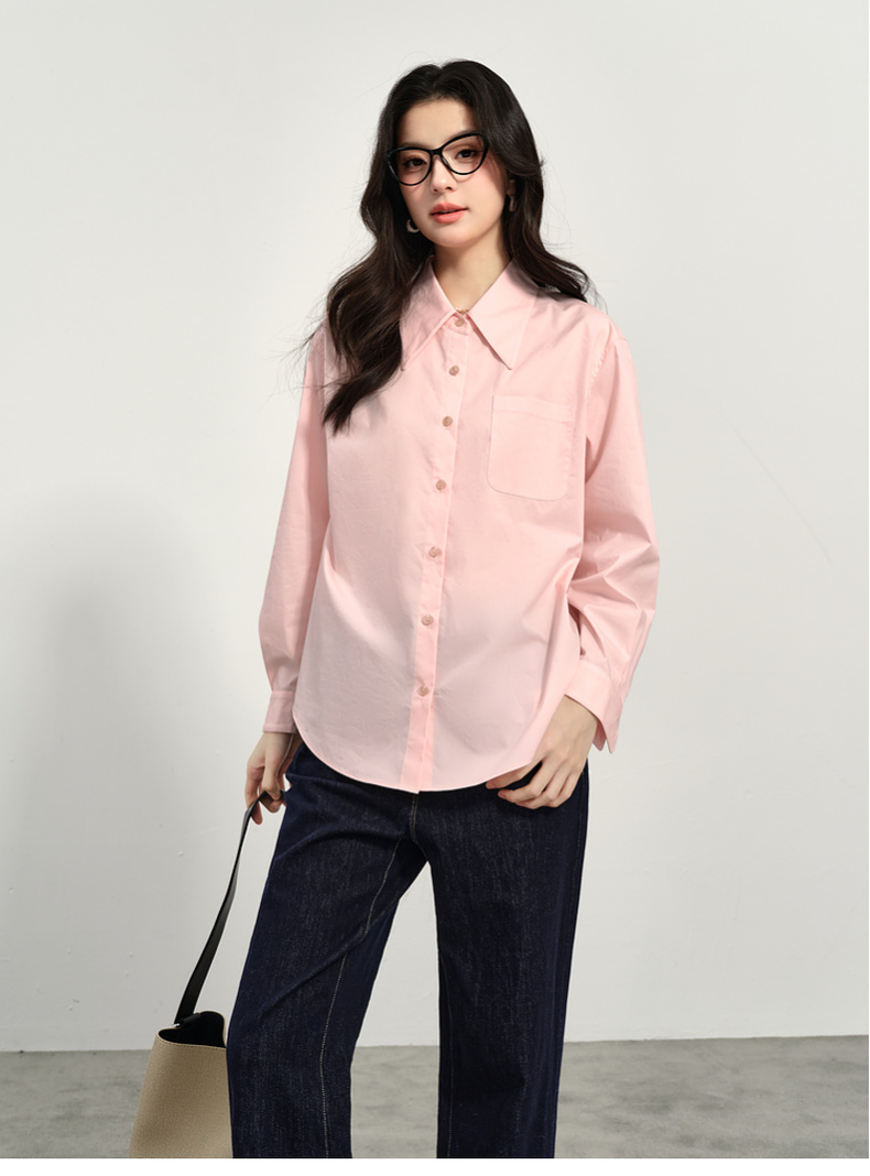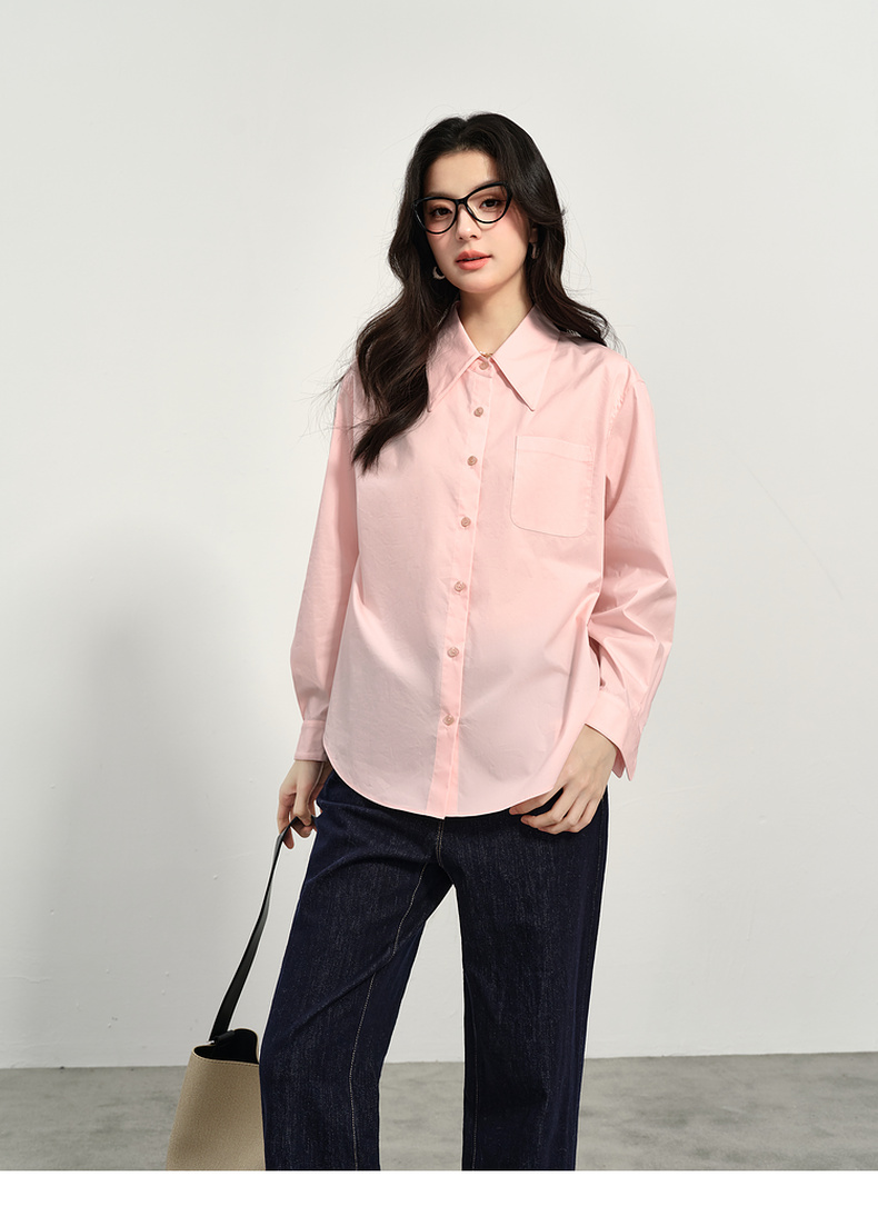 【商场同款】诗凡黎粉色翻领衬衫2025春新款小衫衬衣女3G2121021R