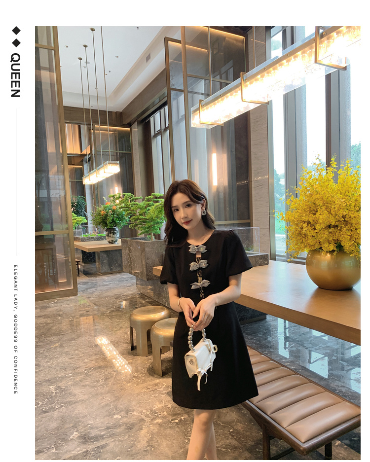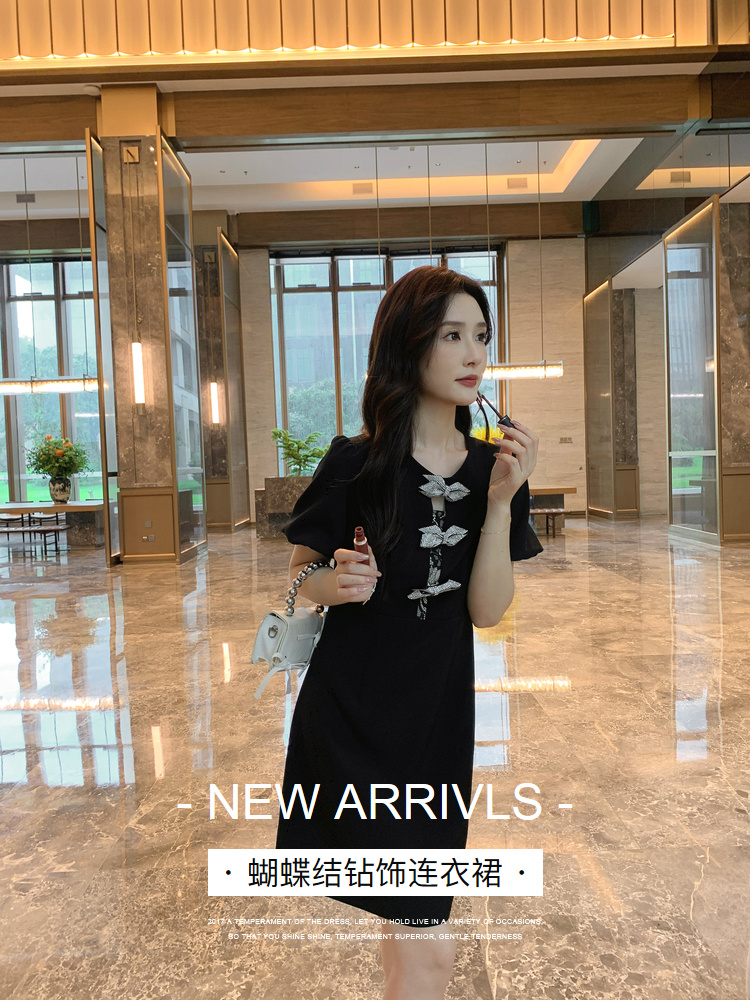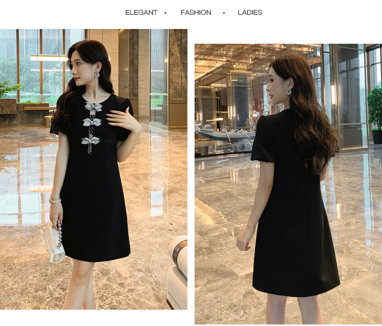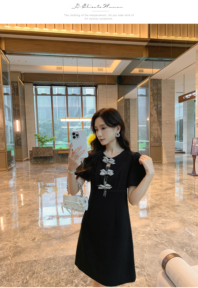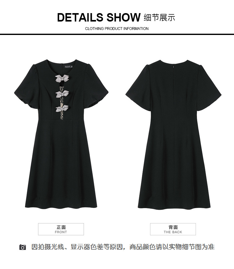 【清仓超15天不保价】[奢姿轻奢系列]大码女装2024夏季胖妹妹蝴蝶结钻饰设计时尚连衣裙8942826459