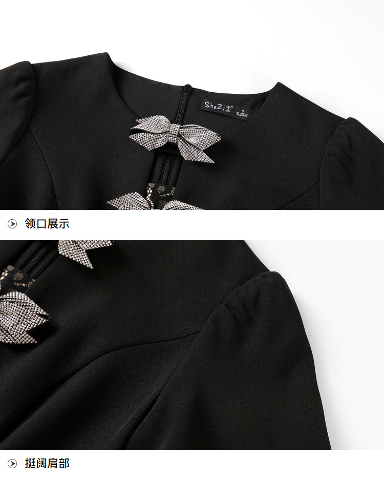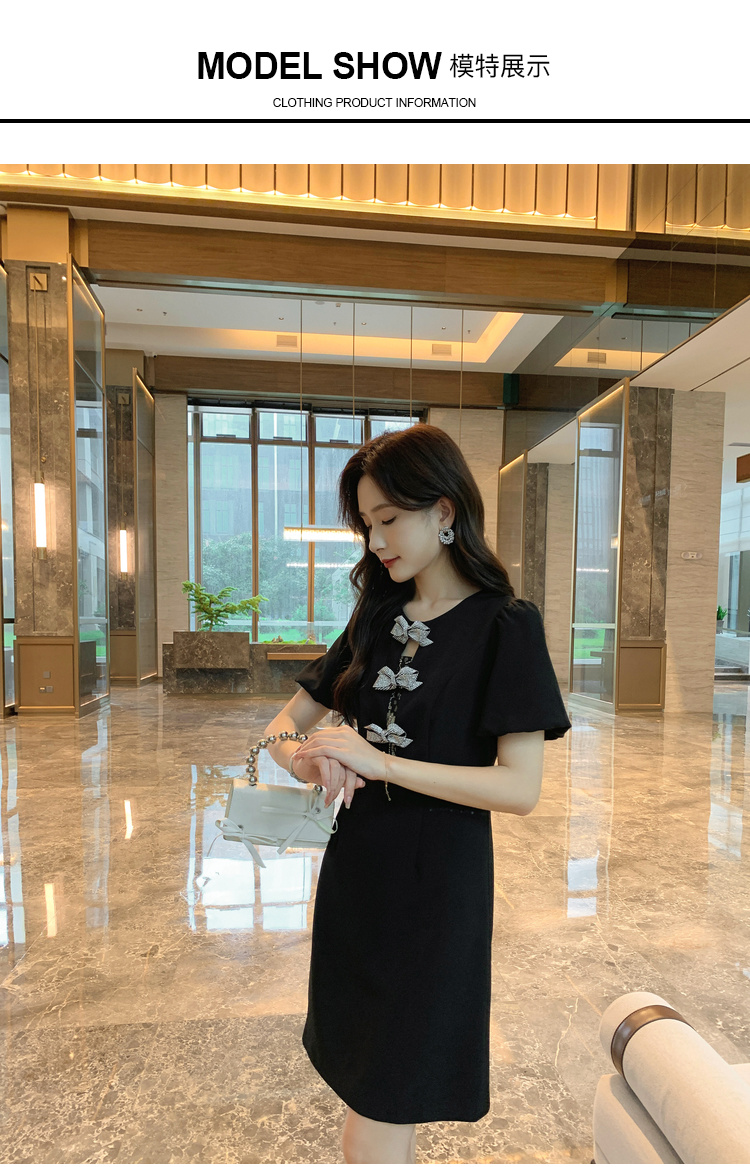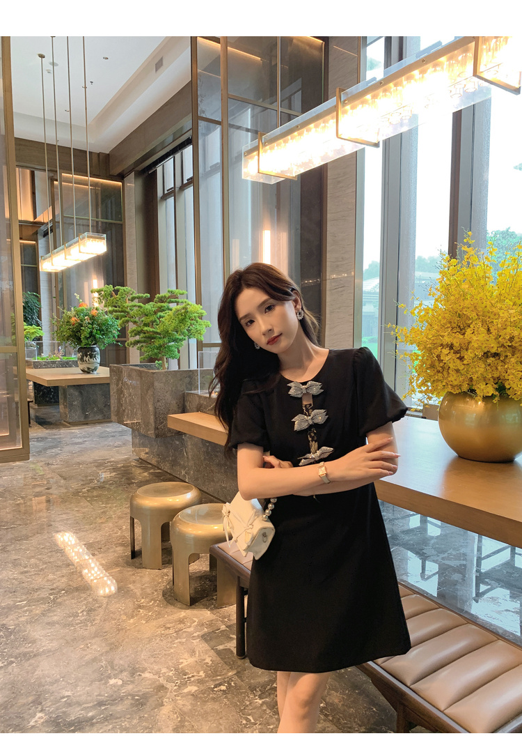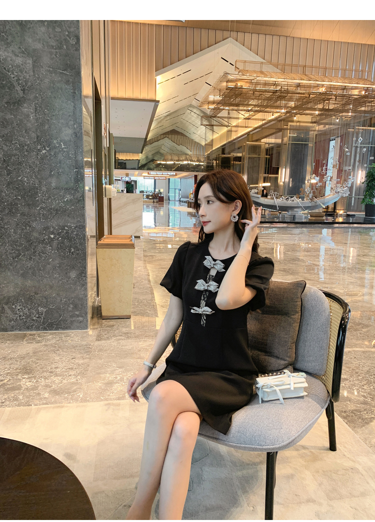 【清仓超15天不保价】[奢姿轻奢系列]大码女装2024夏季胖妹妹蝴蝶结钻饰设计时尚连衣裙8942826459