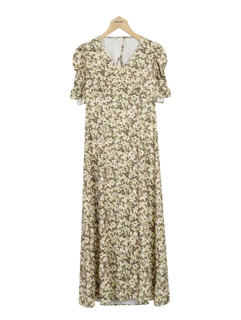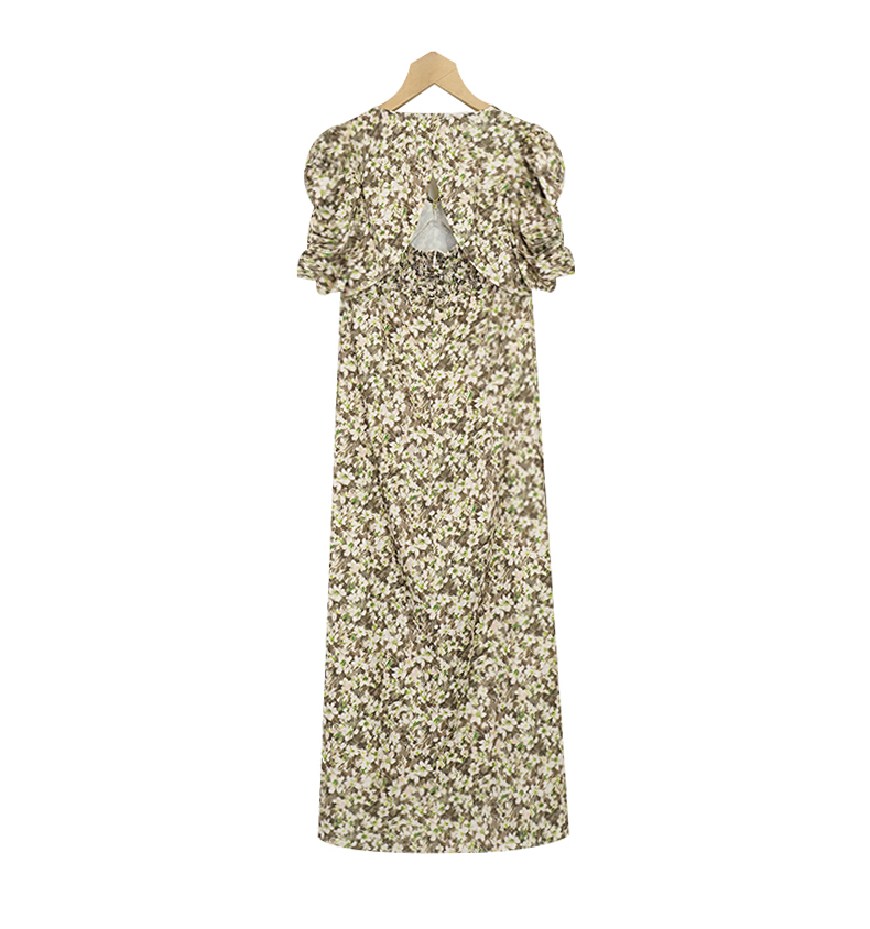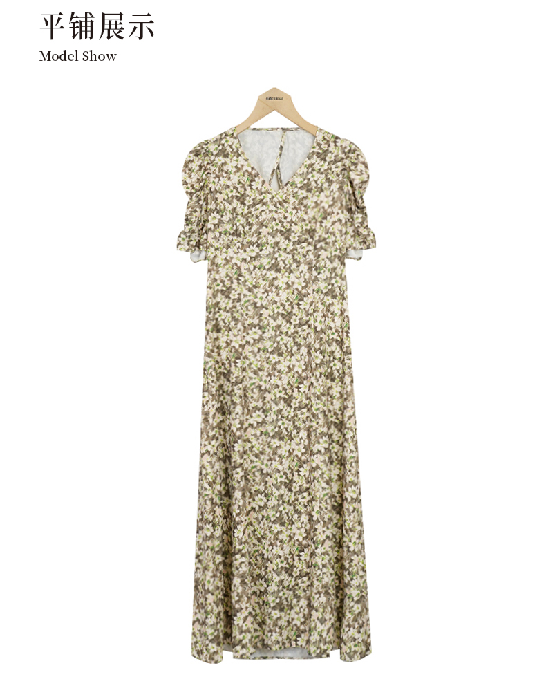 oldcolour夏季新款甜美小碎花泡泡袖茶歇连衣裙女P25101524