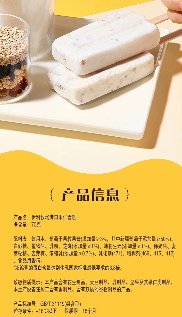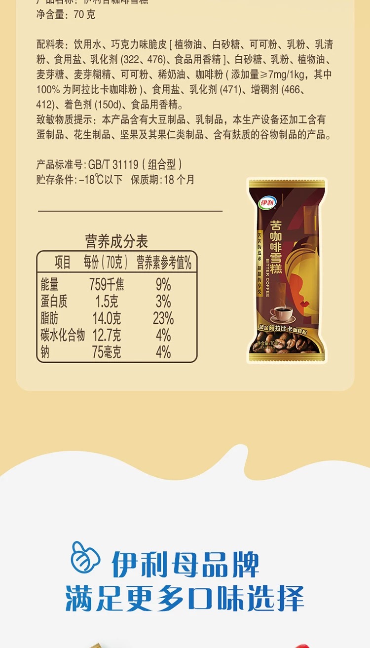 【产品规格】伊利冰工厂清爽蓝莓5支+冰工厂冰片蜜桃5支+玉米香5支+伊利心情棒冰5支+伊利苦咖啡5支+伊利牧场满口果仁5支+伊利芋见波波5支+伊利牧场邂逅莓好草莓厚乳3支+伊利云朵绵绵香草3支,共计41支