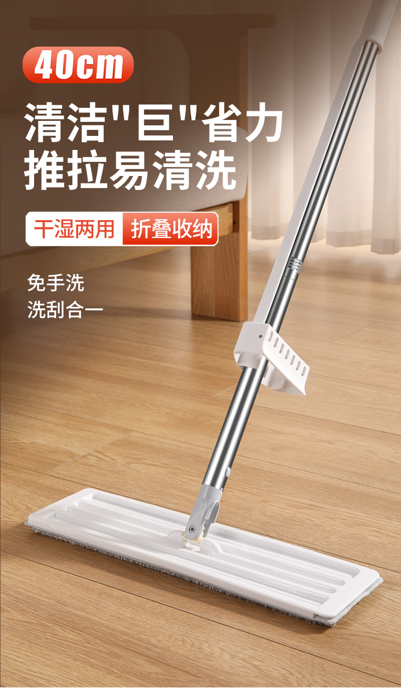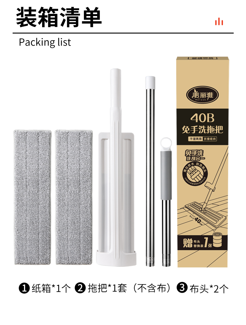 【批发】美丽雅40cm推水拖把不锈钢杆含2张拖布 1套