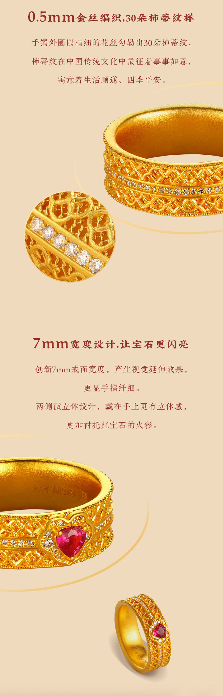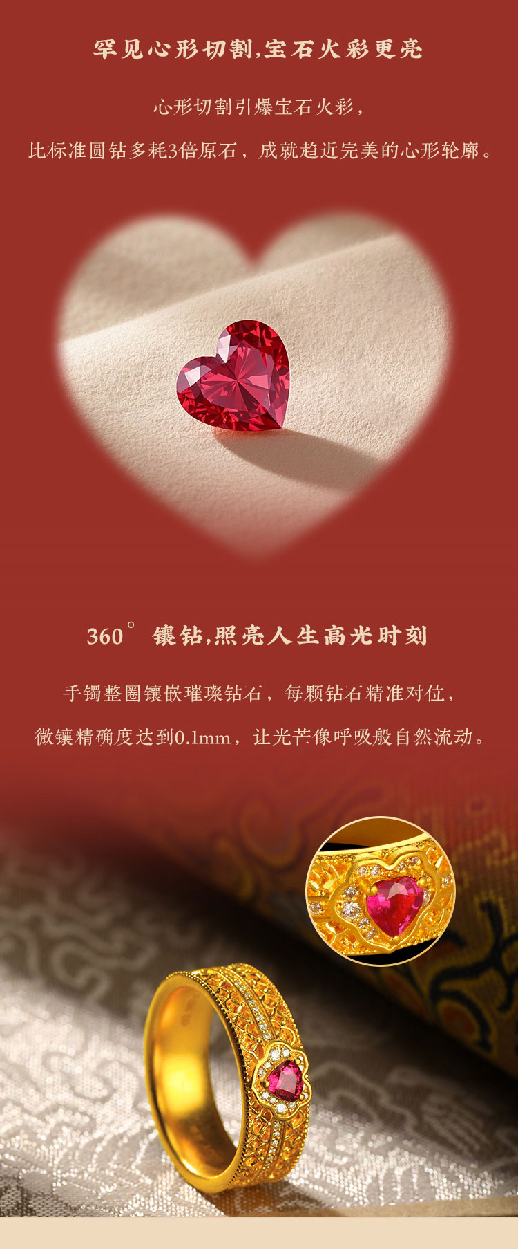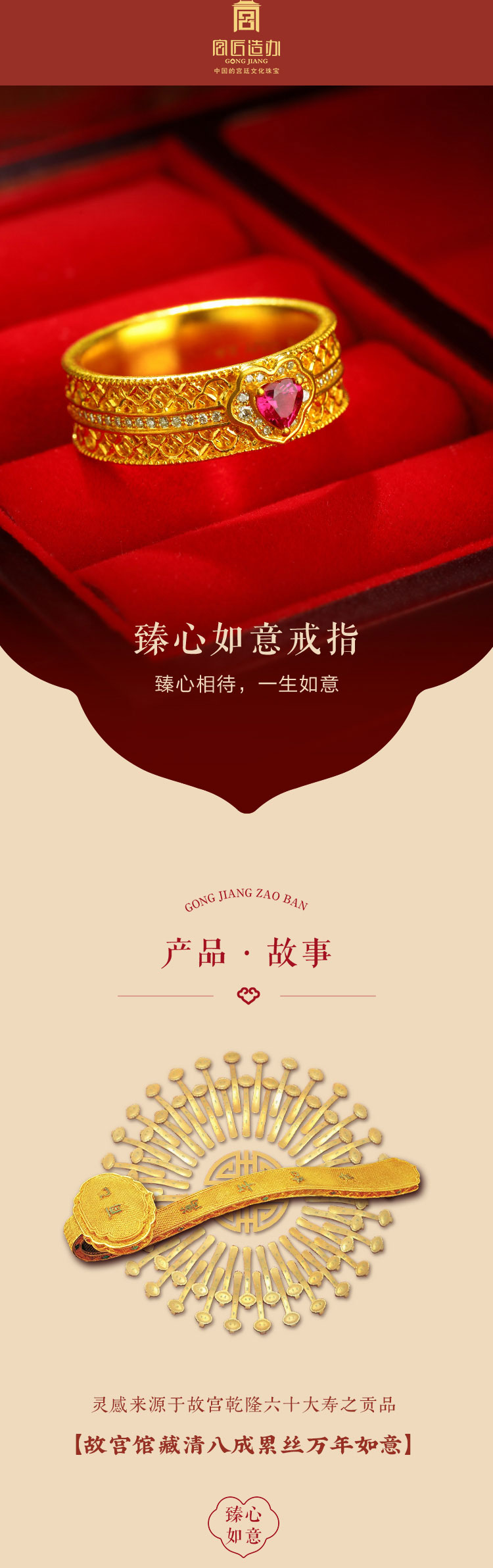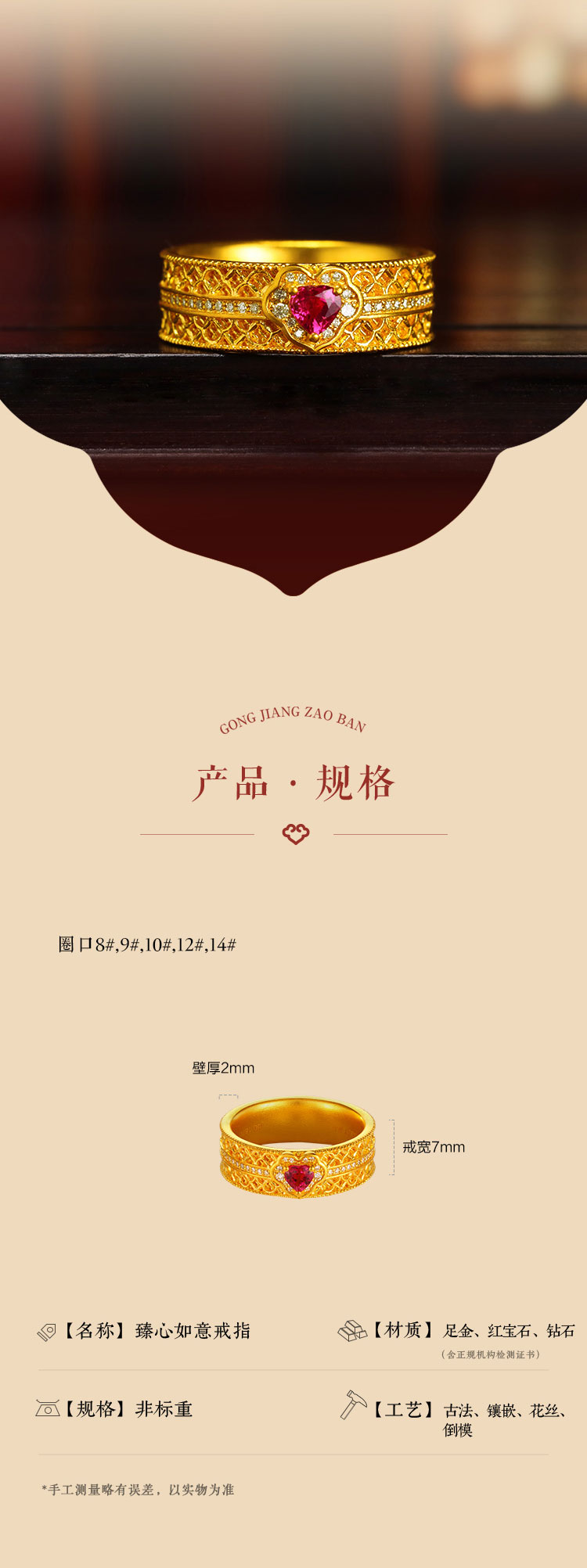 宫匠造办 臻心如意戒指 黄金镶钻红宝石