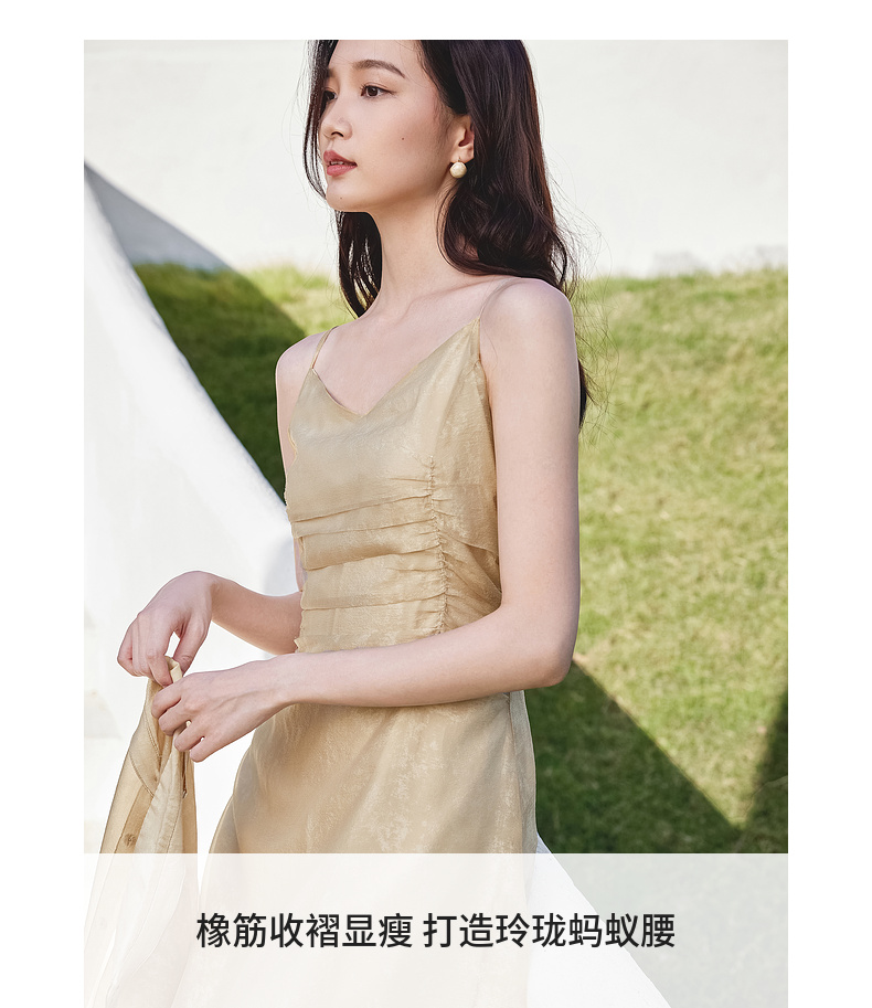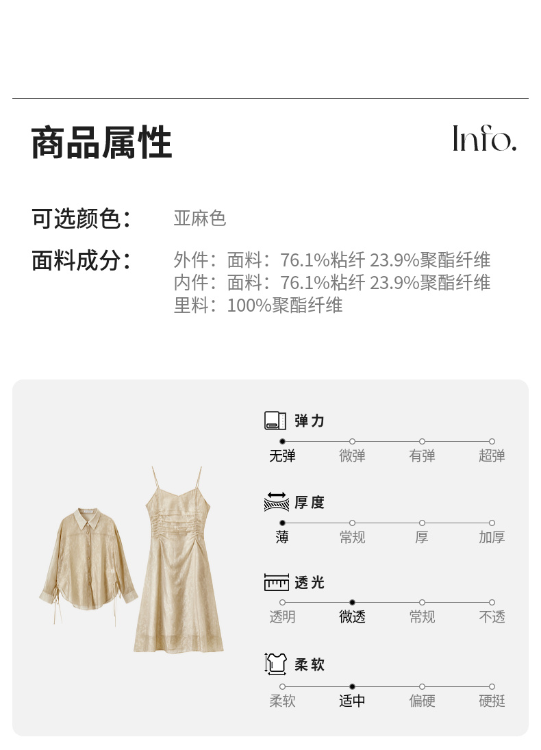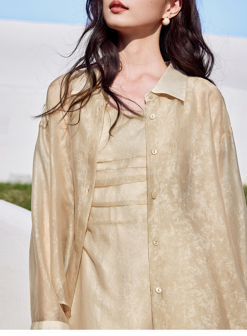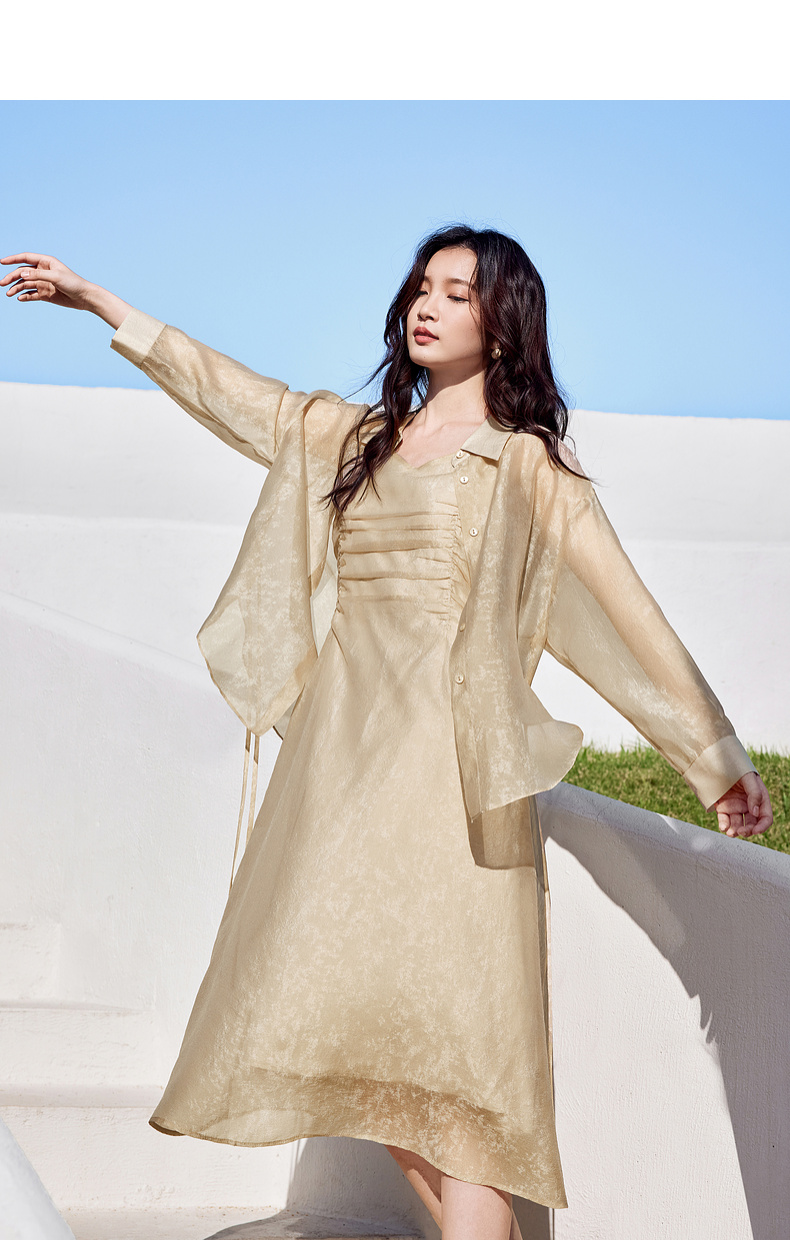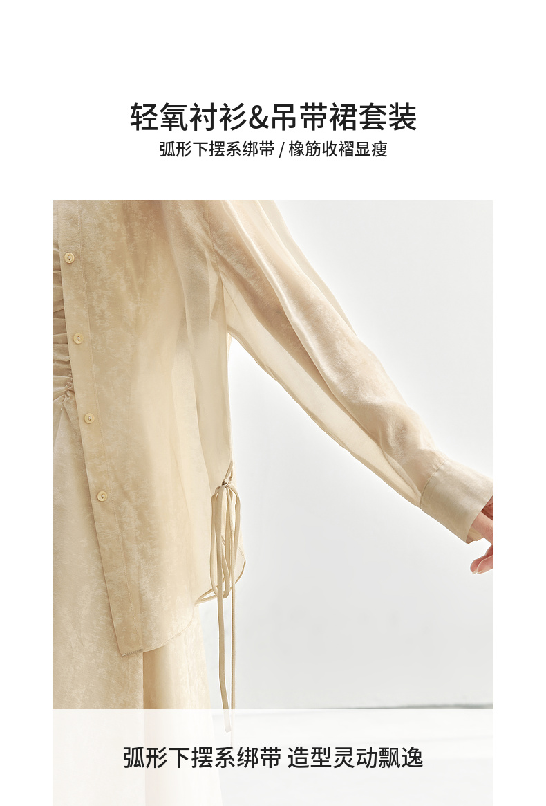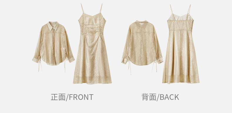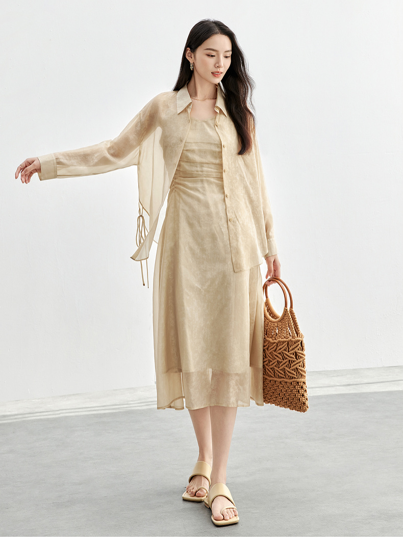 【内购】优雅度假风轻薄双色花纹系绑带衬衫&橡筋收褶收腰吊带连衣裙套装-151Z57885