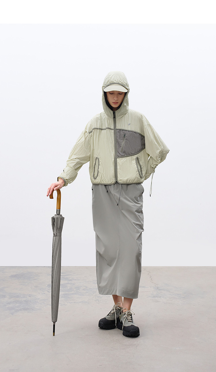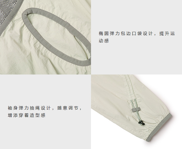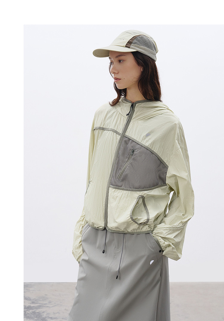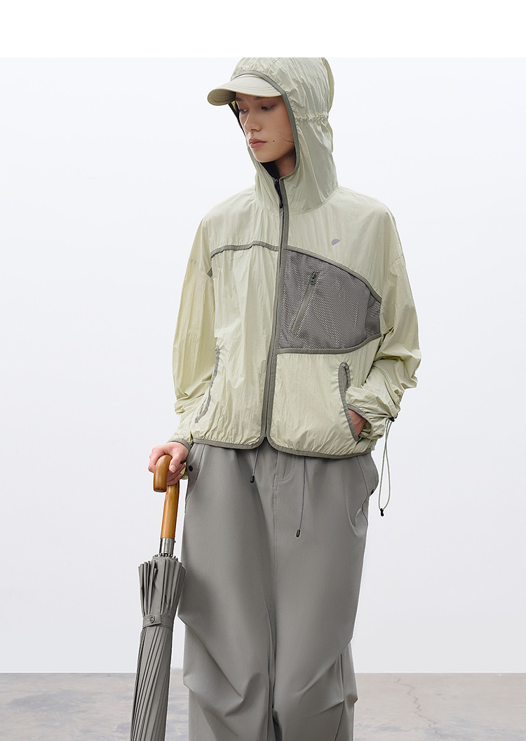 半圆/C65110016/连帽网眼拼接口袋防晒外套
