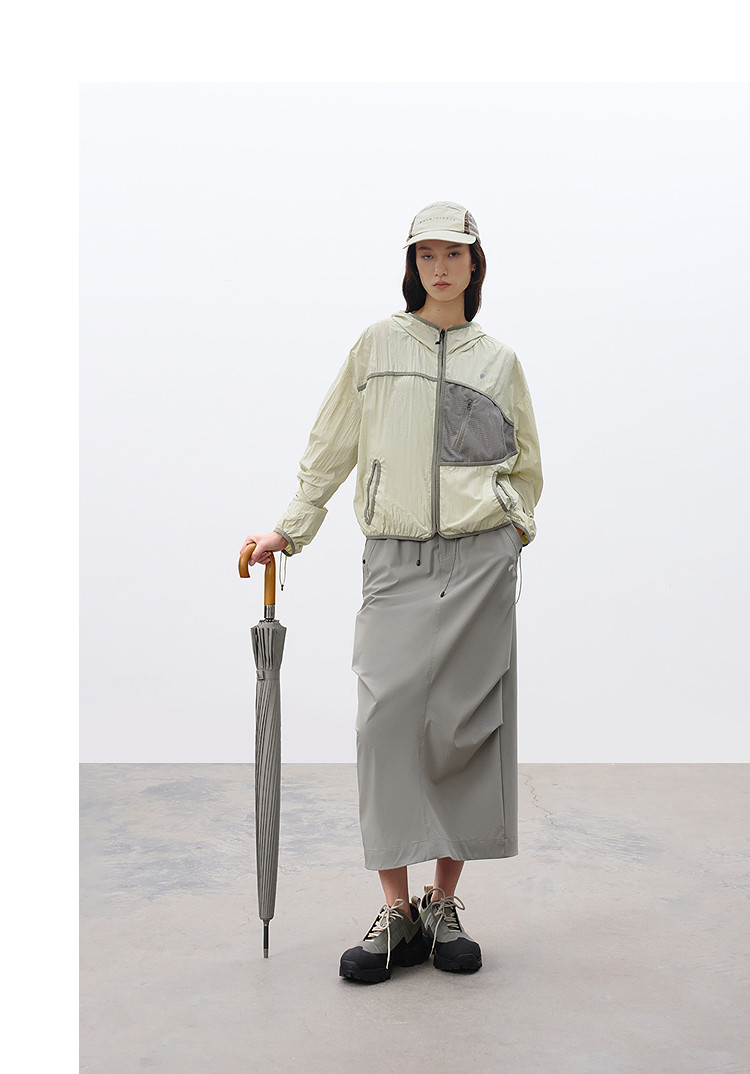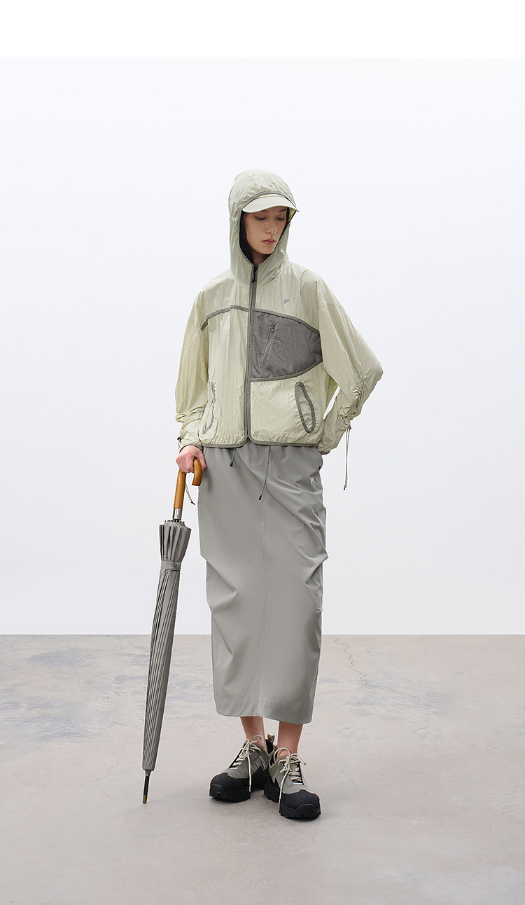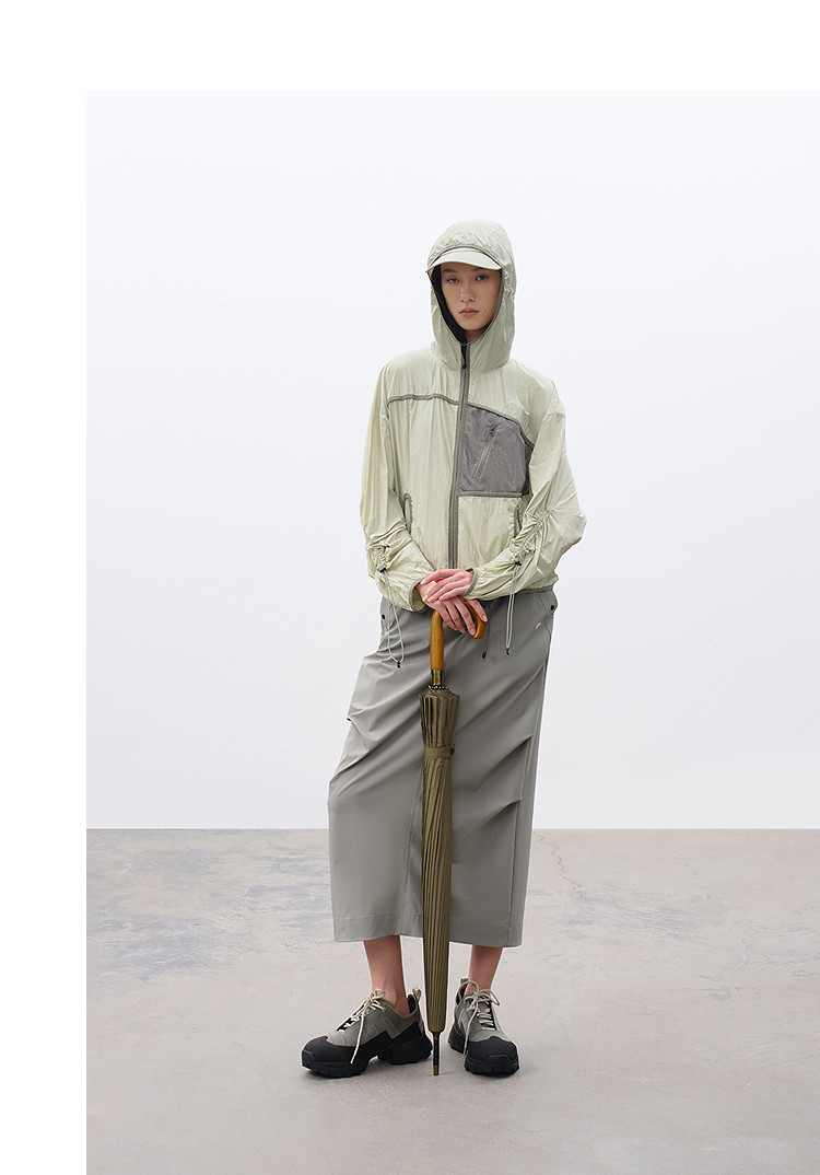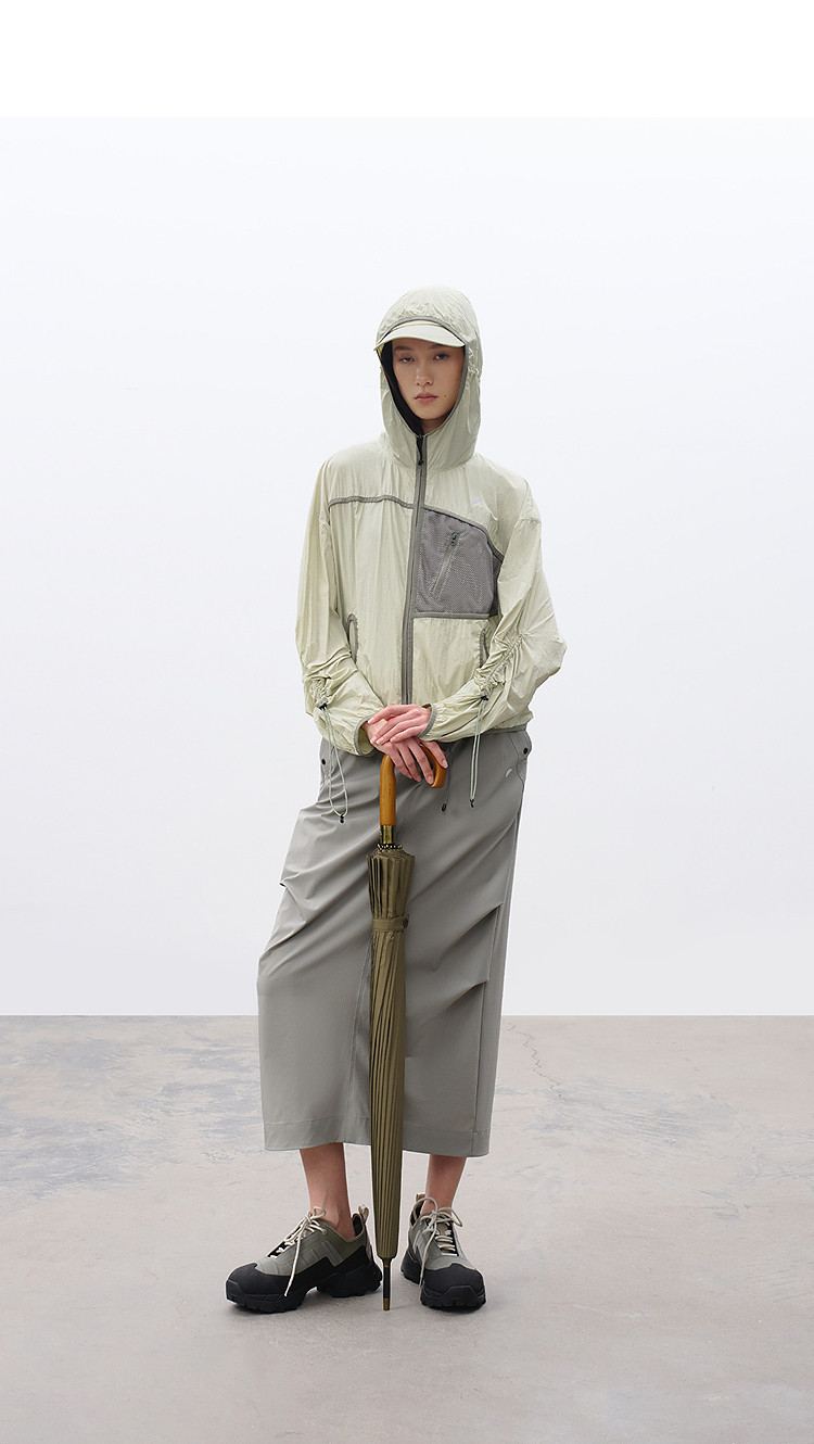 半圆/C65110016/连帽网眼拼接口袋防晒外套