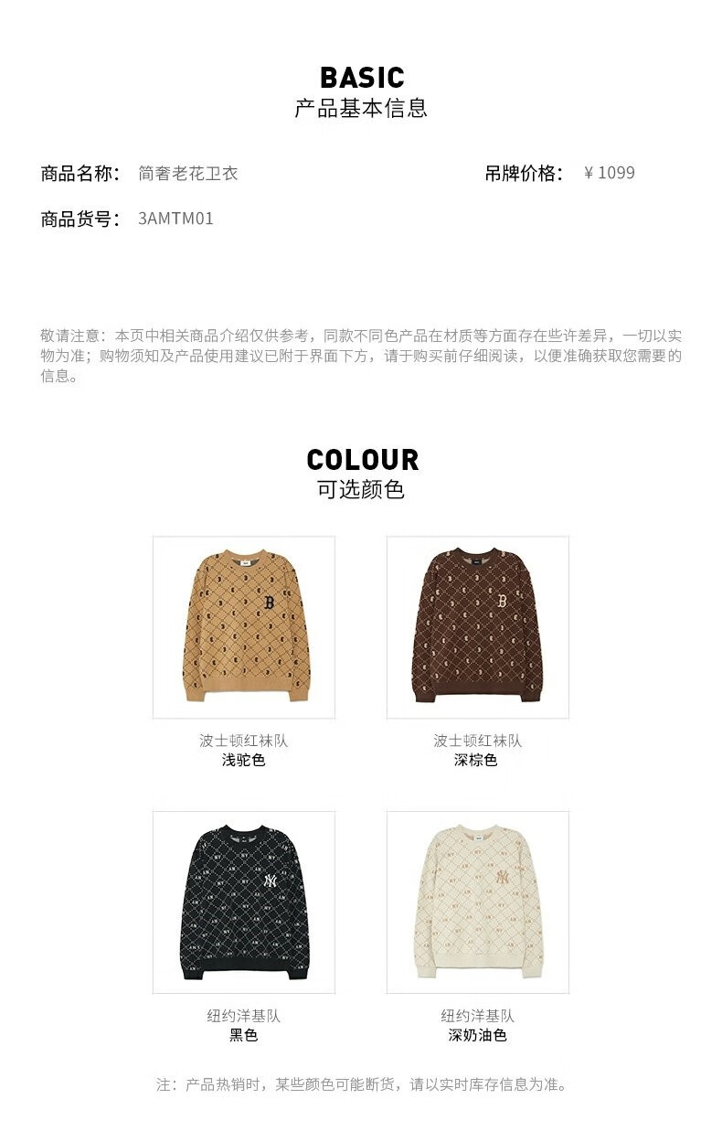 MLB男女同款情侣钻石老花时尚圆领卫衣【3AMTM0134】 XAMN