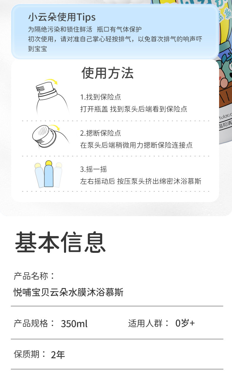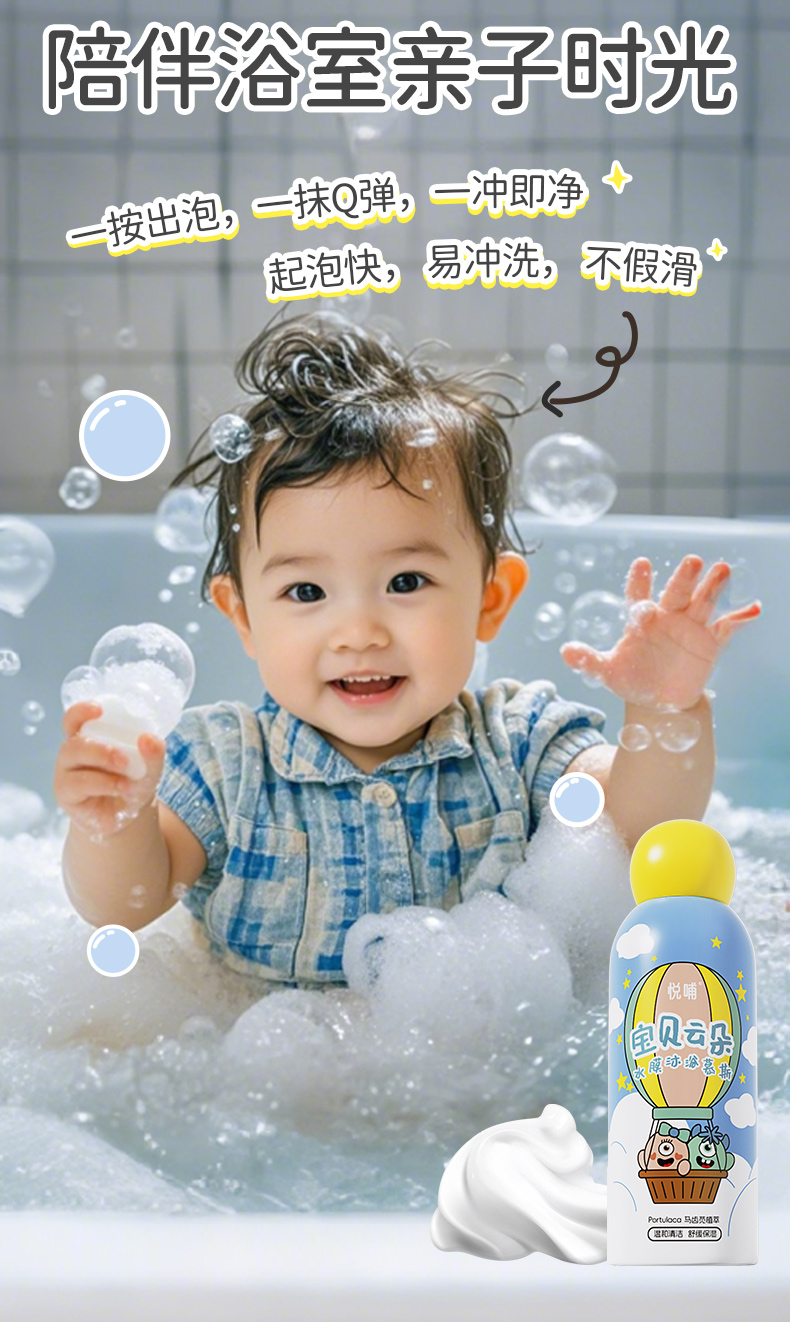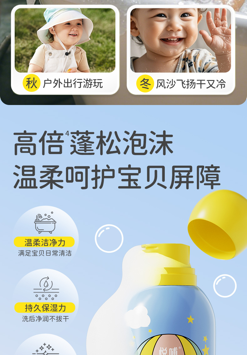 【专享】悦哺婴幼儿云朵沐浴慕斯益生元舒缓沐浴露润肤儿童保湿沐浴泡泡