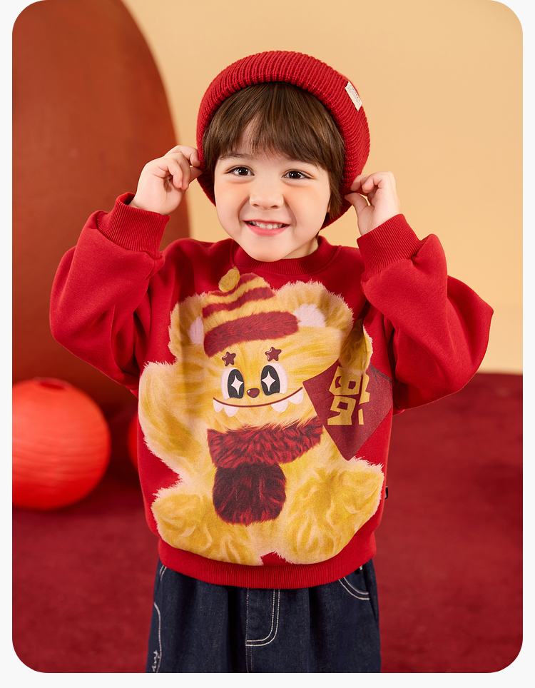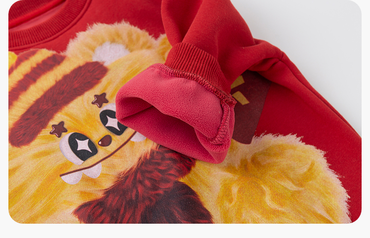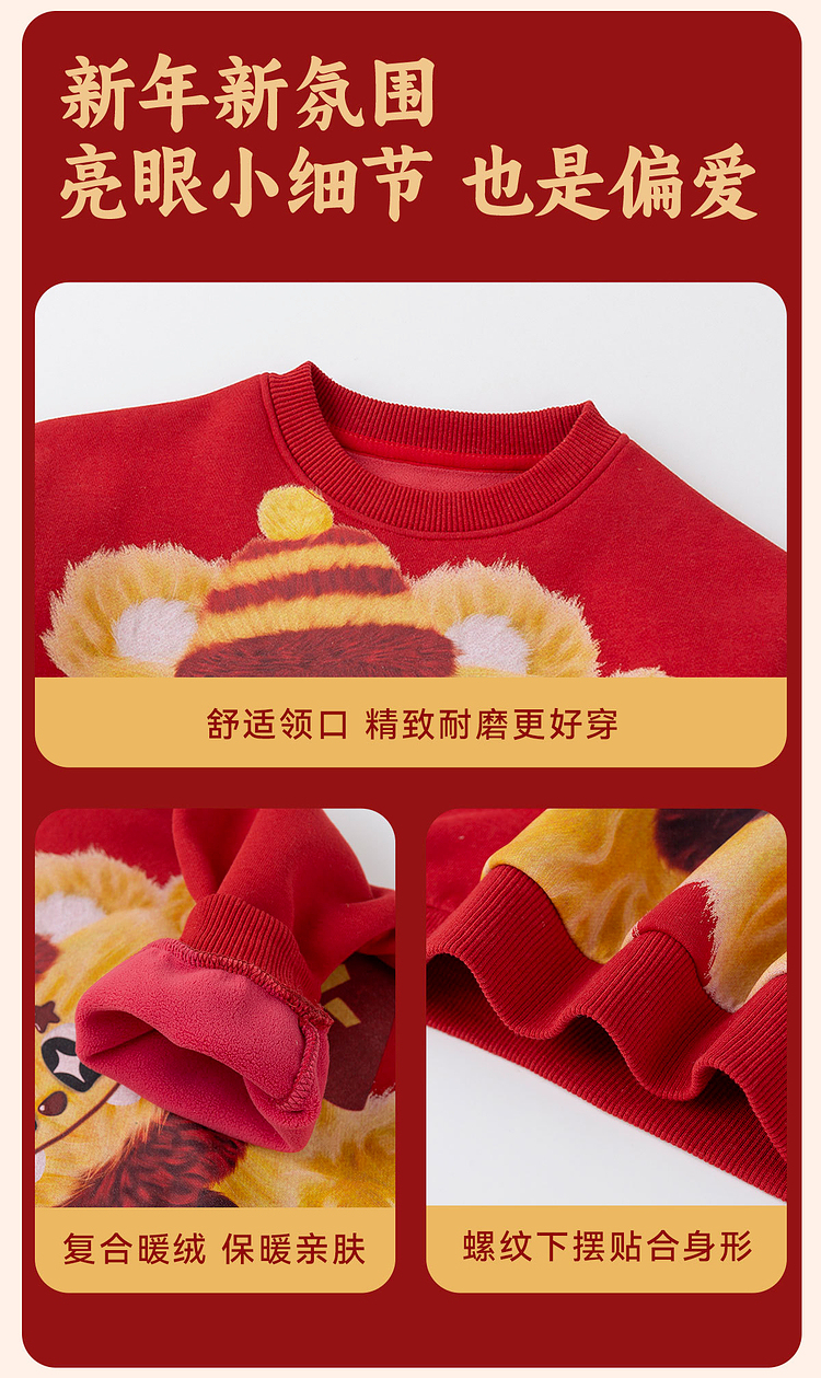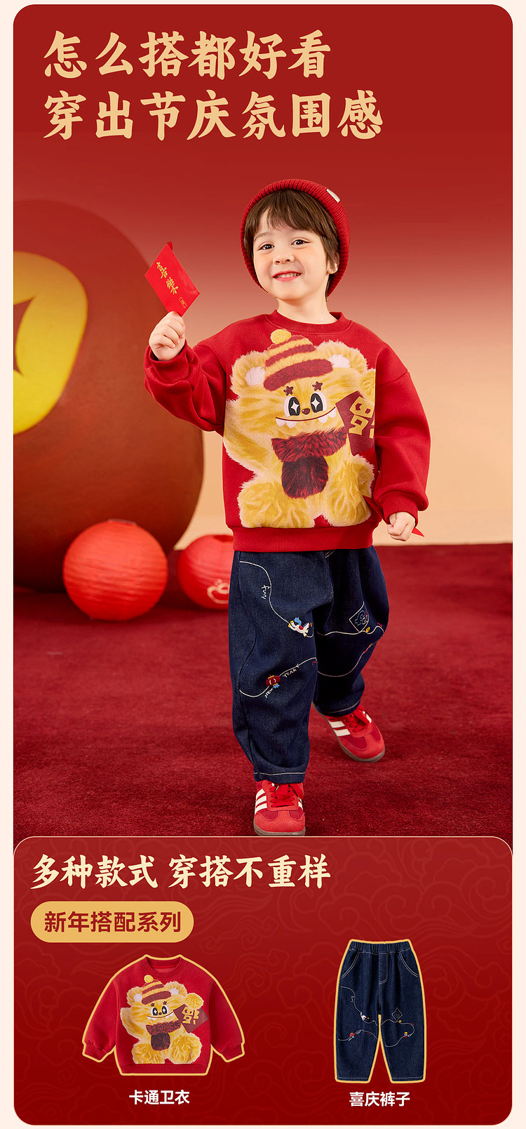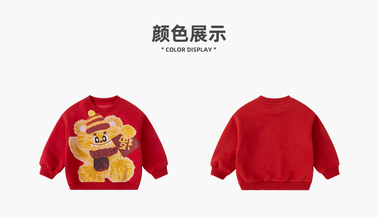 嘟嘟家男童卫衣宝宝新款拜年服儿童加绒加厚上衣女童红色喜庆衣服