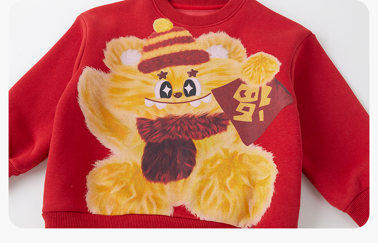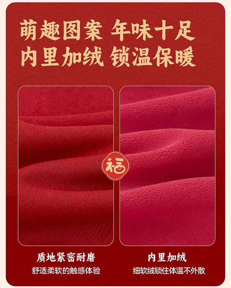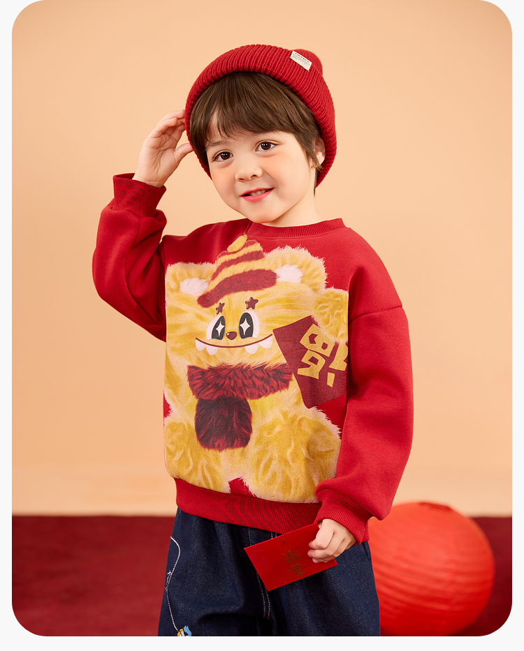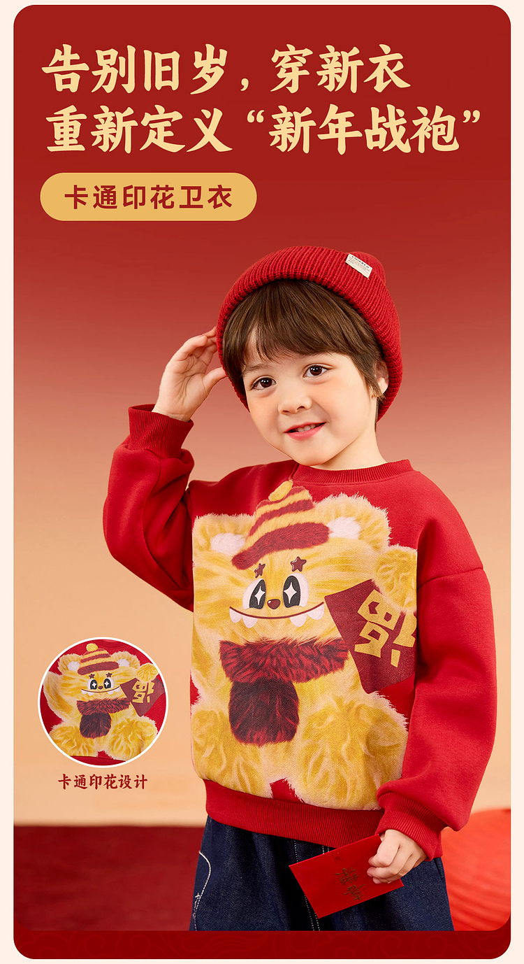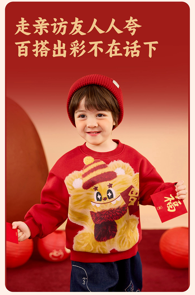嘟嘟家男童卫衣宝宝新款拜年服儿童加绒加厚上衣女童红色喜庆衣服
