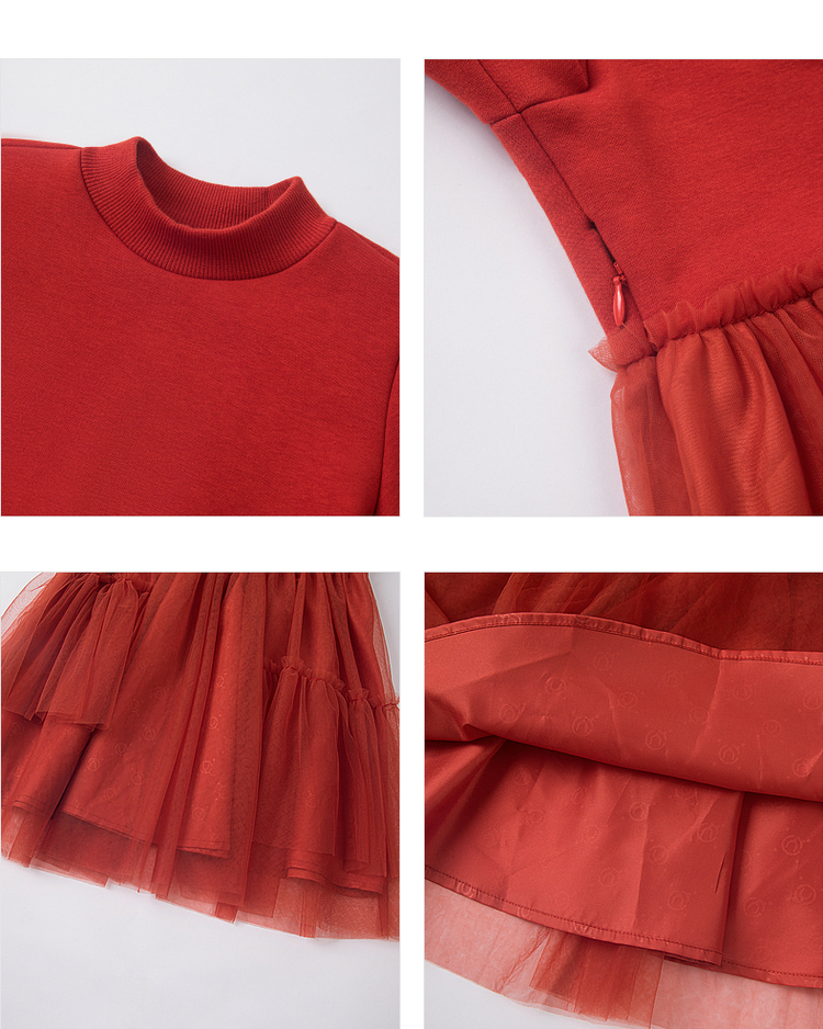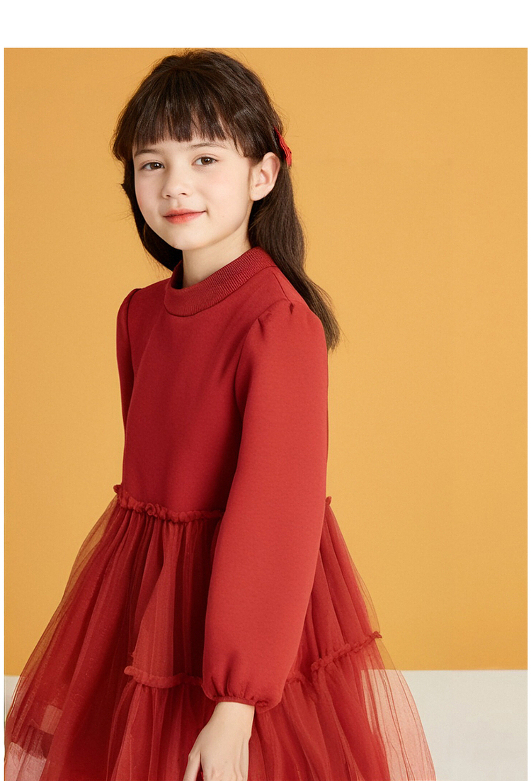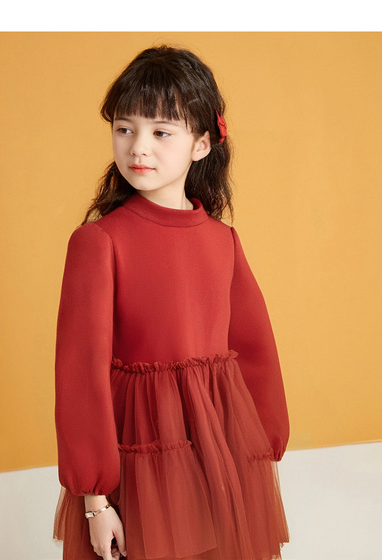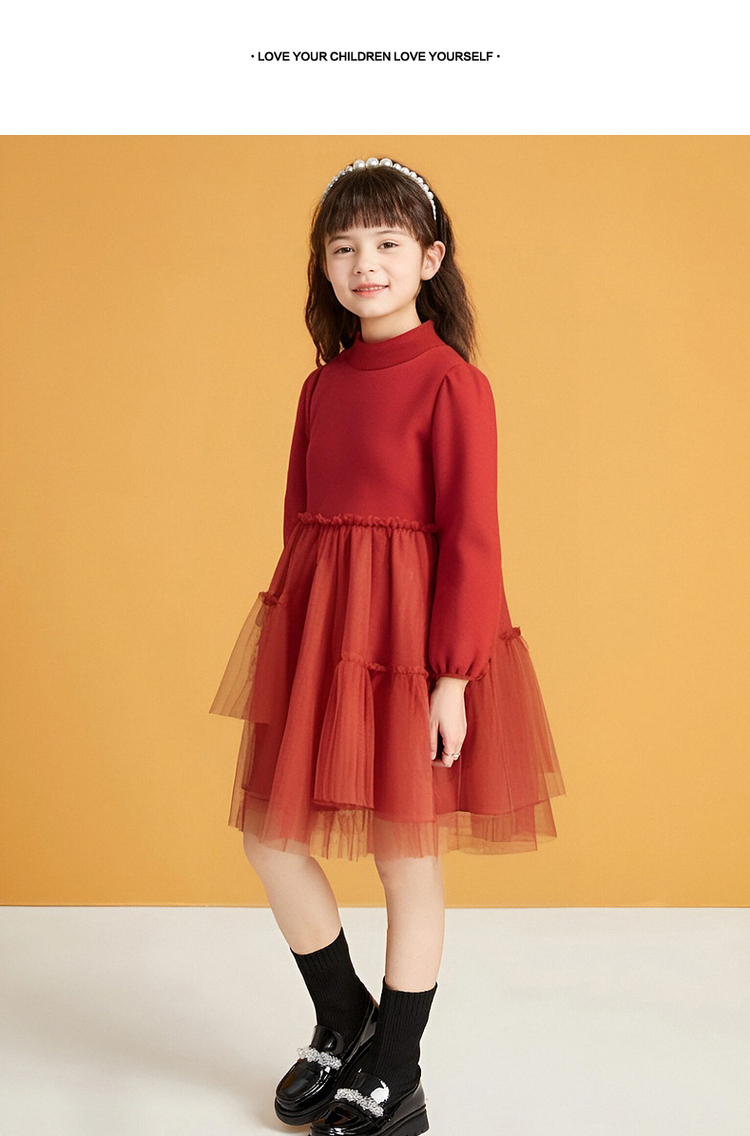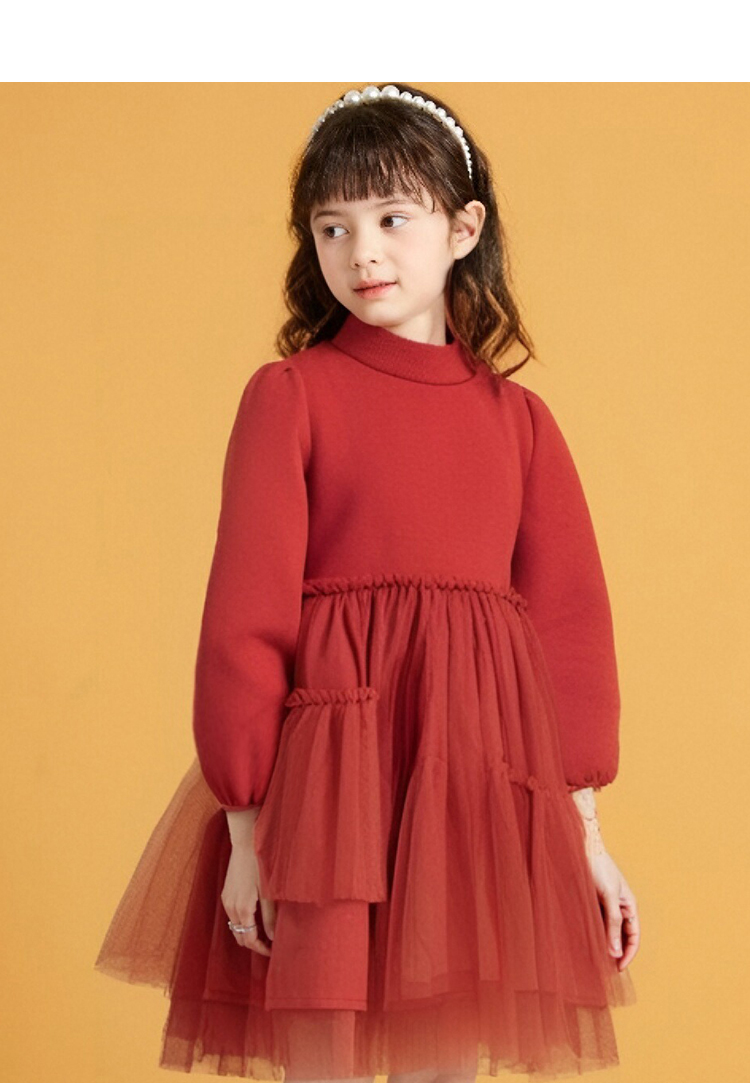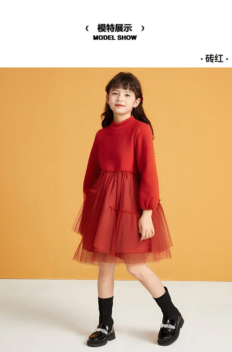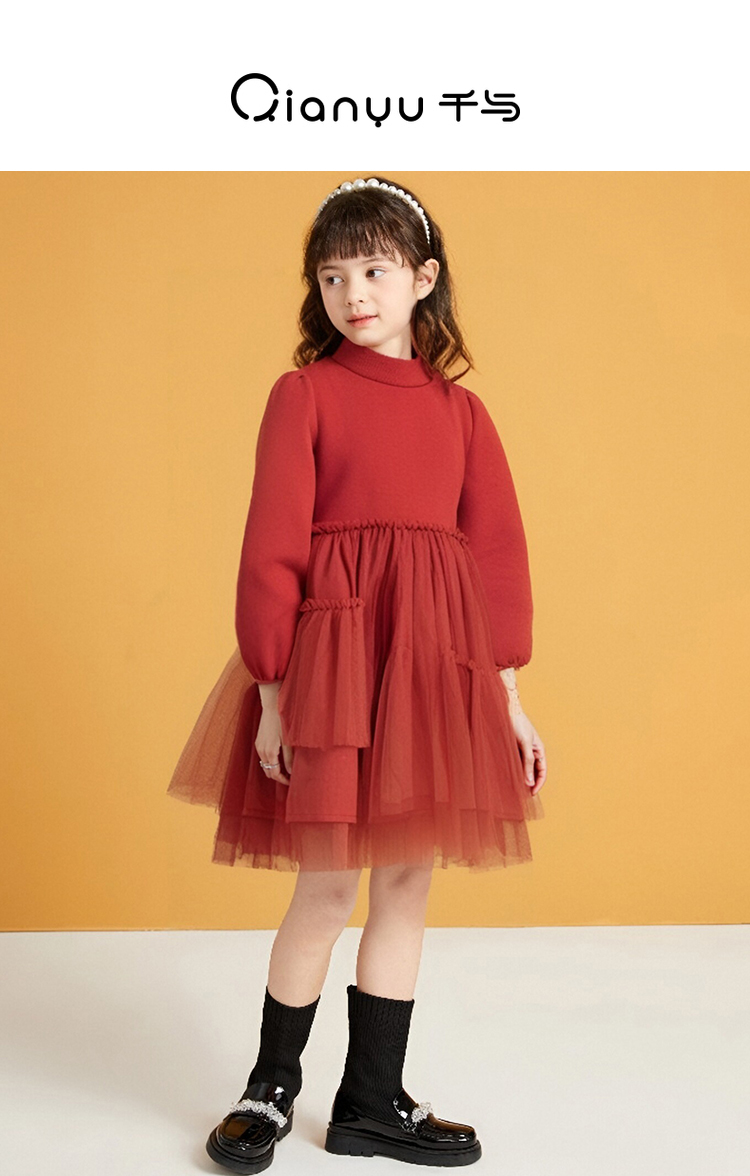 笛莎千与女童连衣裙2024冬季新款女童甜美半高领加绒连衣裙