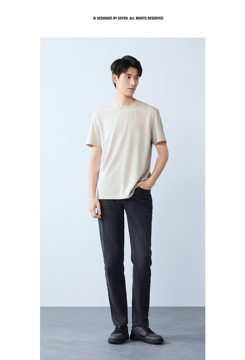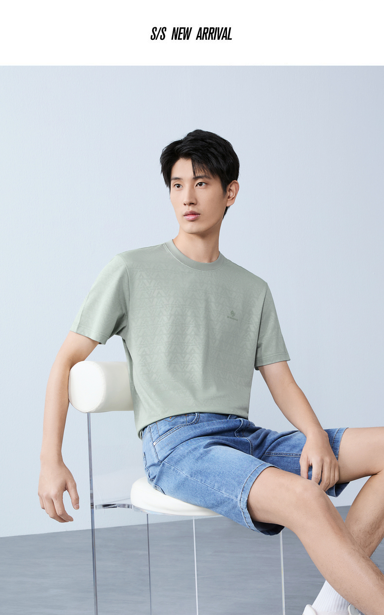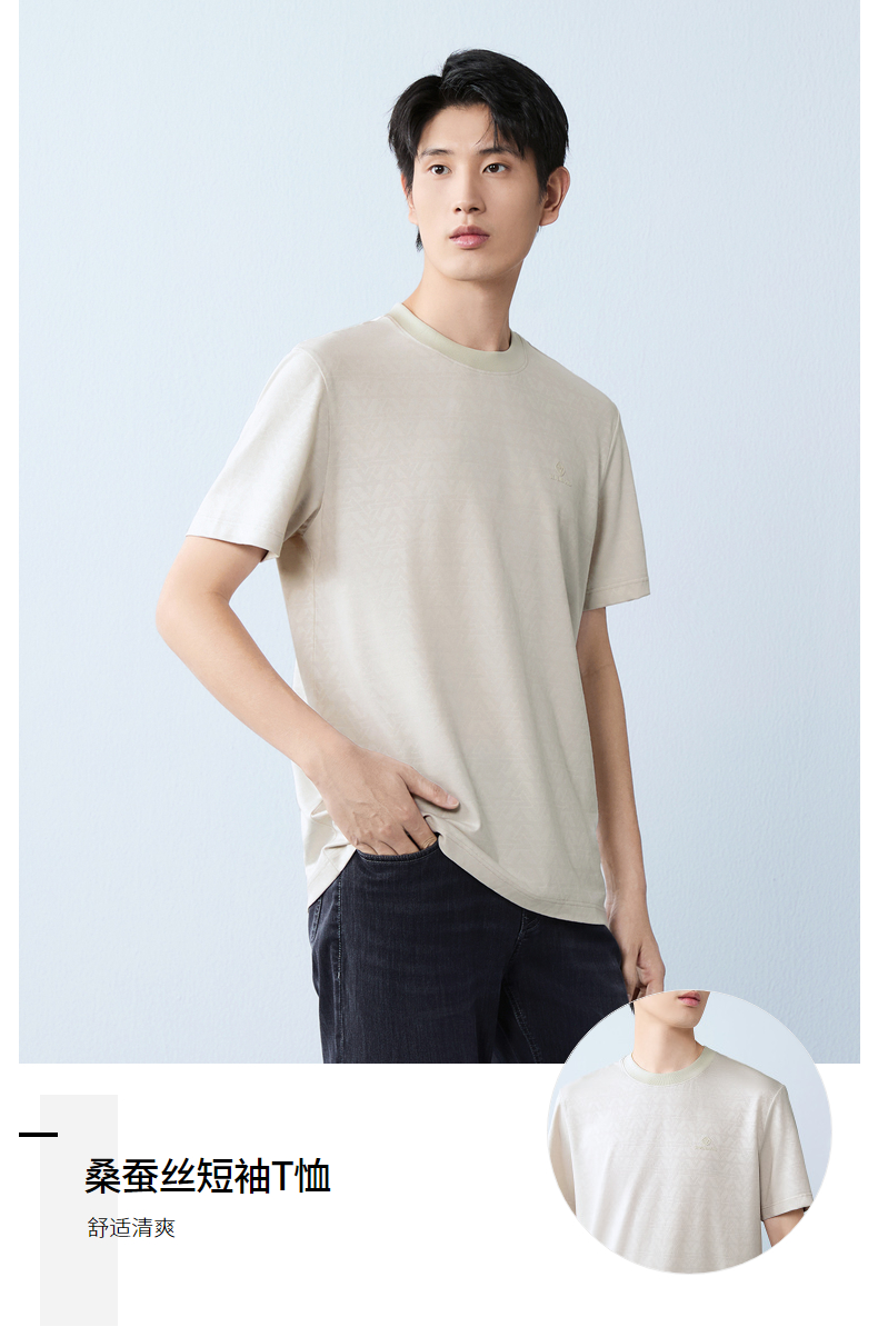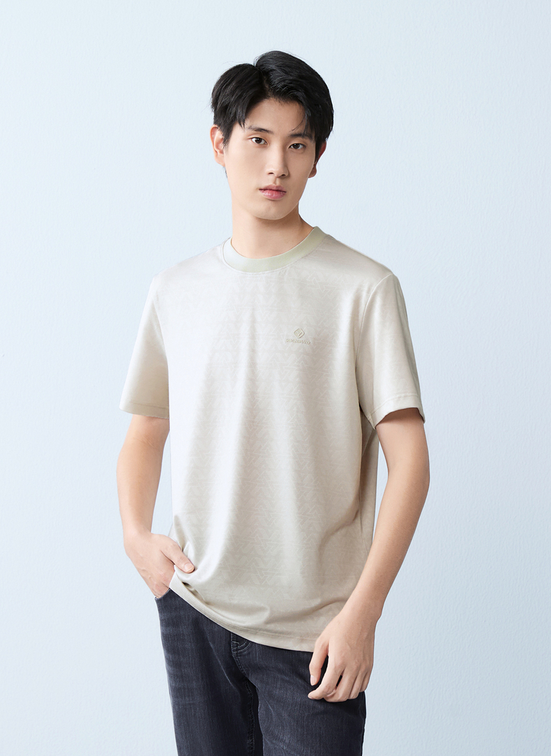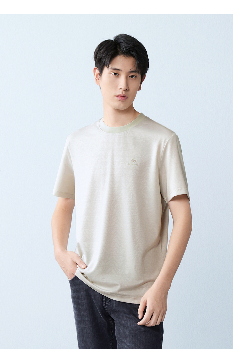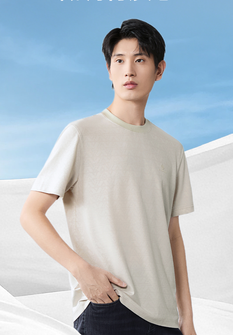 【提花T恤】柒牌男士2026夏上新短袖T恤休闲商务圆领凉感舒适上衣 130T71860