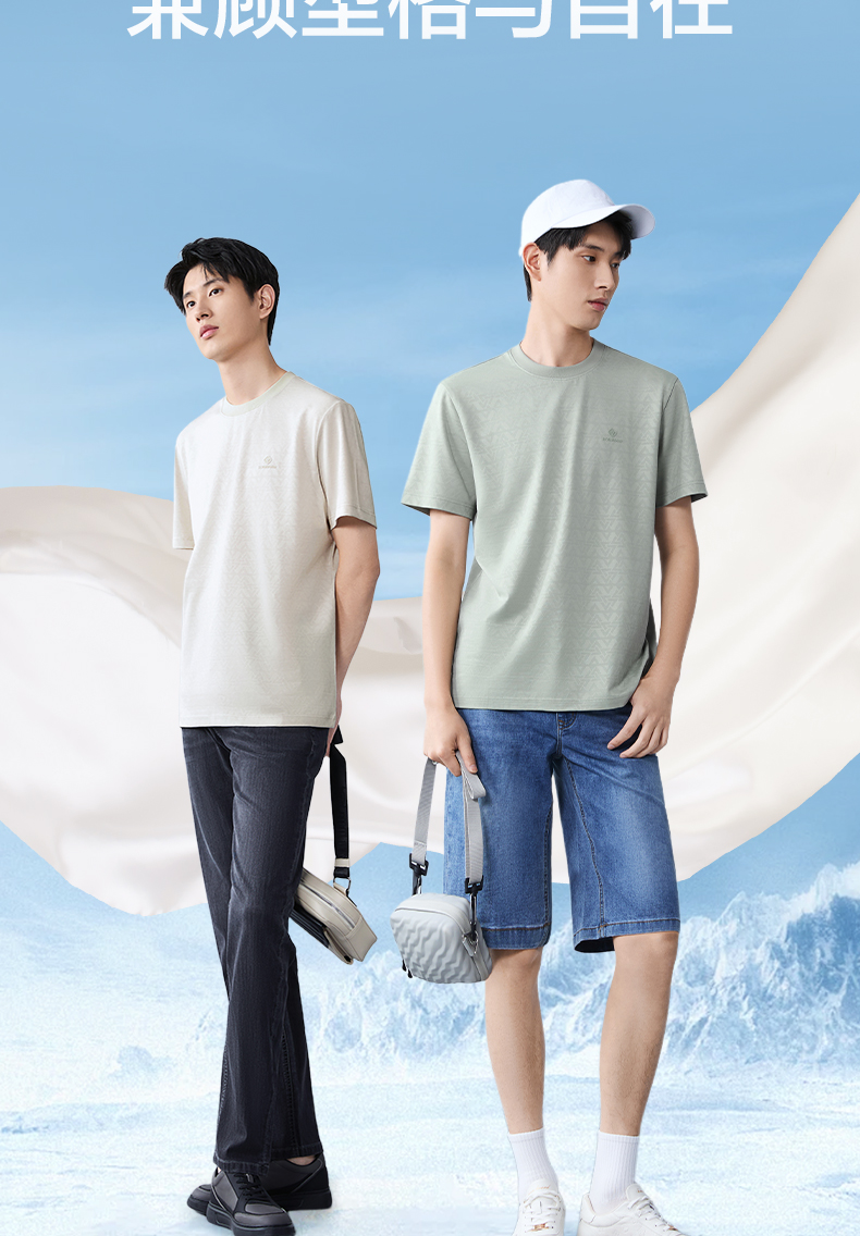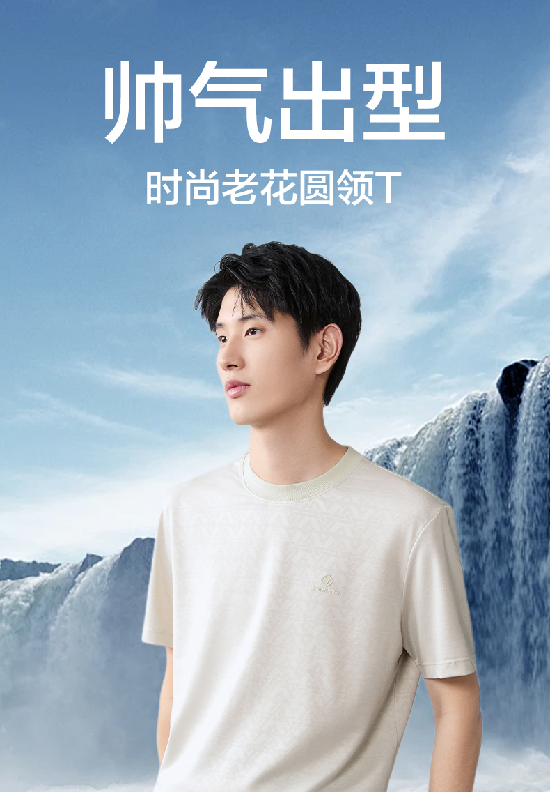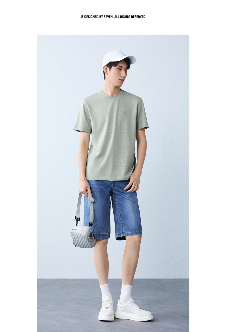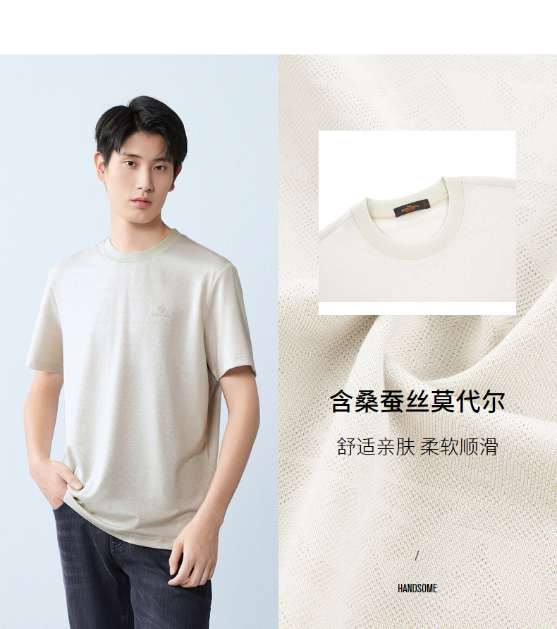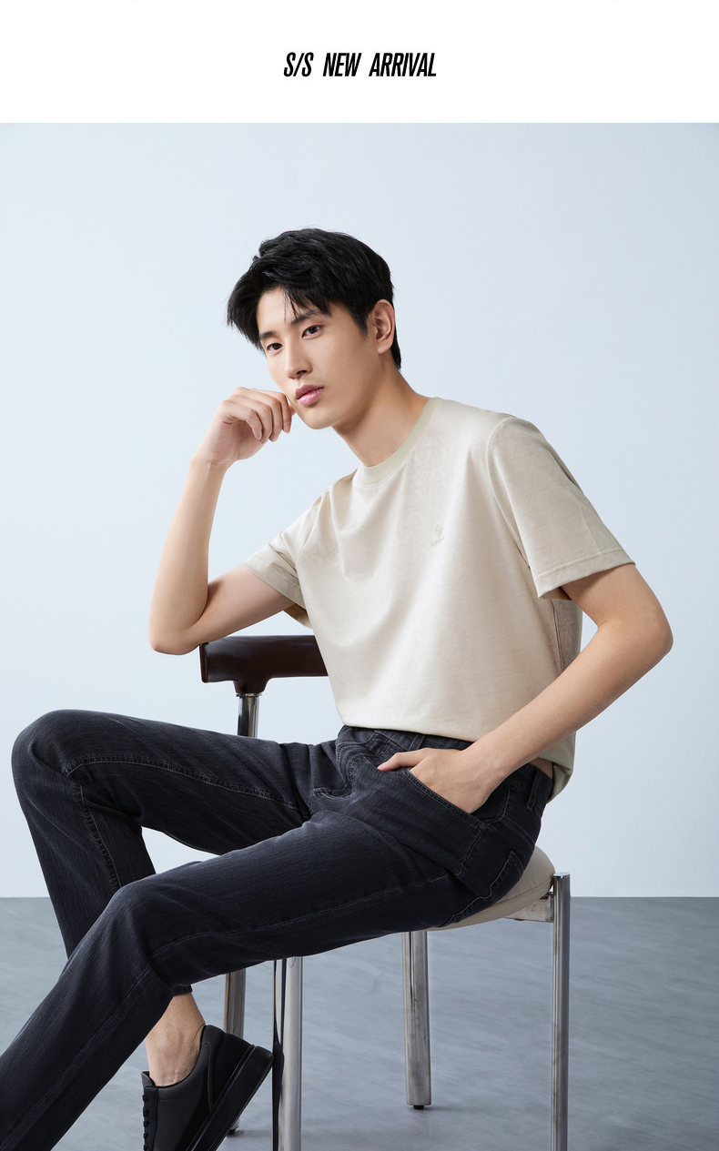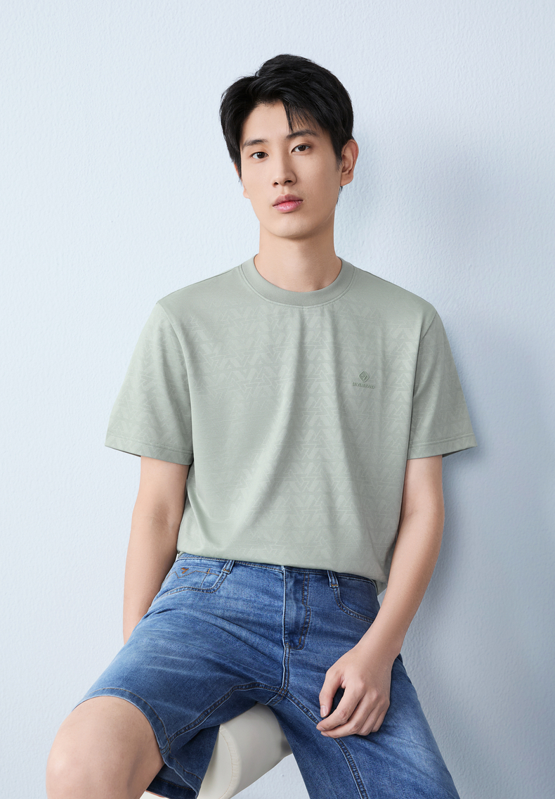【提花T恤】柒牌男士2026夏上新短袖T恤休闲商务圆领凉感舒适上衣 130T71860