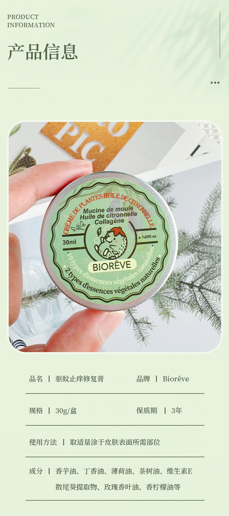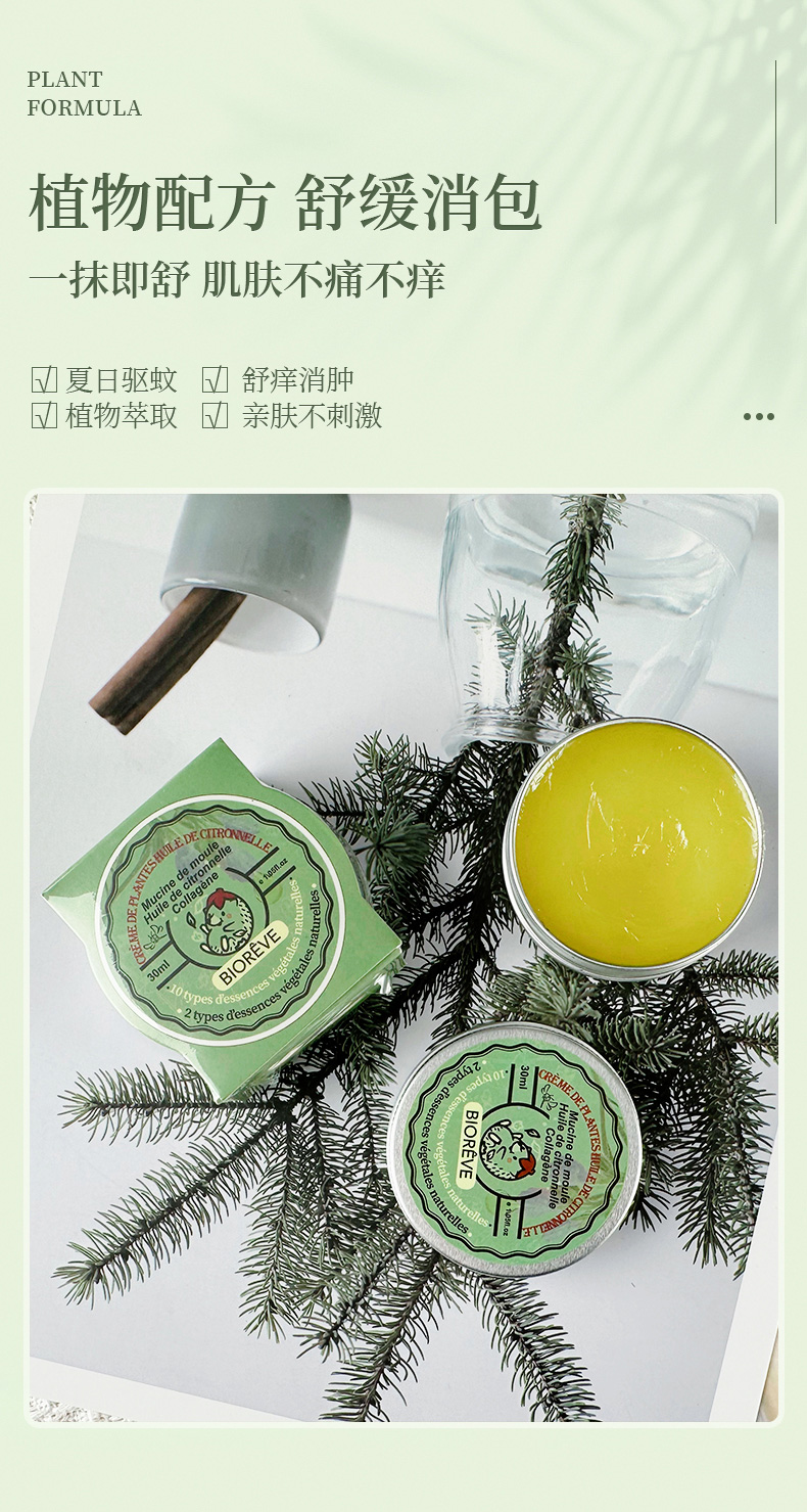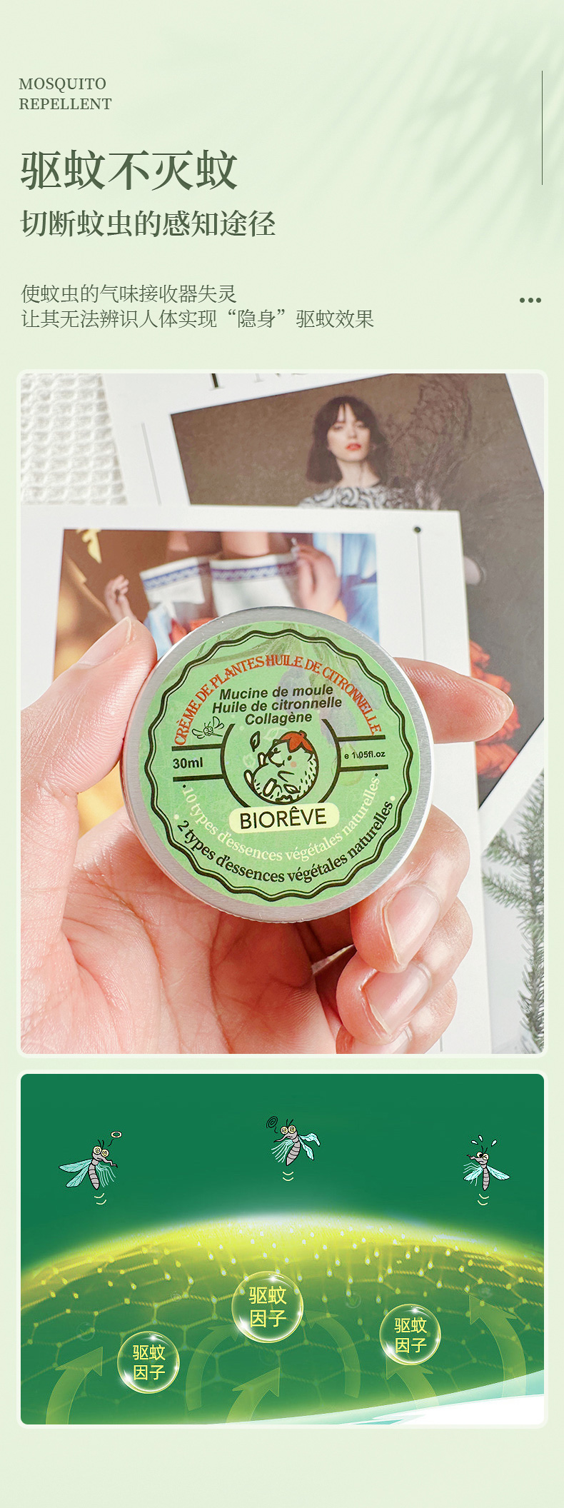 【买2送1】法国原装进口Biorêve驱蚊止痒修复膏 天然植萃配方 清凉止痒提神 母婴可用