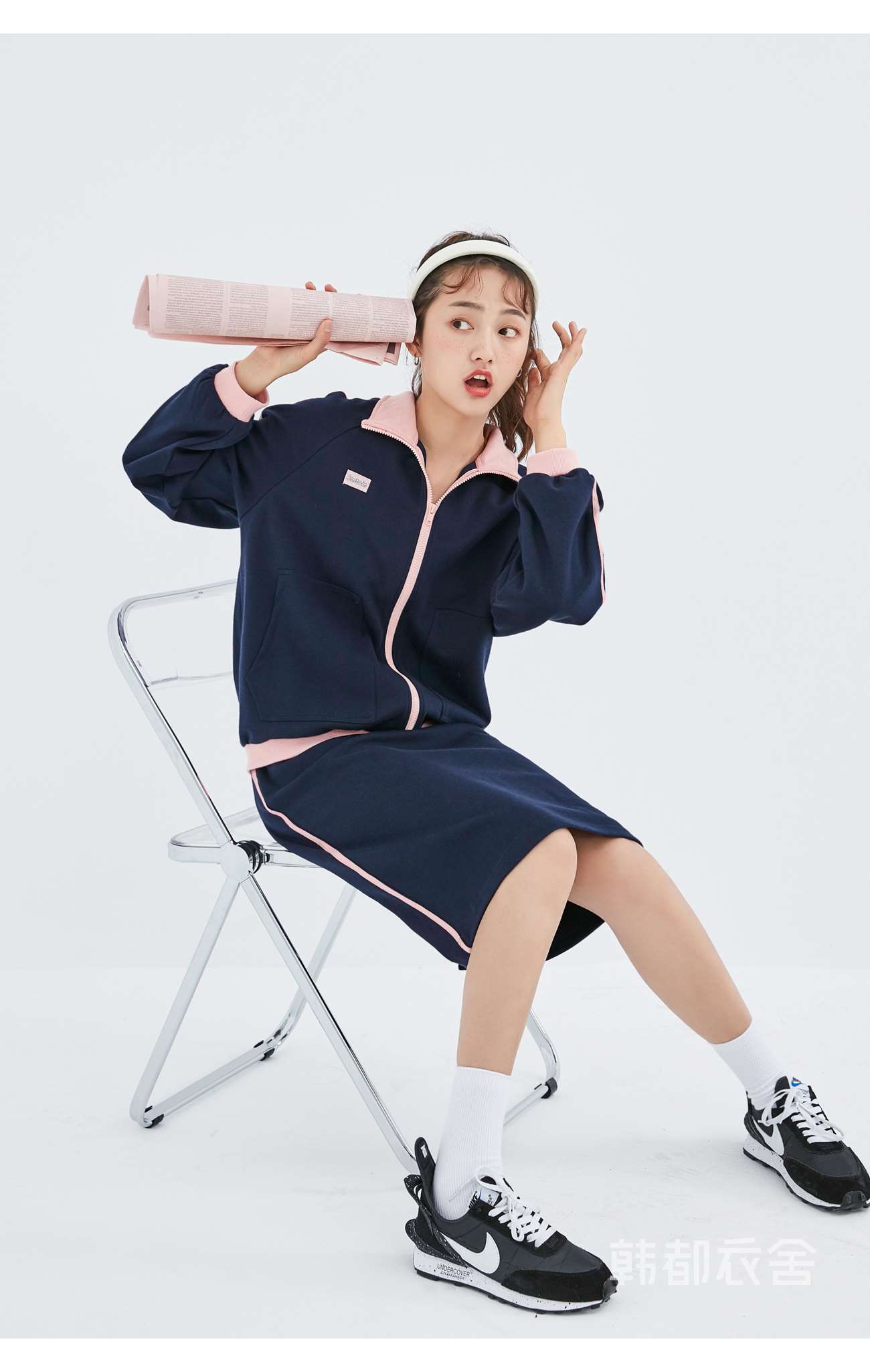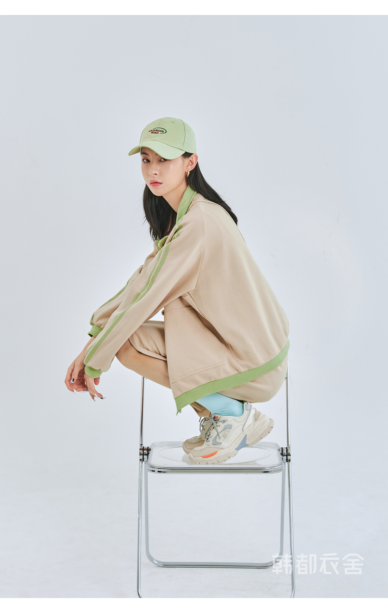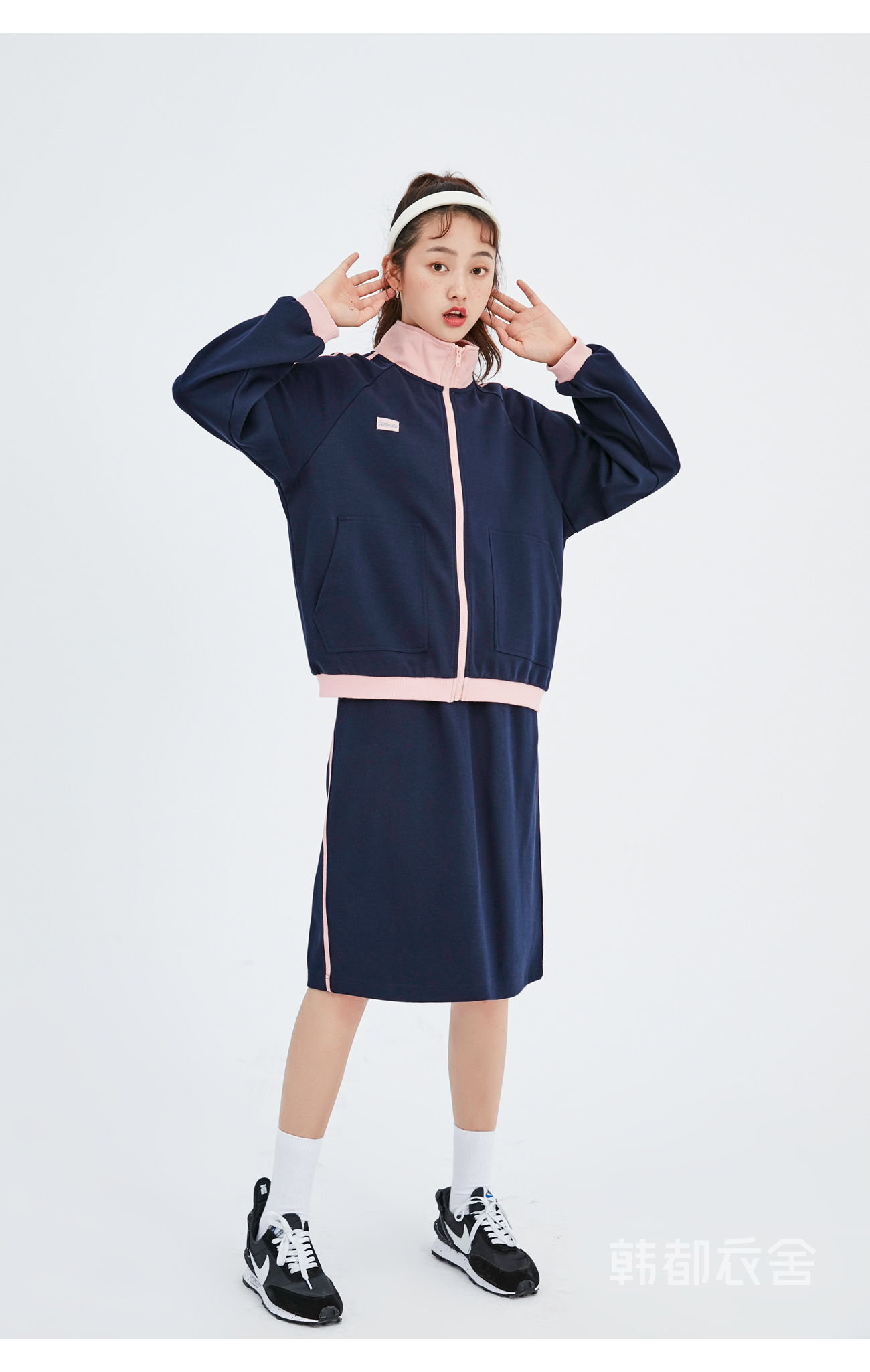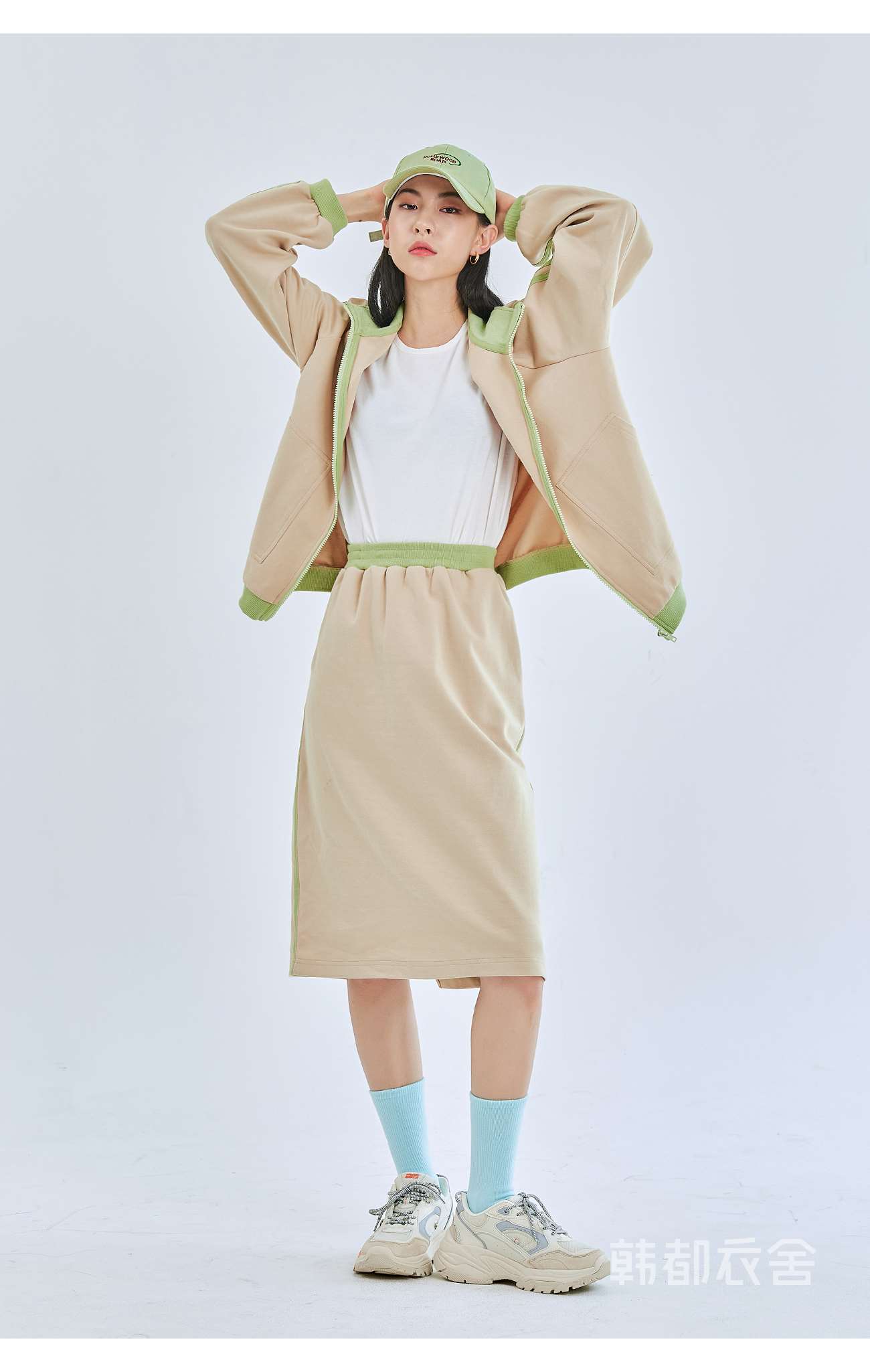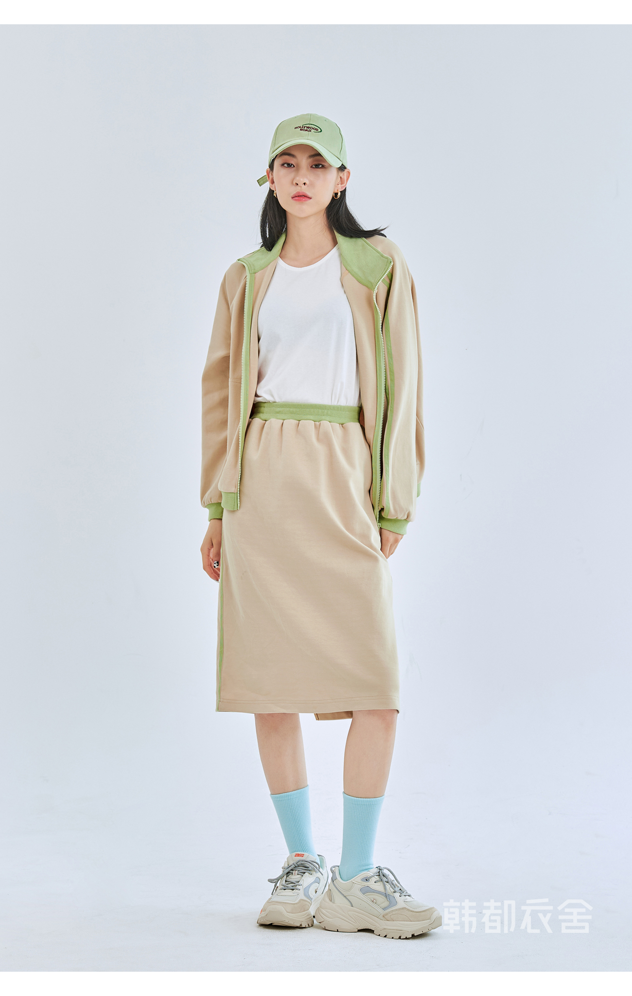 韩都衣舍2020秋季新款女装宽松休闲拼接两件套时尚套装OU13559堯