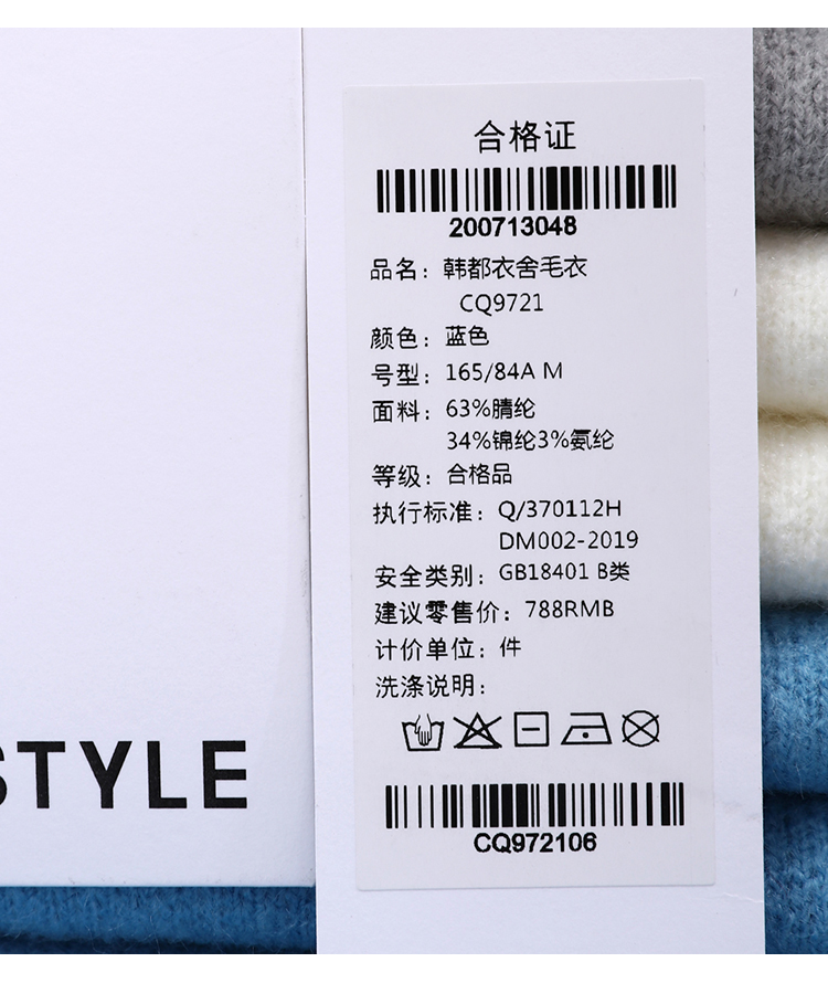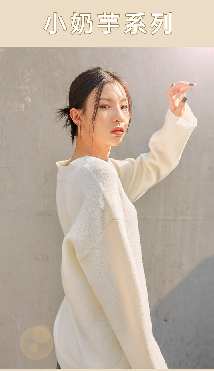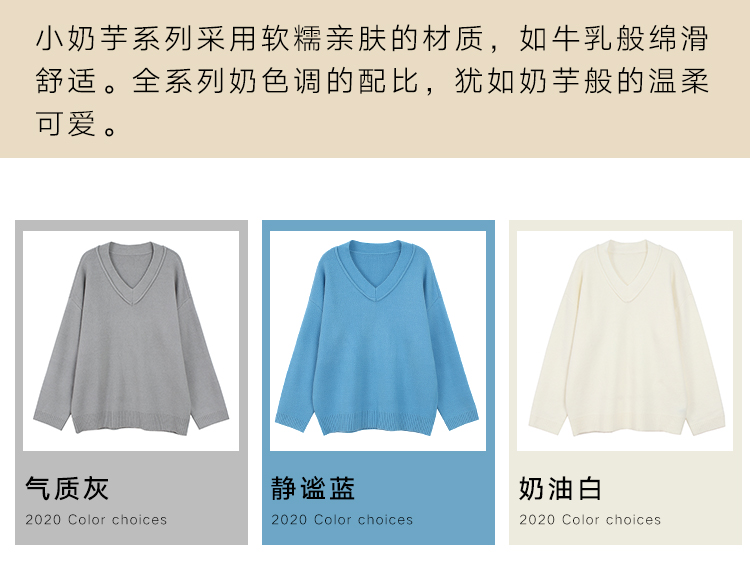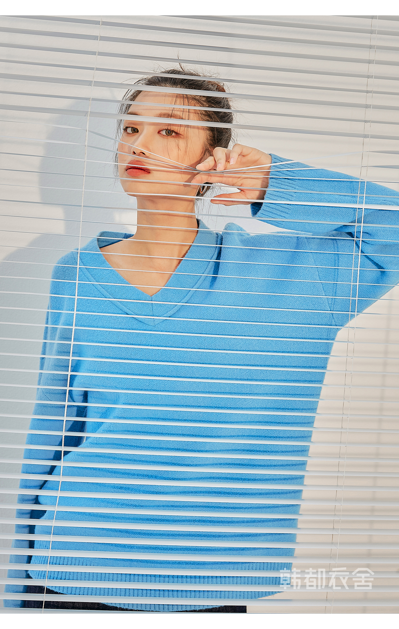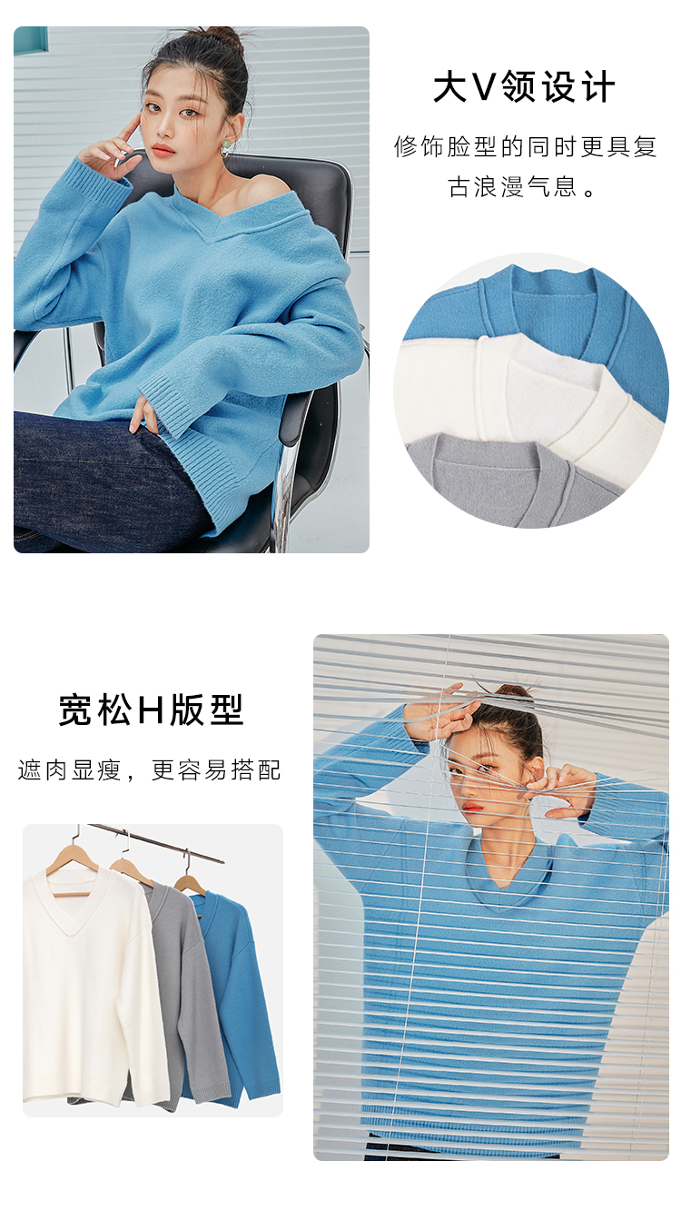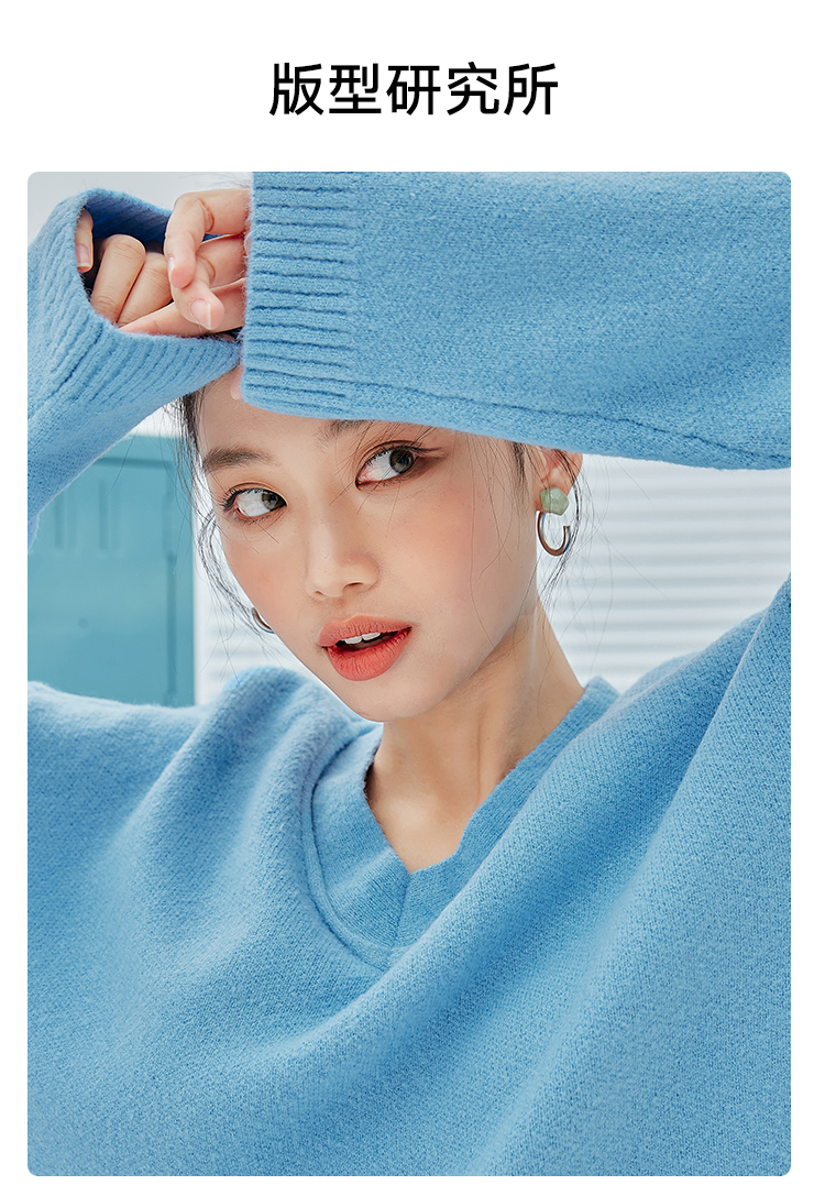 韩都衣舍outlets冬装新款宽松V领毛衣女上衣套头针织衫WZCQ9721